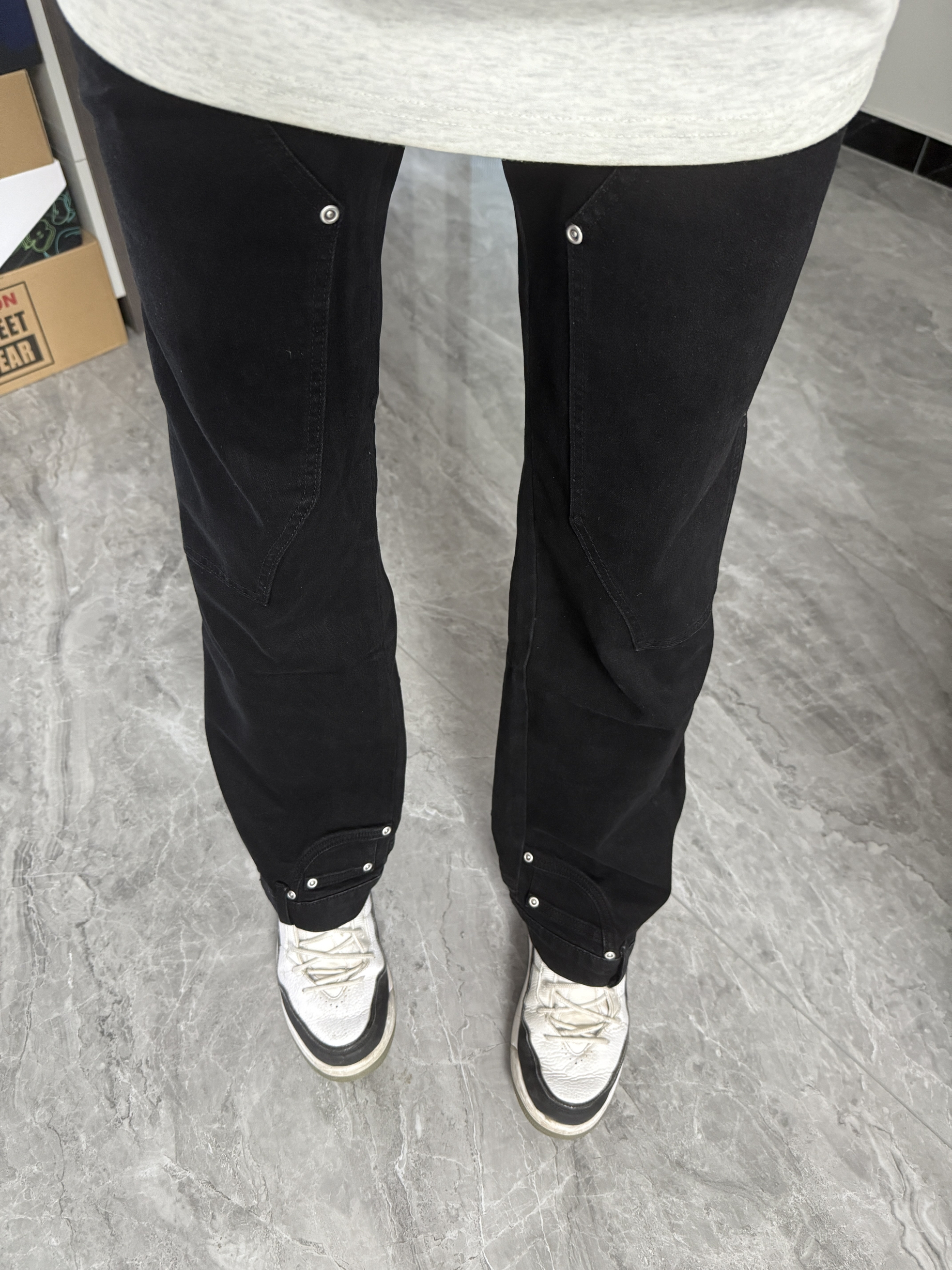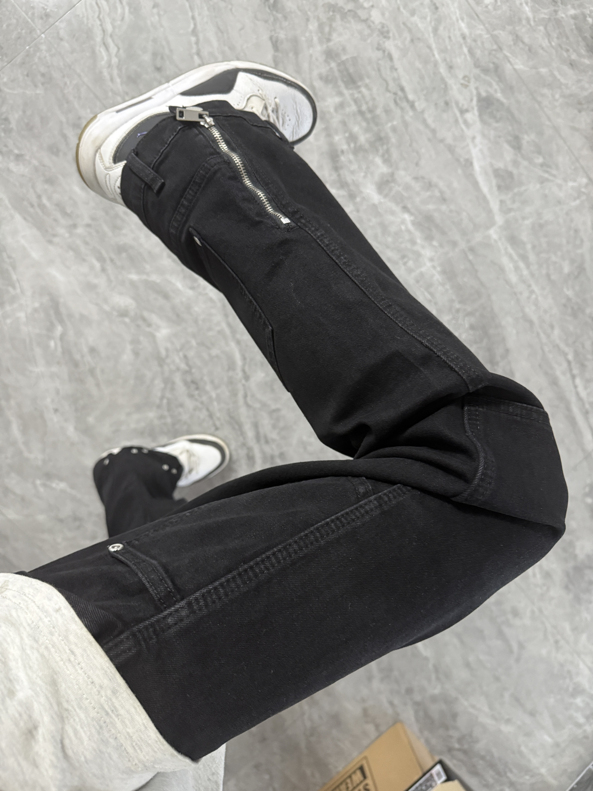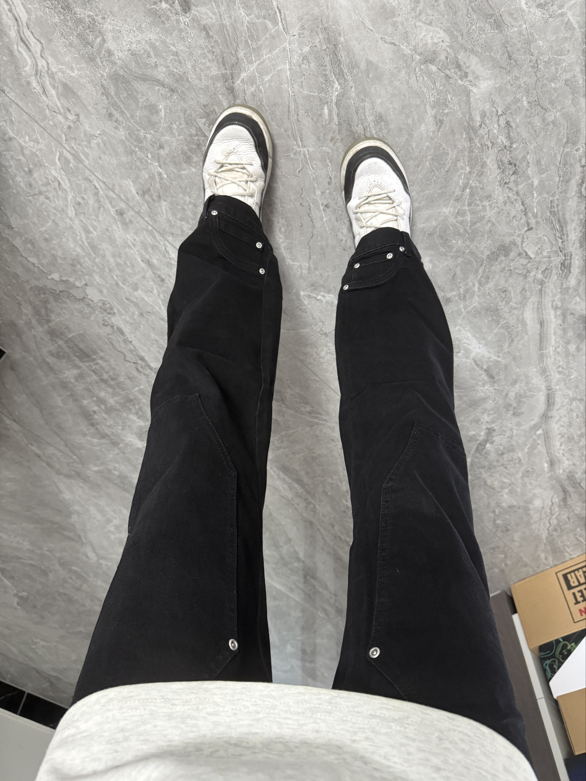 不得不说这条裤子真的好有设计感~反方向款式别具一格很有个性,裤脚拉链设计机能风十足,黑色极简的款式上身显瘦好搭配,搭配上这双aj23简单帅气!!
