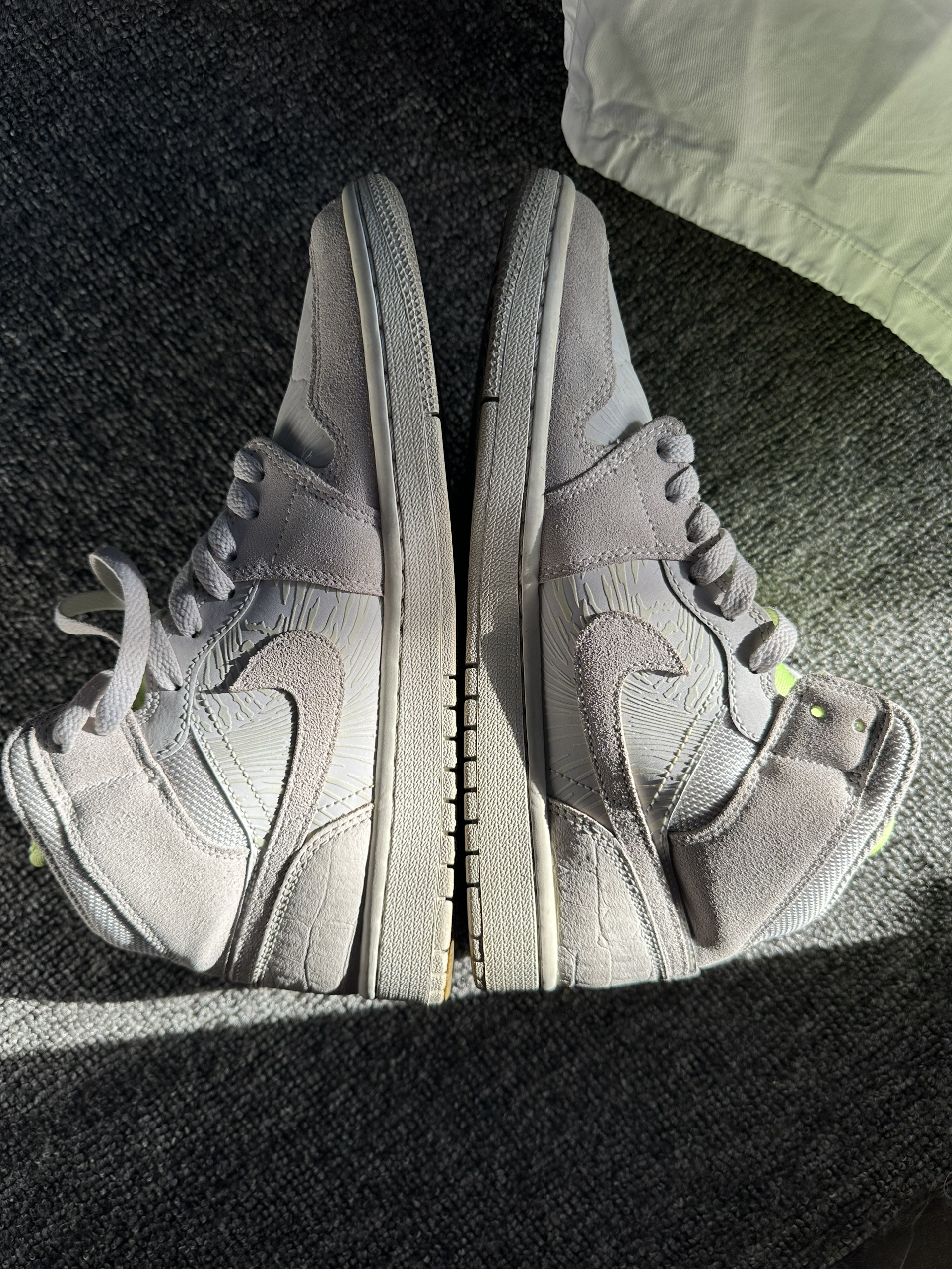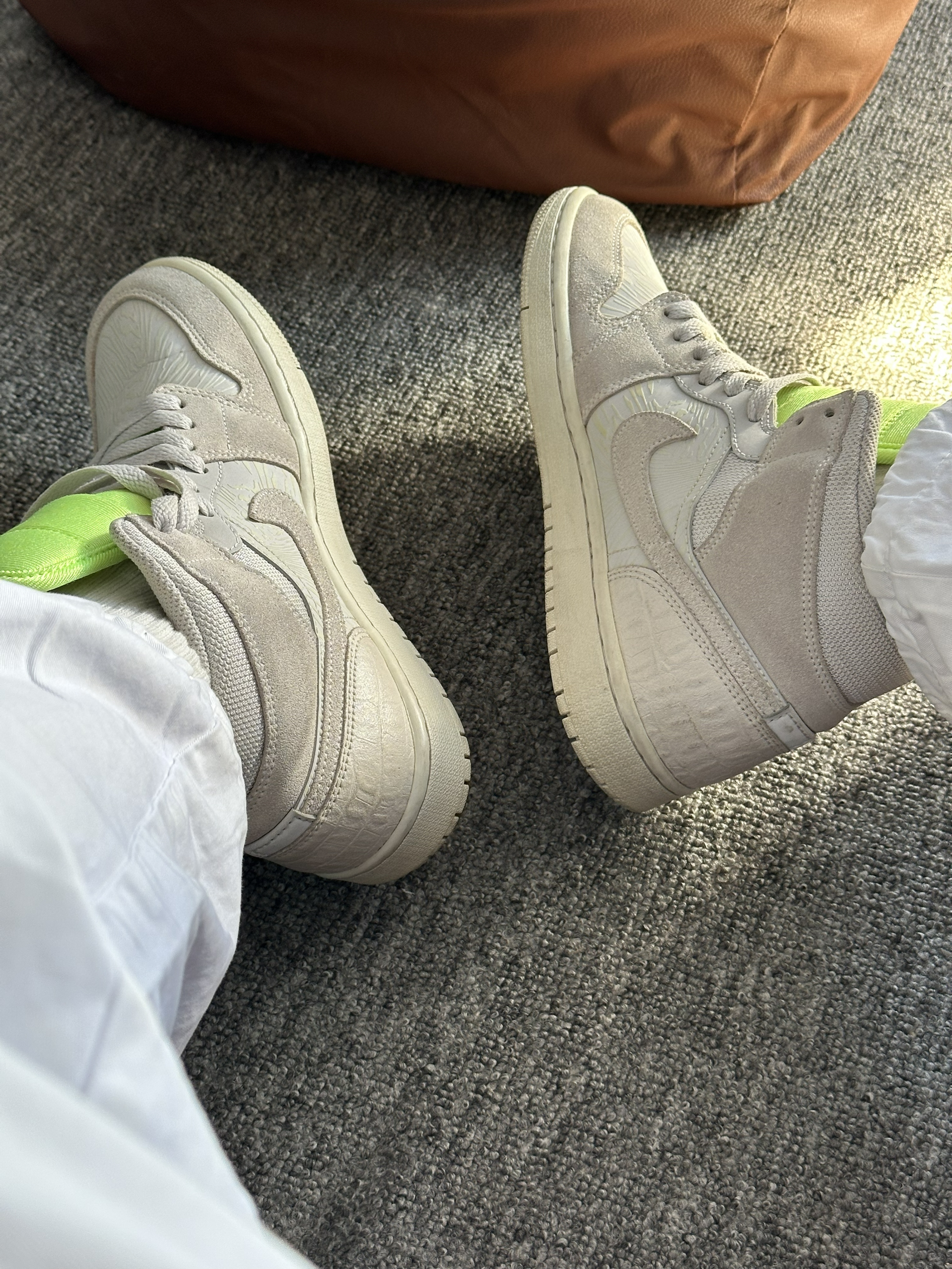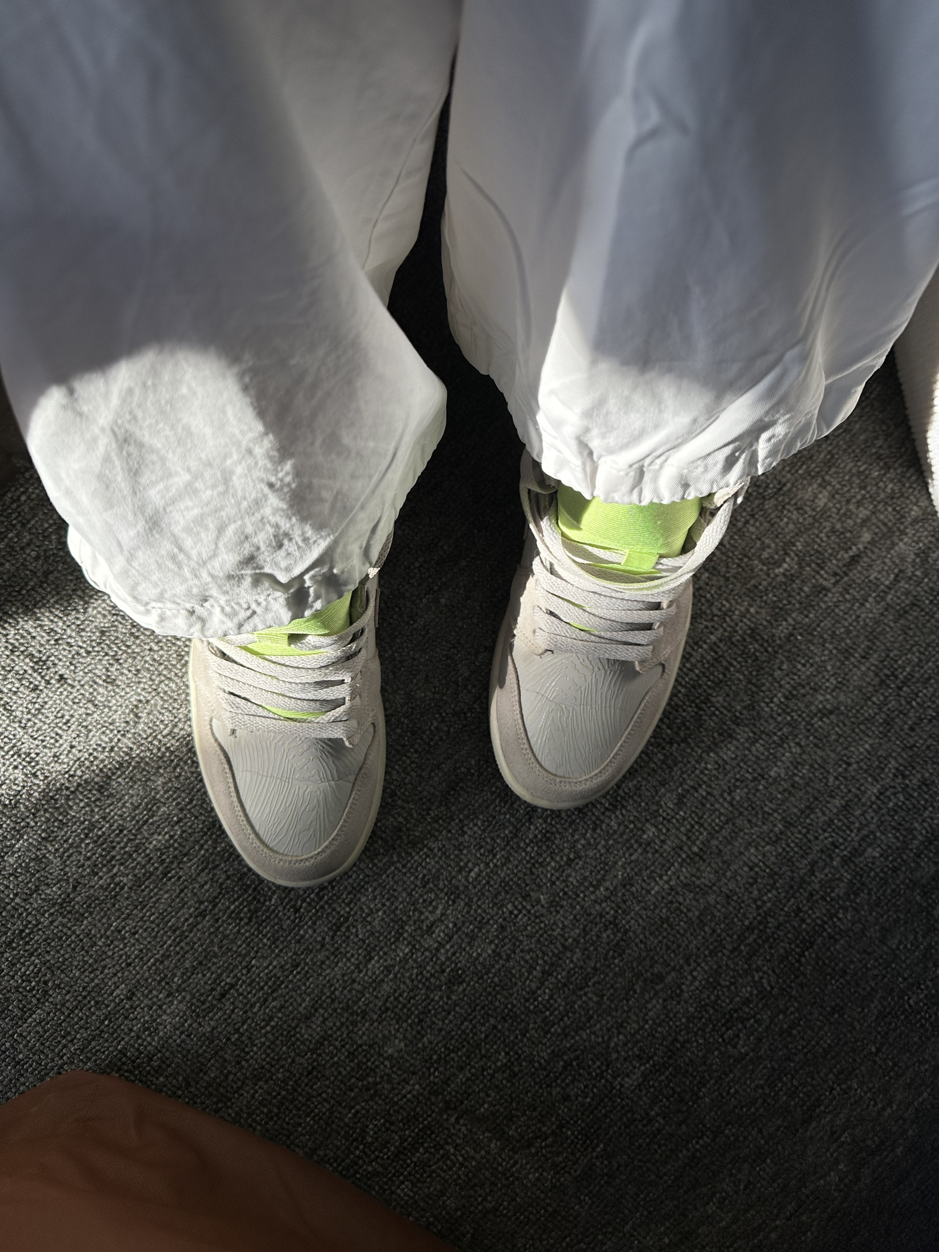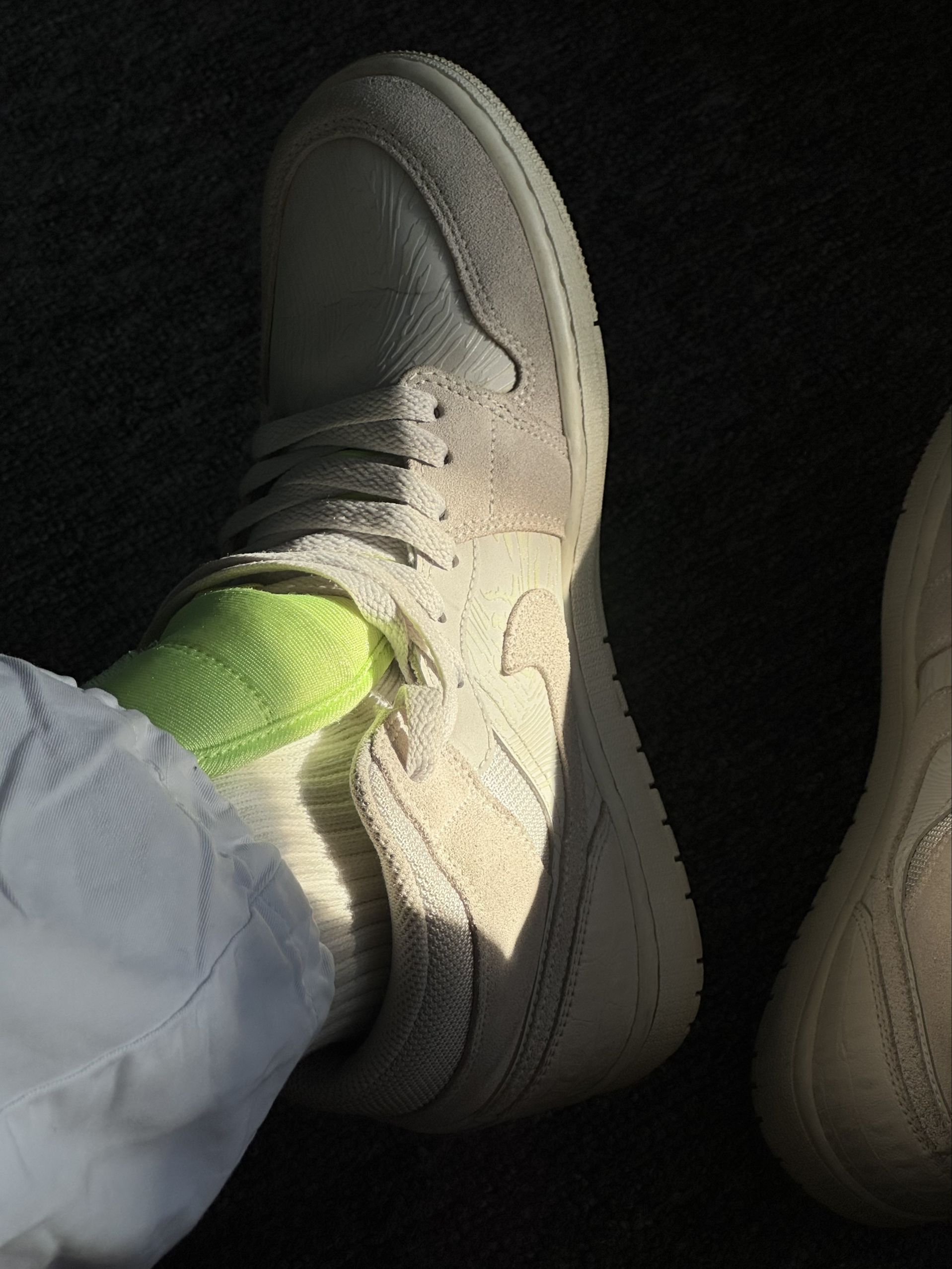 最近上脚了这双AJ1米白3M反光,必须来和大家分享下真实感受。 刚拿到手,这米白色调就很戳我,柔和又耐看,自带一种低调的高级感。 网布材质很特别,很透气这几天穿着出门,脚一点都没觉得闷热保持干爽,这对容易出脚汗的我来说太友好了。 鞋舌的荧光绿突出了鞋子的个性,也为搭配上了些强度,3M反光小细节拉满 但日常搭配也很轻松,我随便穿了条休闲裤和简单上衣,整体看起来就很协调,属于那种不用刻意搭配就能出门的...