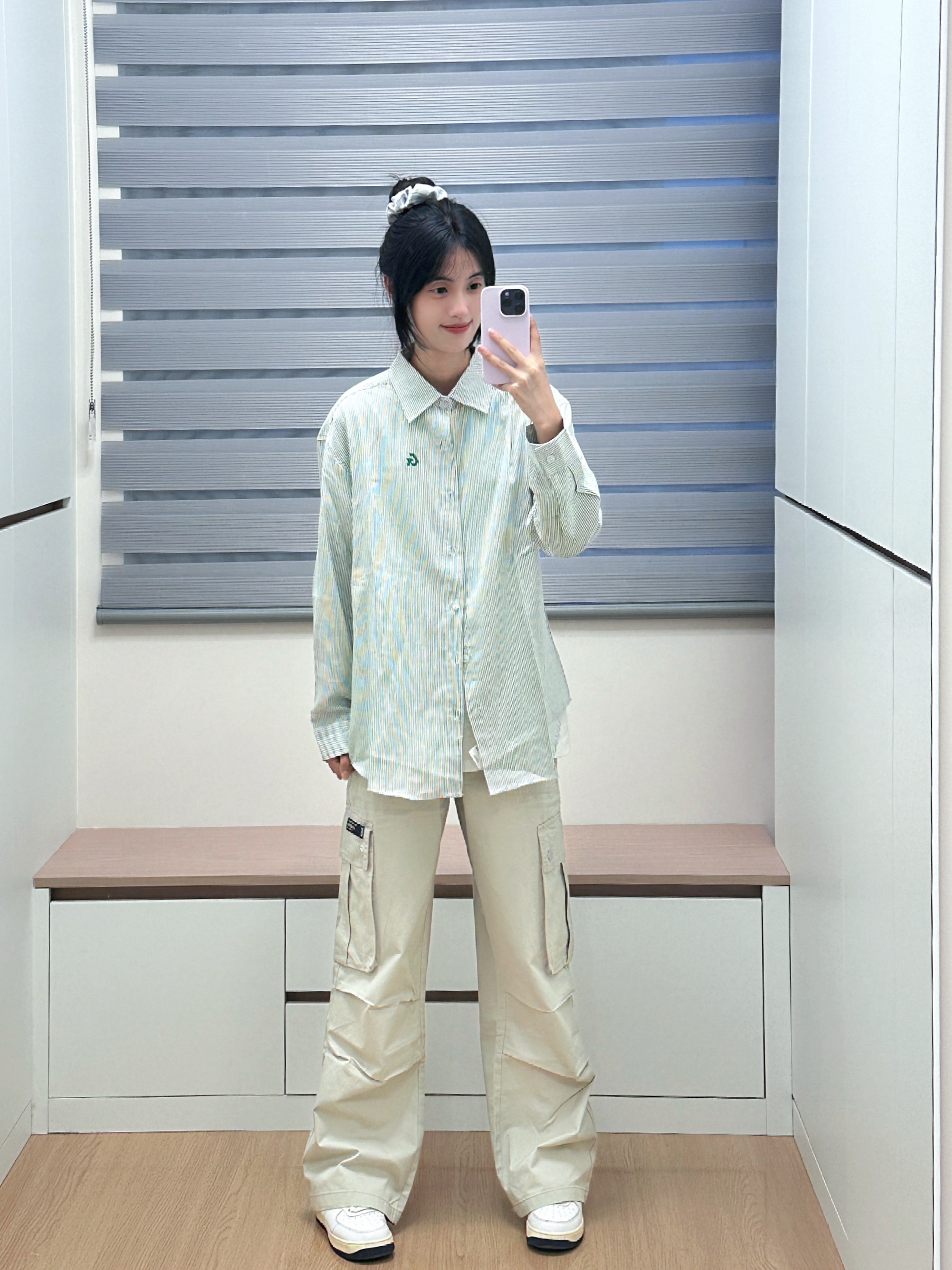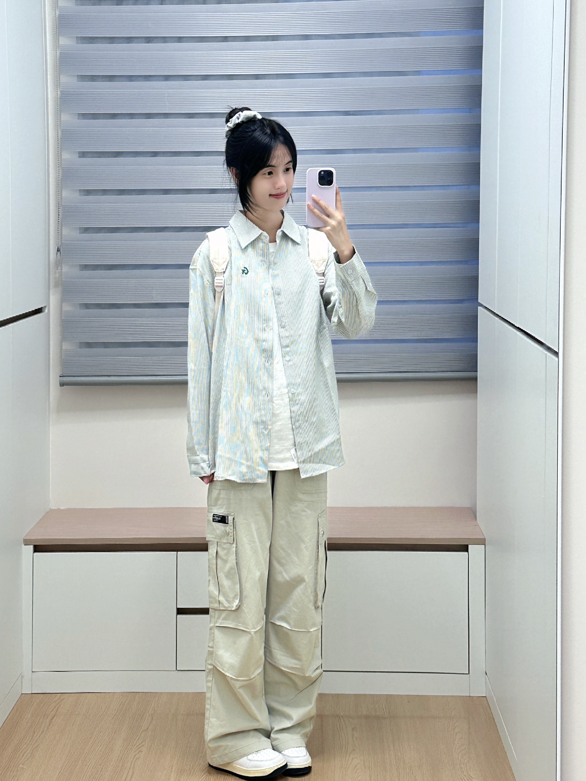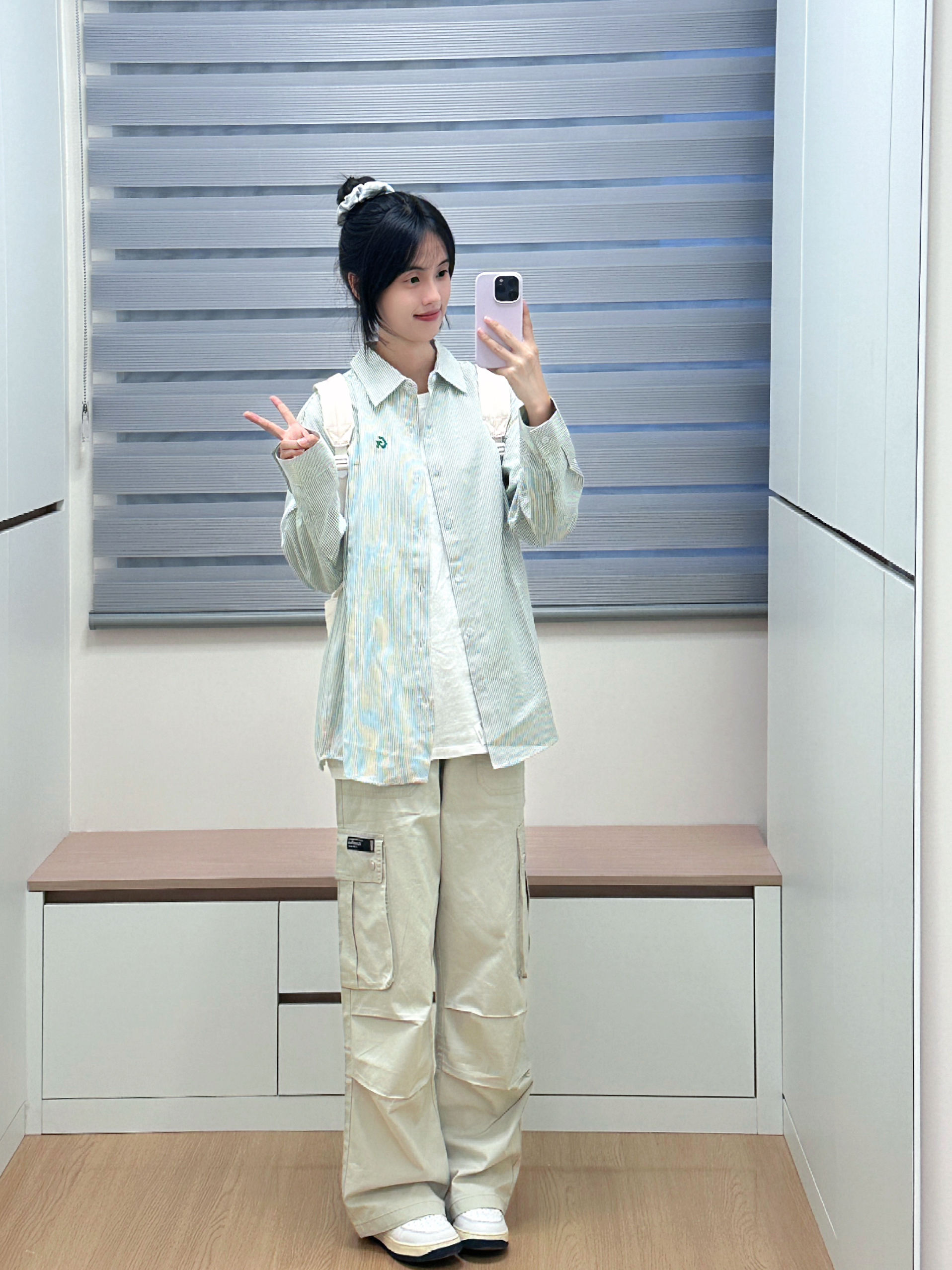 薄荷绿衬衫外穿少年感十足呀 衣服这个季节外穿防晒防风 白绿条纹清新甜美的感觉 我搭配了白T 简直不要太好看 👖 :izzue 🎒 :kappa