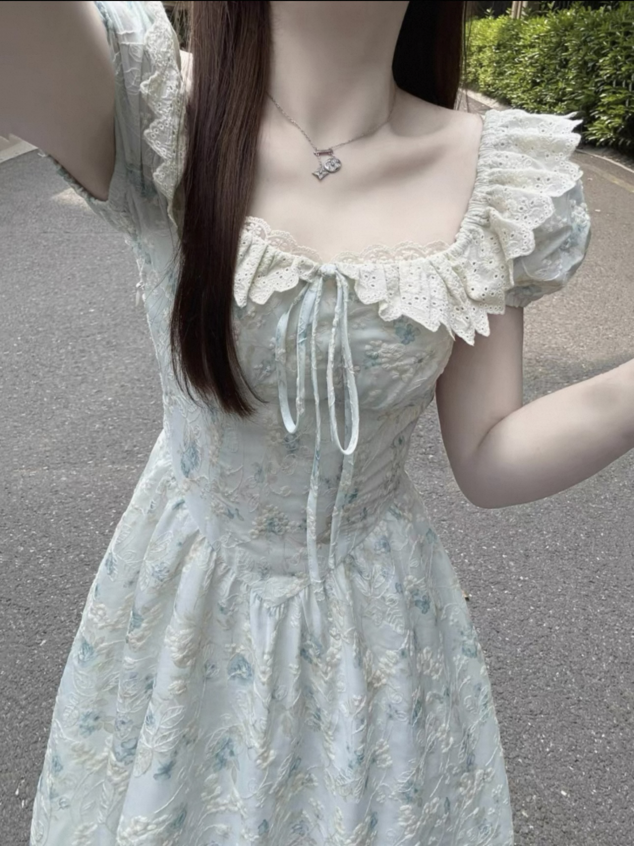 今天穿 森女部落 / SNBL 的绿色连衣裙 这个绿色太适合夏天啦 裙子是三件套的 面料上身都很舒适 穿上很清凉 半身裙设计可好看呀 还有个复古小腰带 像小精灵一样甜甜的 女生们都会喜欢哒