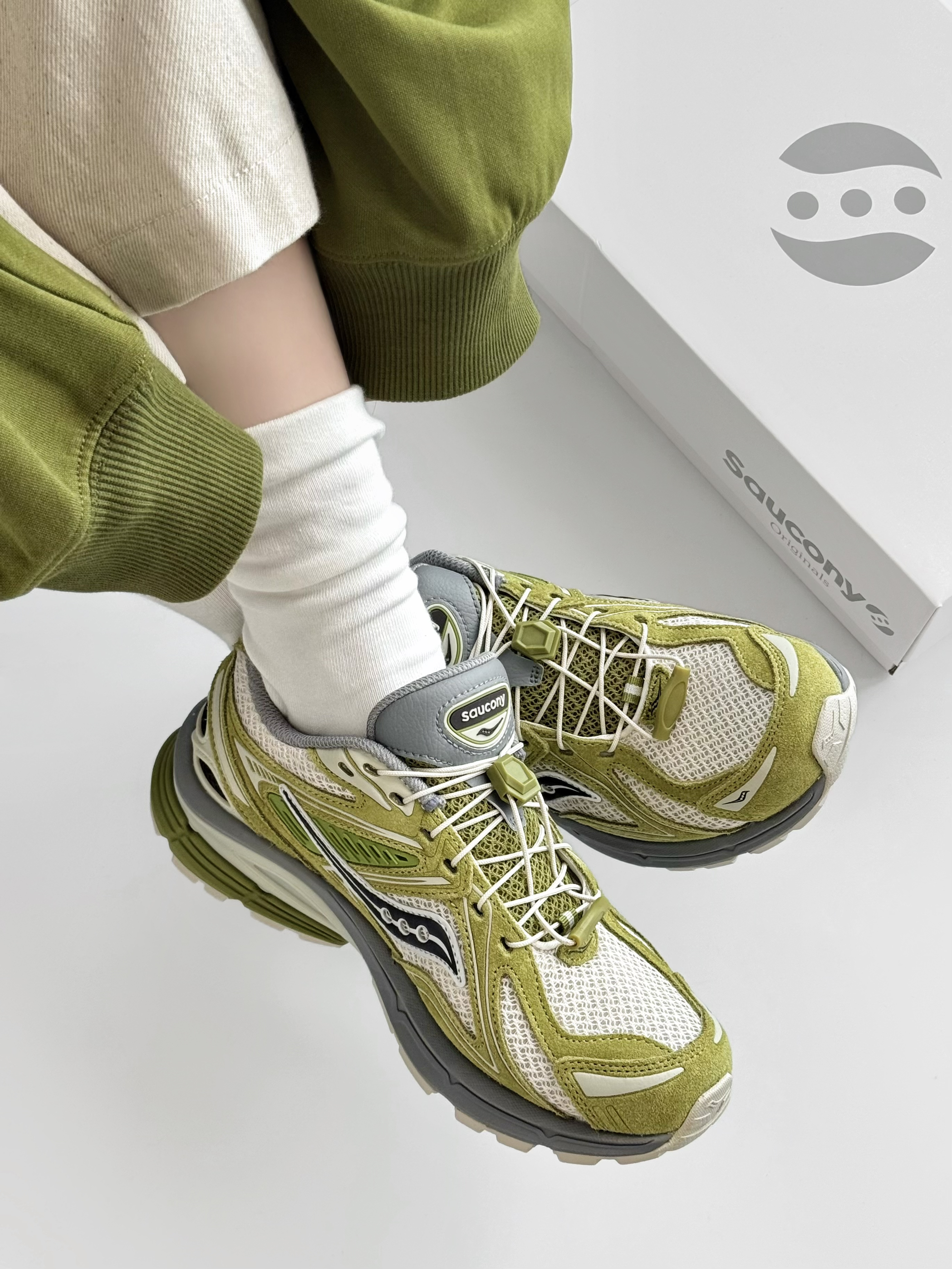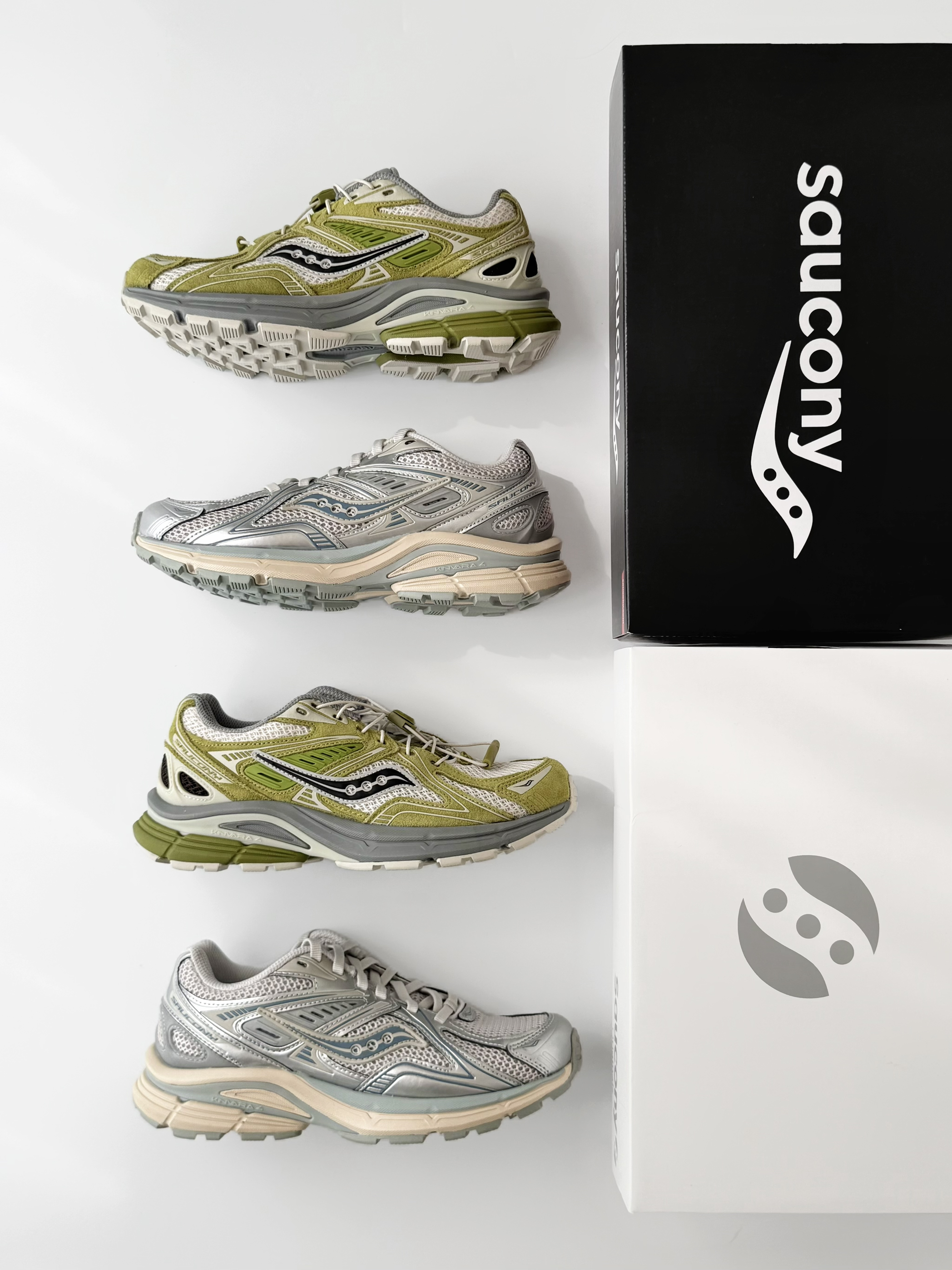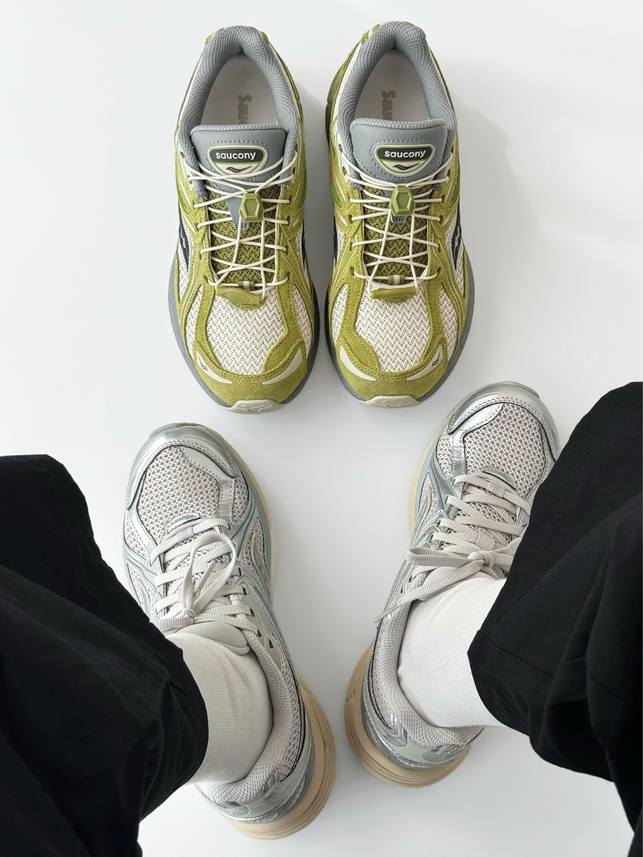 入秋的第☝🏻双复古跑鞋就选你了! 这款索康尼KINVARA 4 RE就是我秋冬穿搭的「天菜鞋型」! 经典的K4鞋型复刻回归 两个配色都好好看🥹 ✔️心中超爱这个治愈的米绿色🫒 像是抹茶拿铁混合了牛奶的温润感 复古感简直要溢出屏幕~ 透气网布和皮革材质的鞋面设计 上脚超透气! ✔️灰银兰在颜值上也超吸睛 百搭又耐看 一上脚就自带一种不费力的松弛感 超厚EVA中底把每一步都变成了踩在云朵上的感觉...
