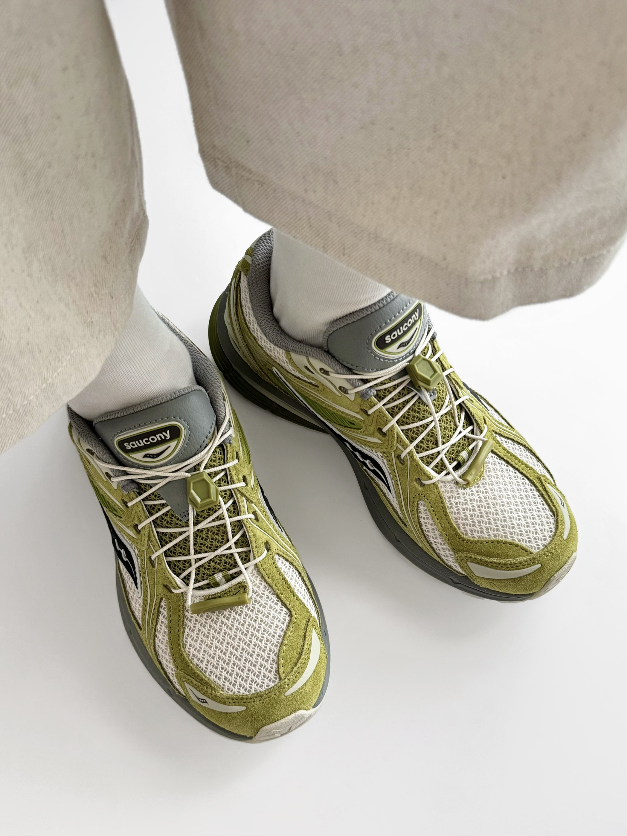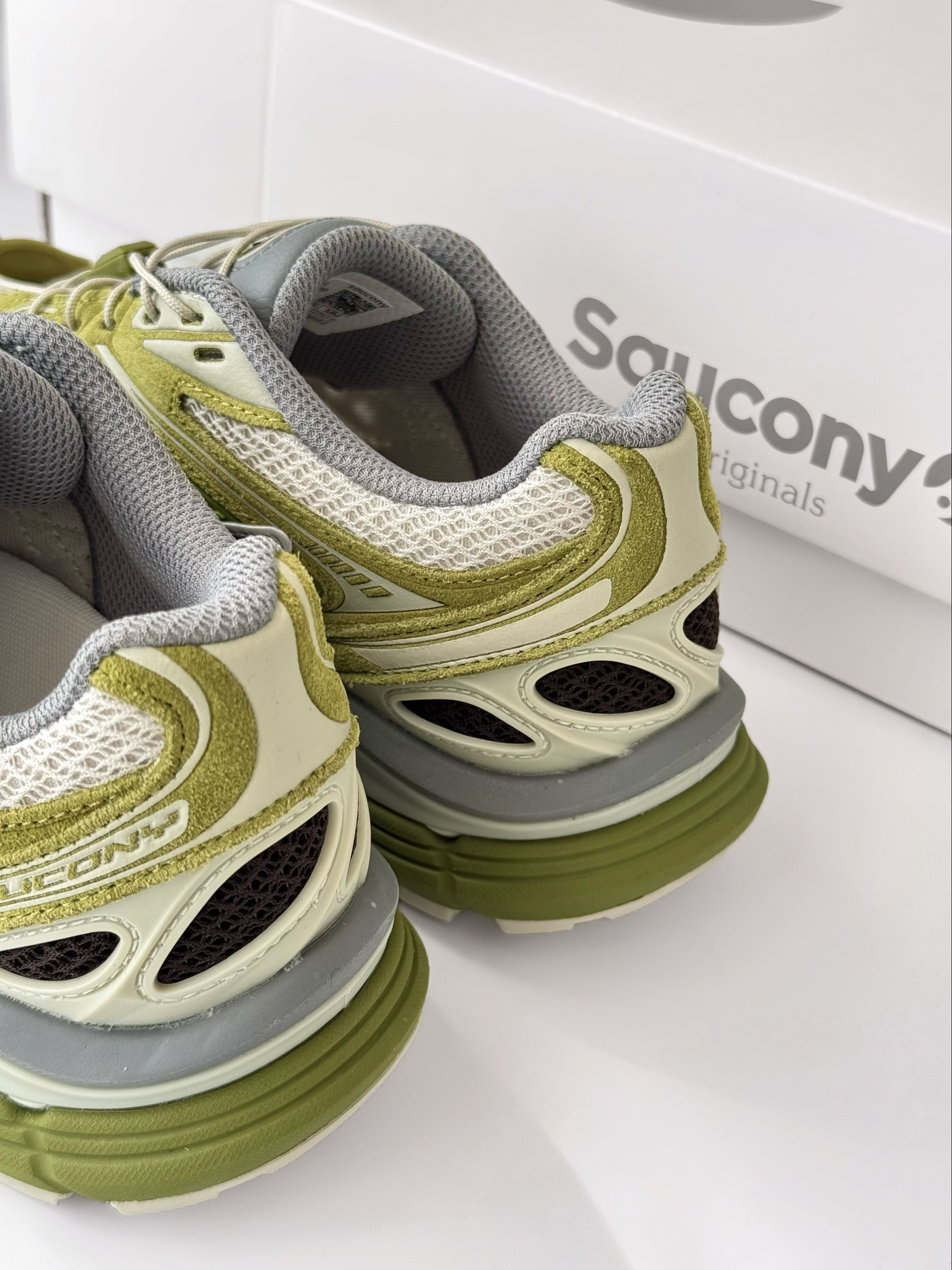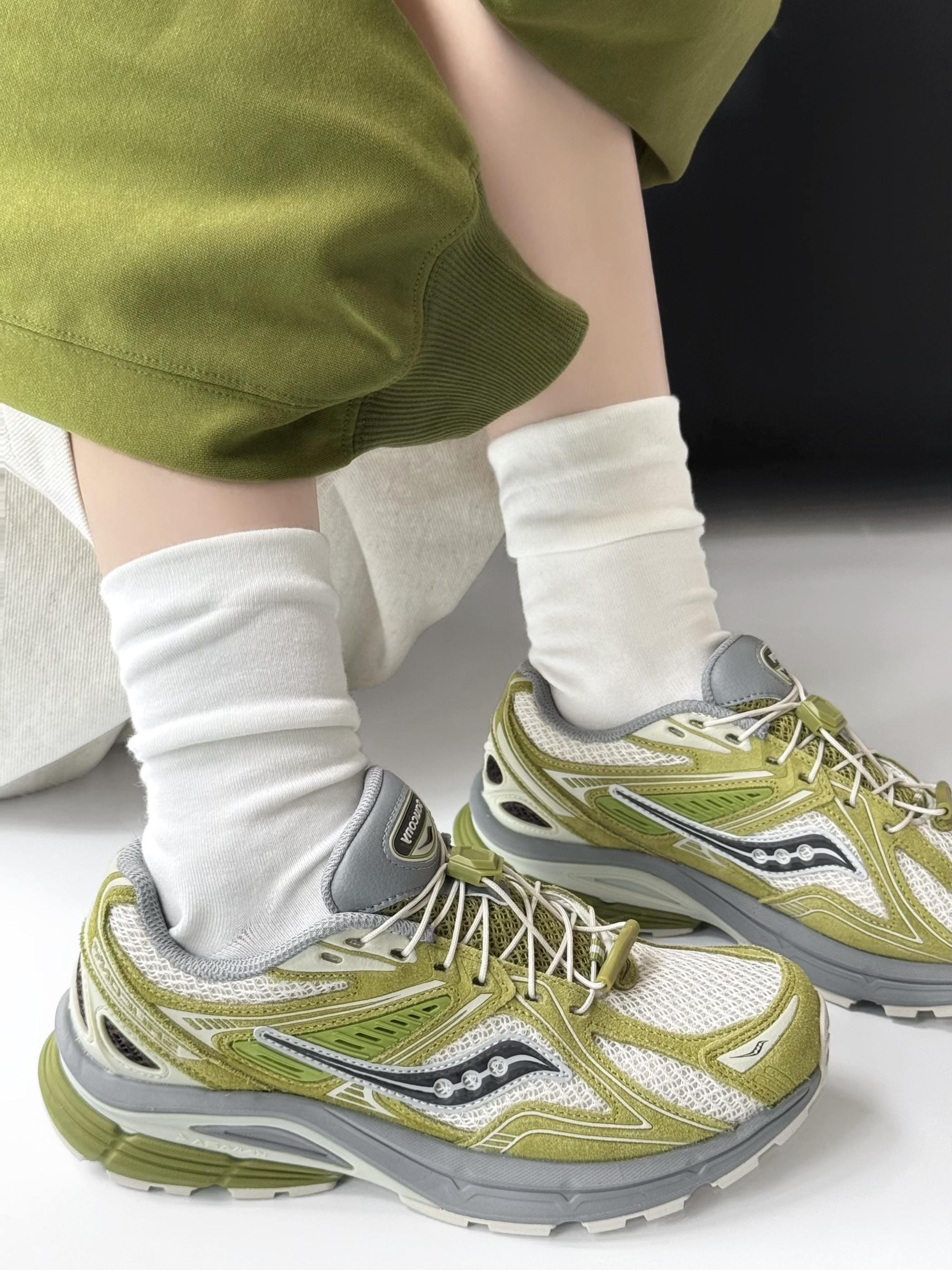 入秋的第☝🏻双复古跑鞋就选你了! 这款索康尼KINVARA 4 RE就是我秋冬穿搭的「天菜鞋型」! 经典的K4鞋型复刻回归 两个配色都好好看🥹 ✔️心中超爱这个治愈的米绿色🫒 像是抹茶拿铁混合了牛奶的温润感 复古感简直要溢出屏幕~ 透气网布和皮革材质的鞋面设计 上脚超透气! ✔️灰银兰在颜值上也超吸睛 百搭又耐看 一上脚就自带一种不费力的松弛感 超厚EVA中底把每一步都变成了踩在云朵上的感觉...