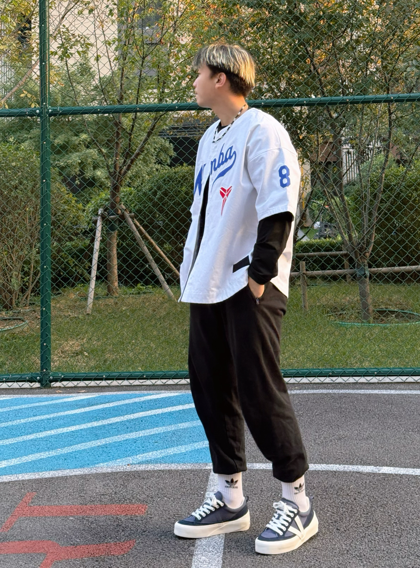 今日的出行穿搭 主打的就是一个活力🔥 校园感十足的运动穿搭 科比棒球服➕维动的启星板鞋⭐️ 卫衣裤子都是黑色打底 这一套真的太有青春感了 尤其这个板鞋上脚真的很帅🤔 穿上之后有190➕了 维动还是拿捏了男大的审美的👀 @App #人人都是球鞋博主 #一人一张球鞋美照 #校园少年感穿搭 #维动VEIDOORN #维动启星板鞋