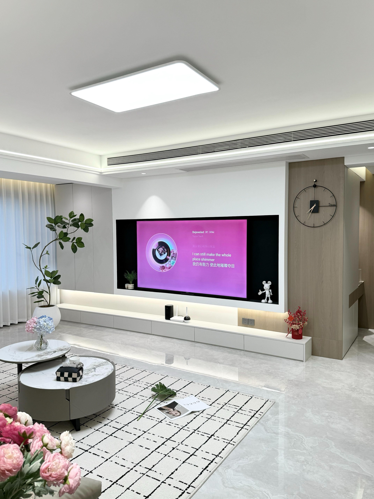 我家是现代简约风装修,选电视时一眼相中这款~全面屏嵌进墙里特和谐,4K画质看剧超清晰!不过语音控制偶尔反应慢半拍🤔 但低蓝光护眼对我这种追剧党太友好,放客厅家用太合适啦~