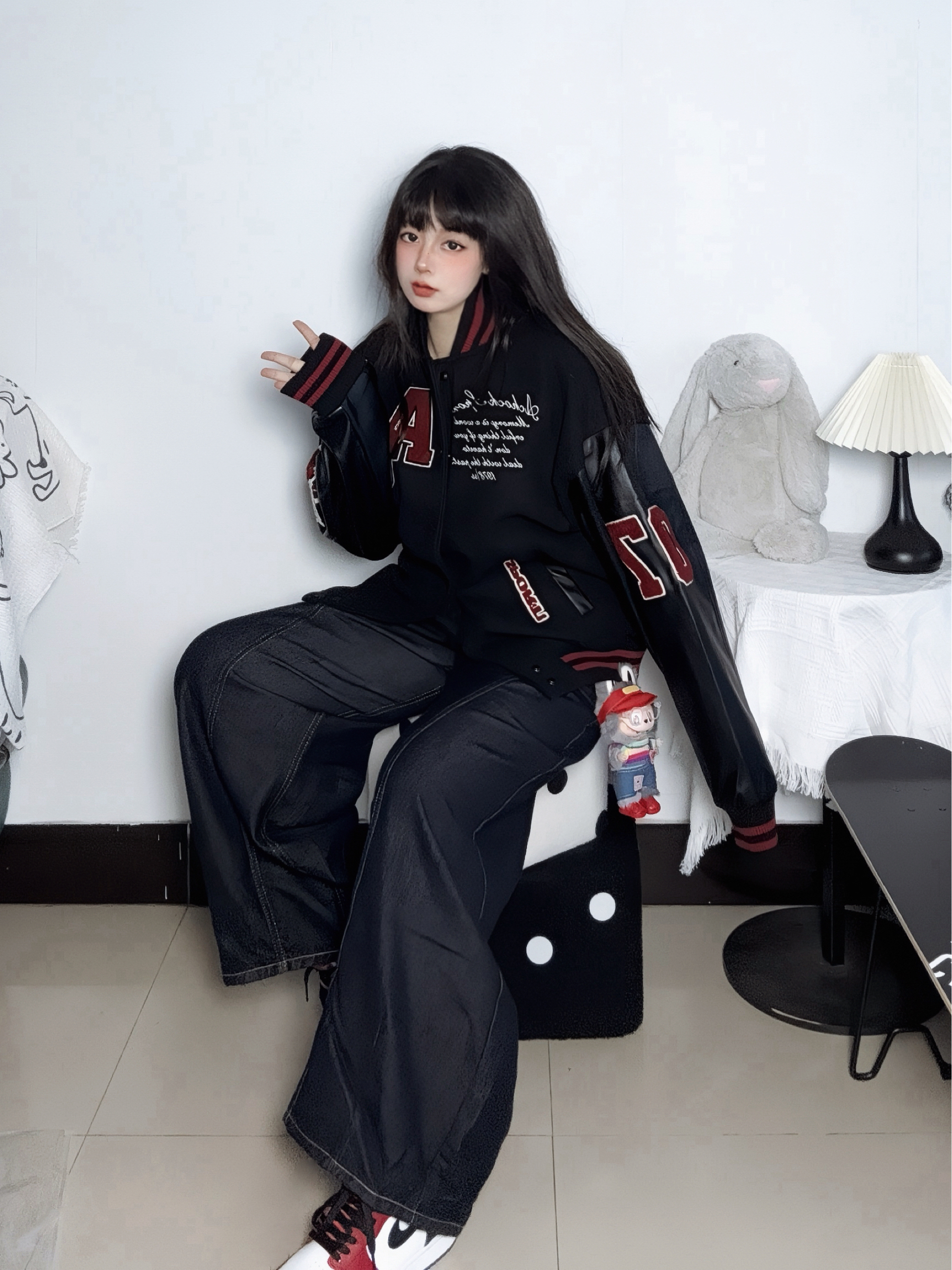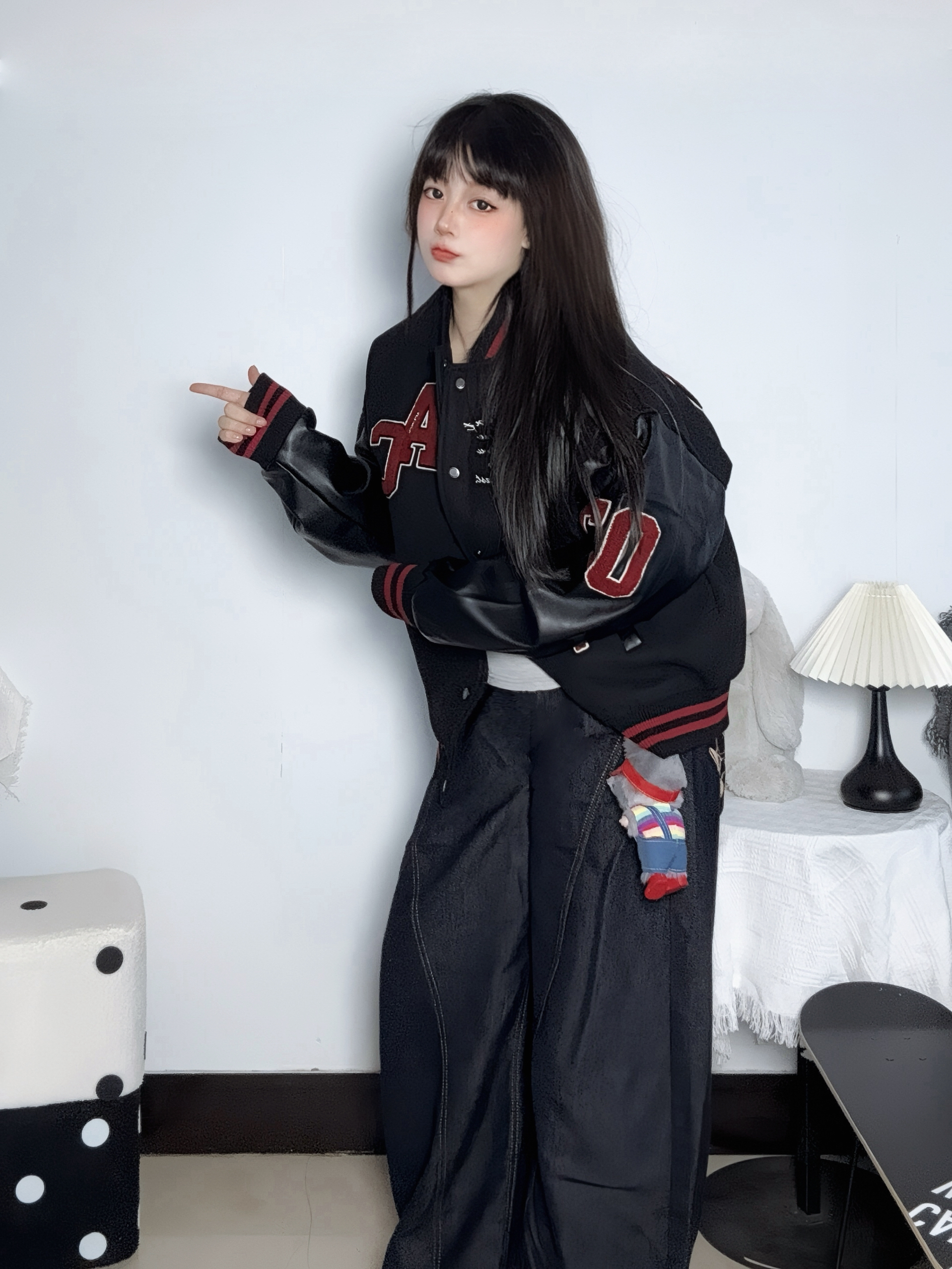 秋冬除了棉服上身一些棒球服也不错 我喜欢这种藏蓝色的衬得小脸很白 它上面这种刺绣都是重工的很扎实 版型也hin立挺有型 - 搭配一条质感的九分裤和红ad点缀 这次被美式复古的帅气了~ 168/60 M码