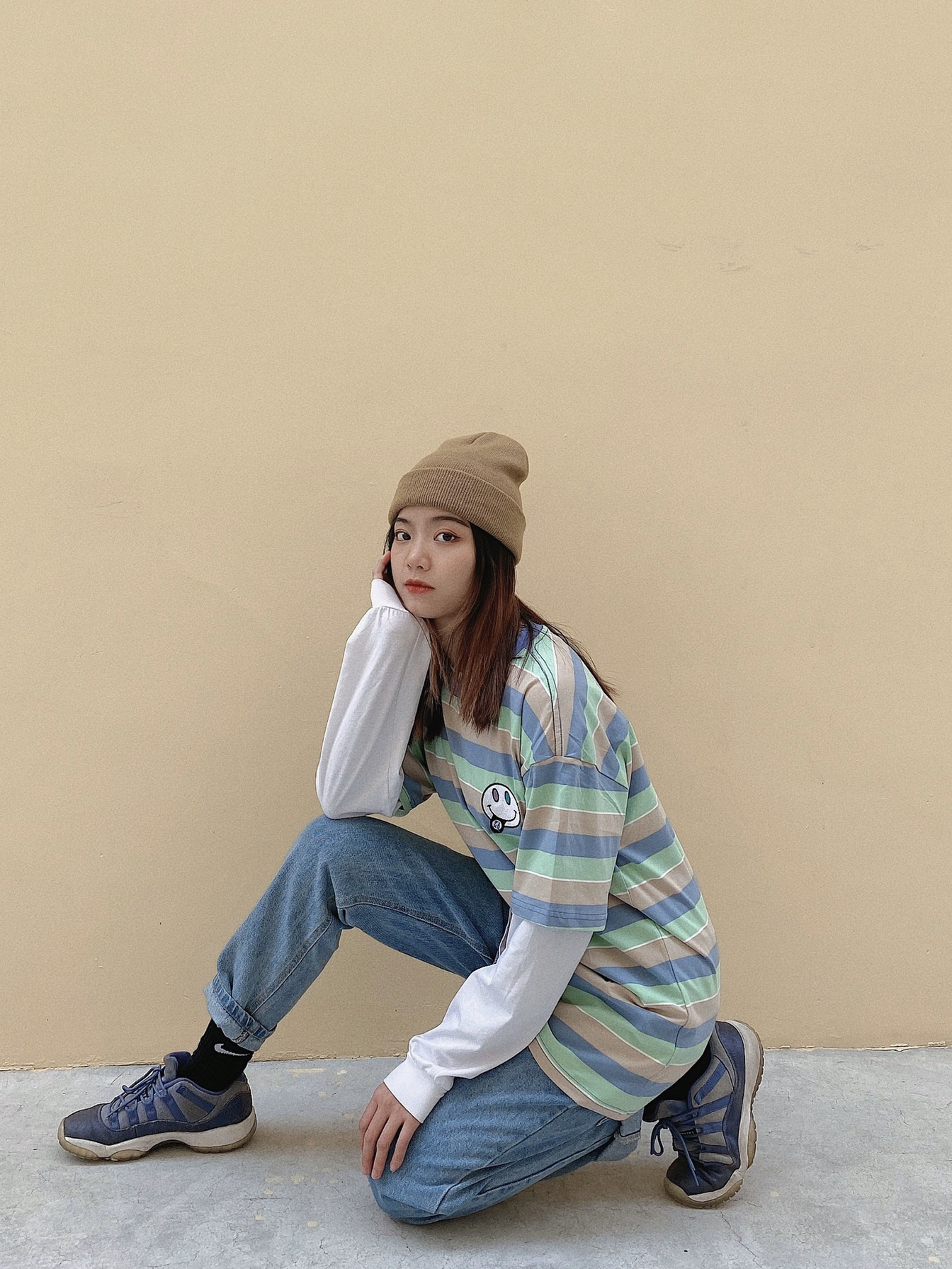 👔:pianning 很colorful的一件t 很适合夏天穿 可可爱爱的 👖:pianning 版型很好的牛仔裤 长度刚好 答应我 一定要买它家的牛仔裤 上身效果都好好看! 👟:aj11 blue moon 很好看的蓝色 唯一是水晶底变黄 有点难搞哦