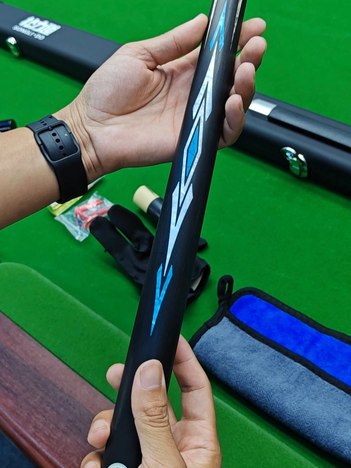 精致的杆盒,+手工一体通杆 自己用和送礼🎁都不错 尾部NFC一触便可以溯源,手工精心打造! 北美白蜡木前支硬度高且弹性足,通杆传力流畅,击球干脆不飘,高精度加塞依然稳定。后把握感扎实,操控细腻,适合追求准度与技术的斯诺克玩家 性能与科技融合,成就实力派选手!