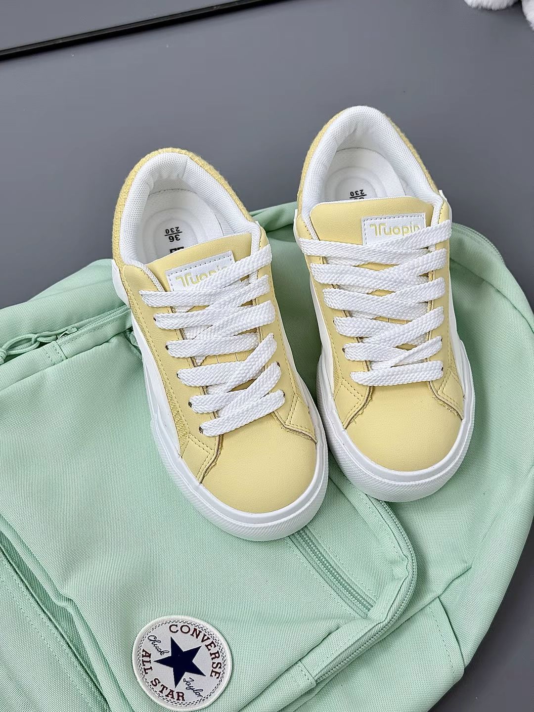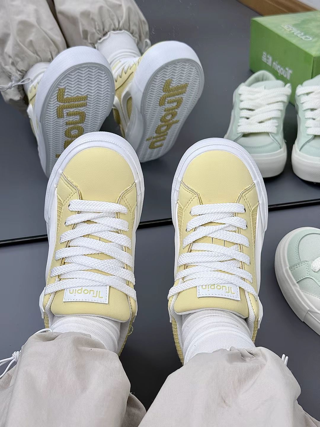本篇笔记关联了鮀品 派派鞋系列 经典简约 透气耐磨 软底增高 平底 板鞋 淡黄色、鮀品 防滑街头运动风学院风 板鞋 TP1226W 默认配色等商品,为用户提供真实的使用体验和购买参考。