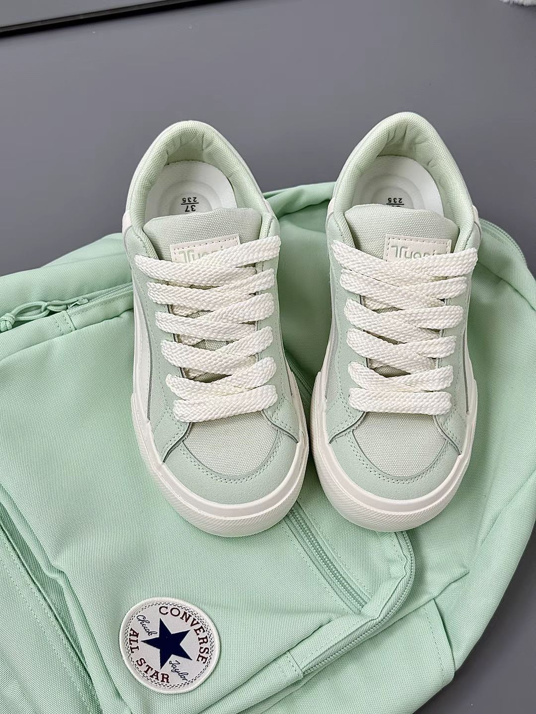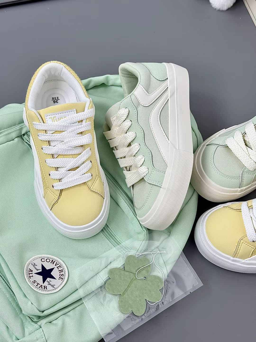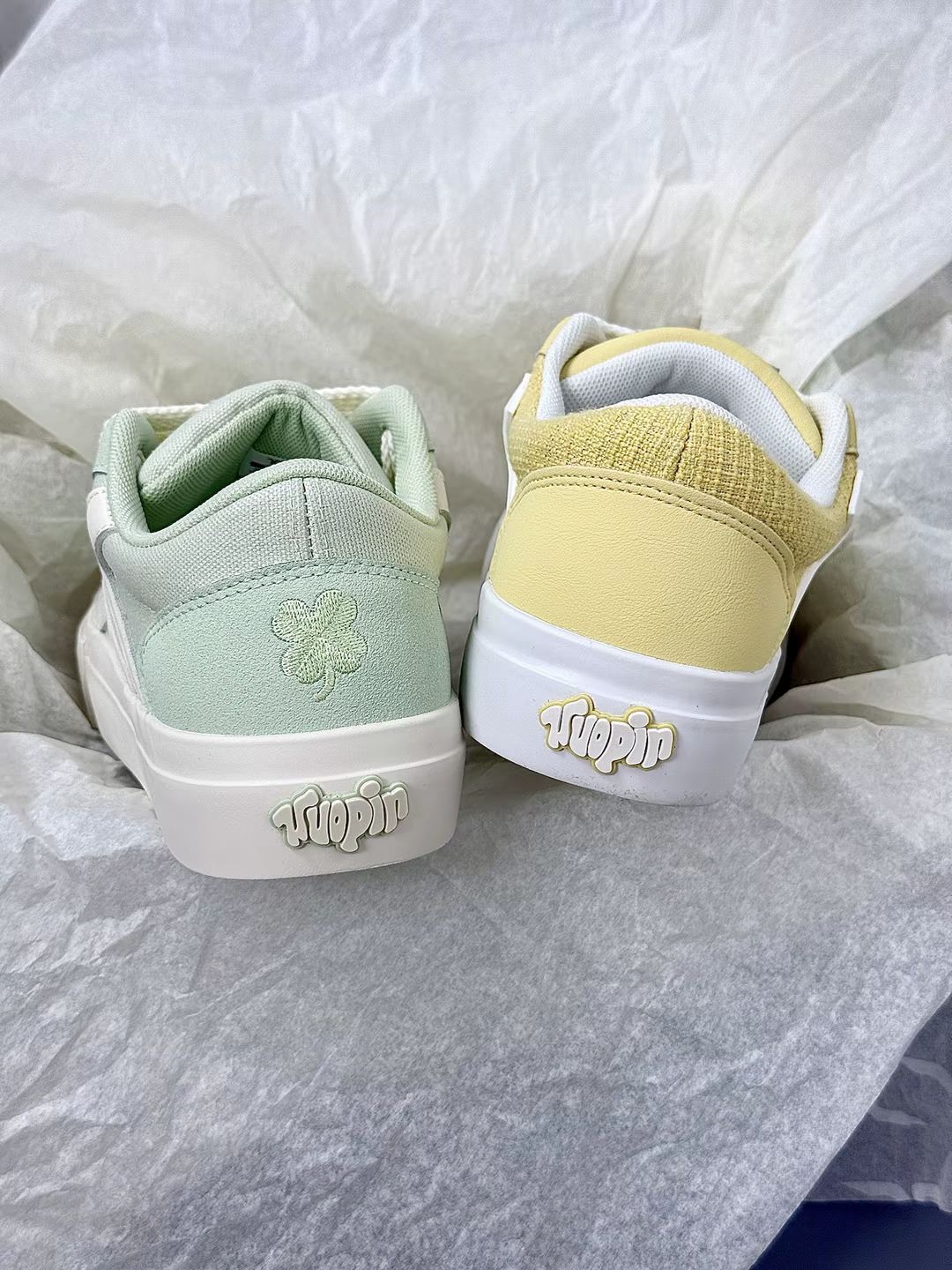 哈喽,今天分享两双派派鞋,我敲喜欢的 幸运四叶草🍀的配色我觉得蛮清新的 穿起来有种活力四射的感觉 黄色系呢,很像荷包蛋有木有,有点小可爱 而且两双板鞋都是比较休闲的,很百搭的那种 像国庆出游啊通勤上学啊,这两双都okk