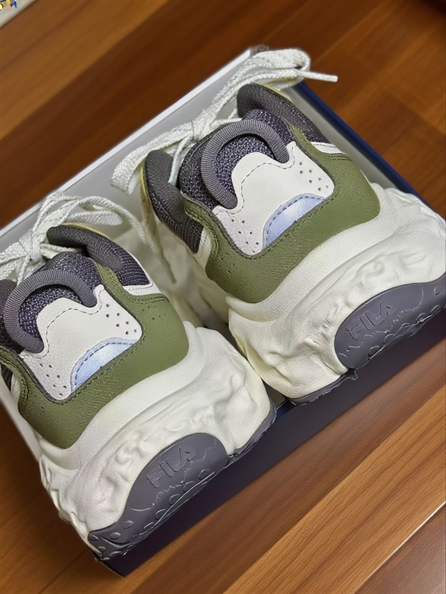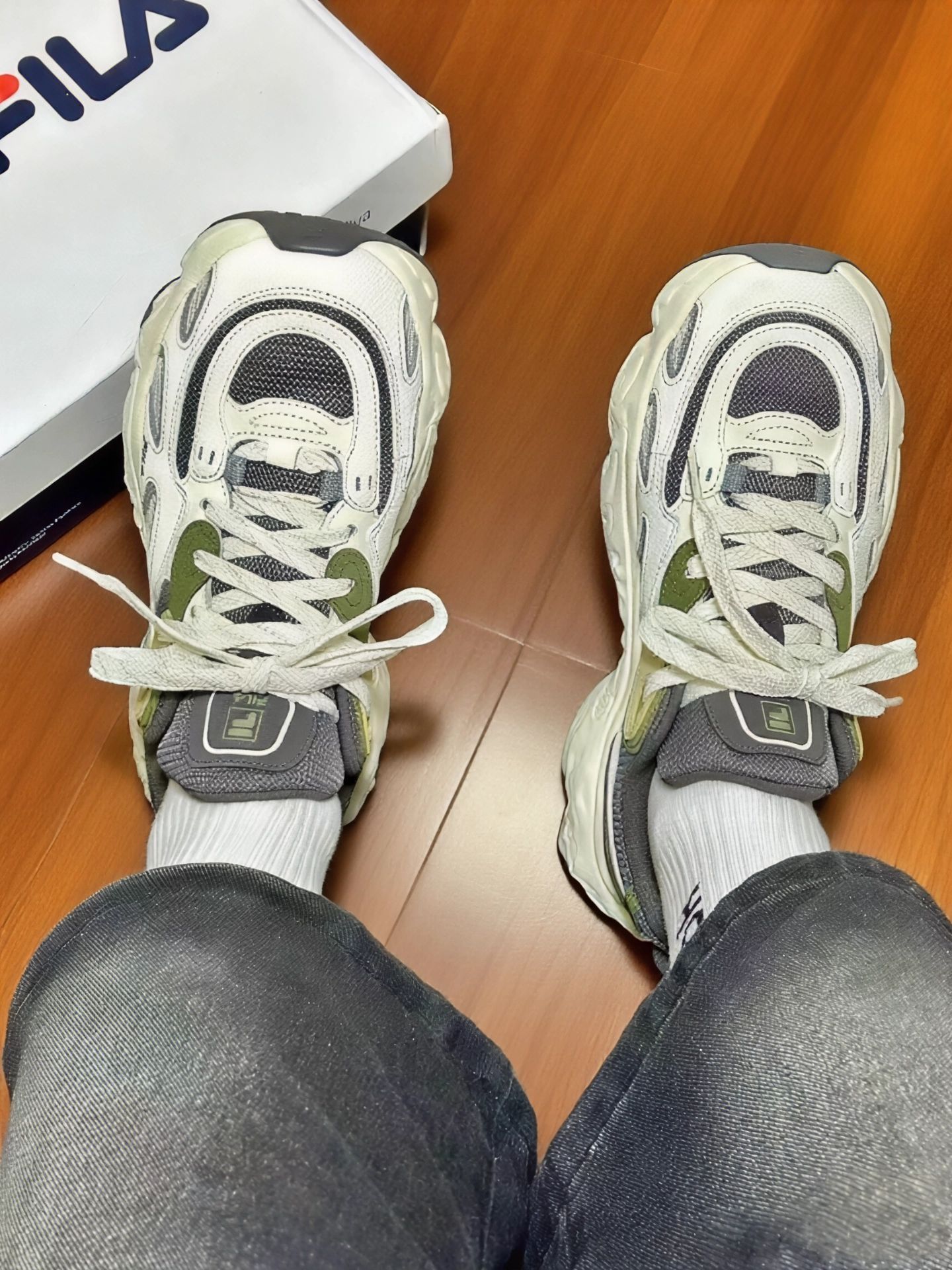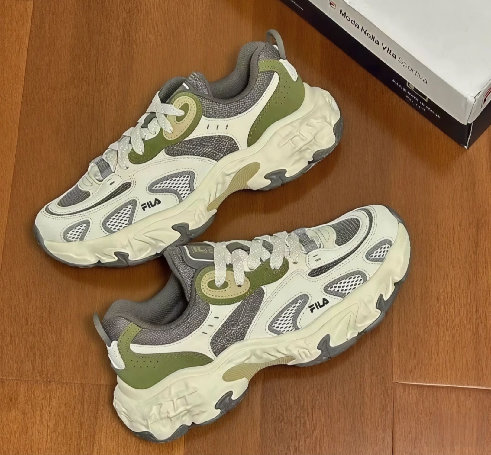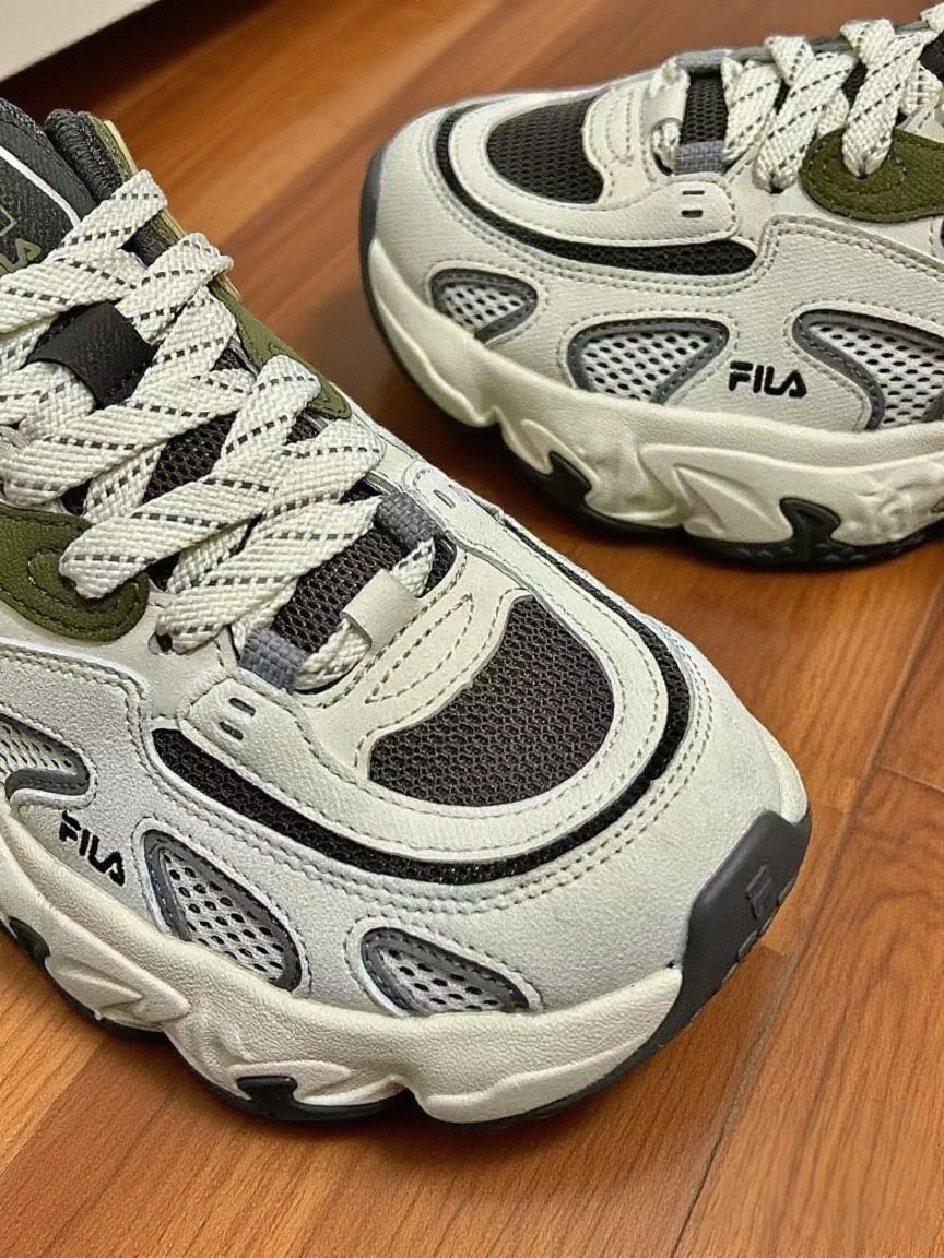 最近入了这双斐乐老爹鞋,浅分享下穿着感受,给纠结的姐妹当个参考~ 脚感 & 质量 网面+皮革拼接,透气性还不错,夏天穿没闷出脚汗。鞋底看着厚重,实际踩上去是软弹的,像踩在有回弹力的垫子上,日常通勤、逛街暴走,脚不会累到打摆子 。 做工细节也在线,车线工整,胶水没溢得到处都是,穿了快一个月,没开胶、没变形,质量扛得住造,对得起价格~ 优缺点唠唠 ✅ 颜值能打:米白+灰绿配色,复古...