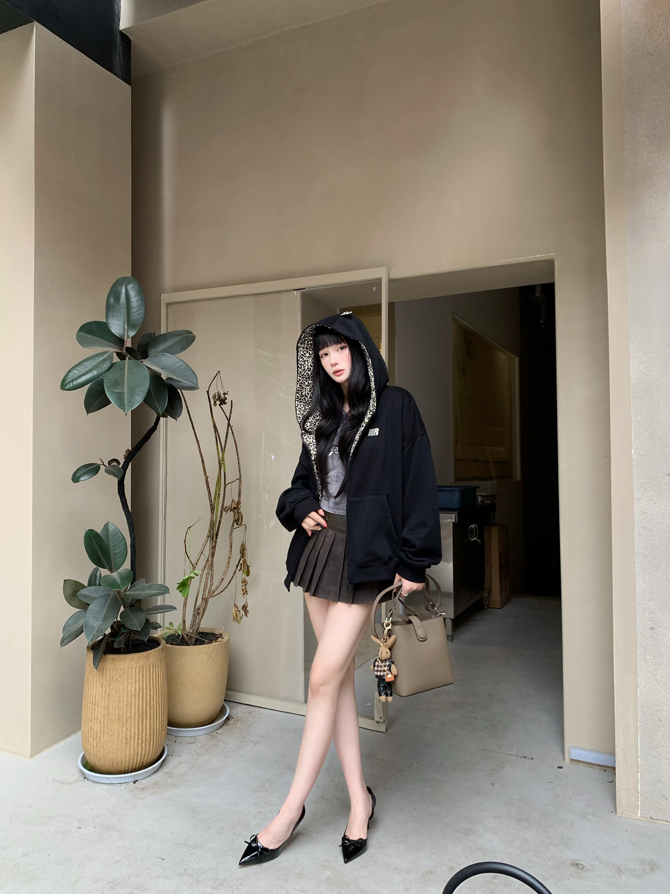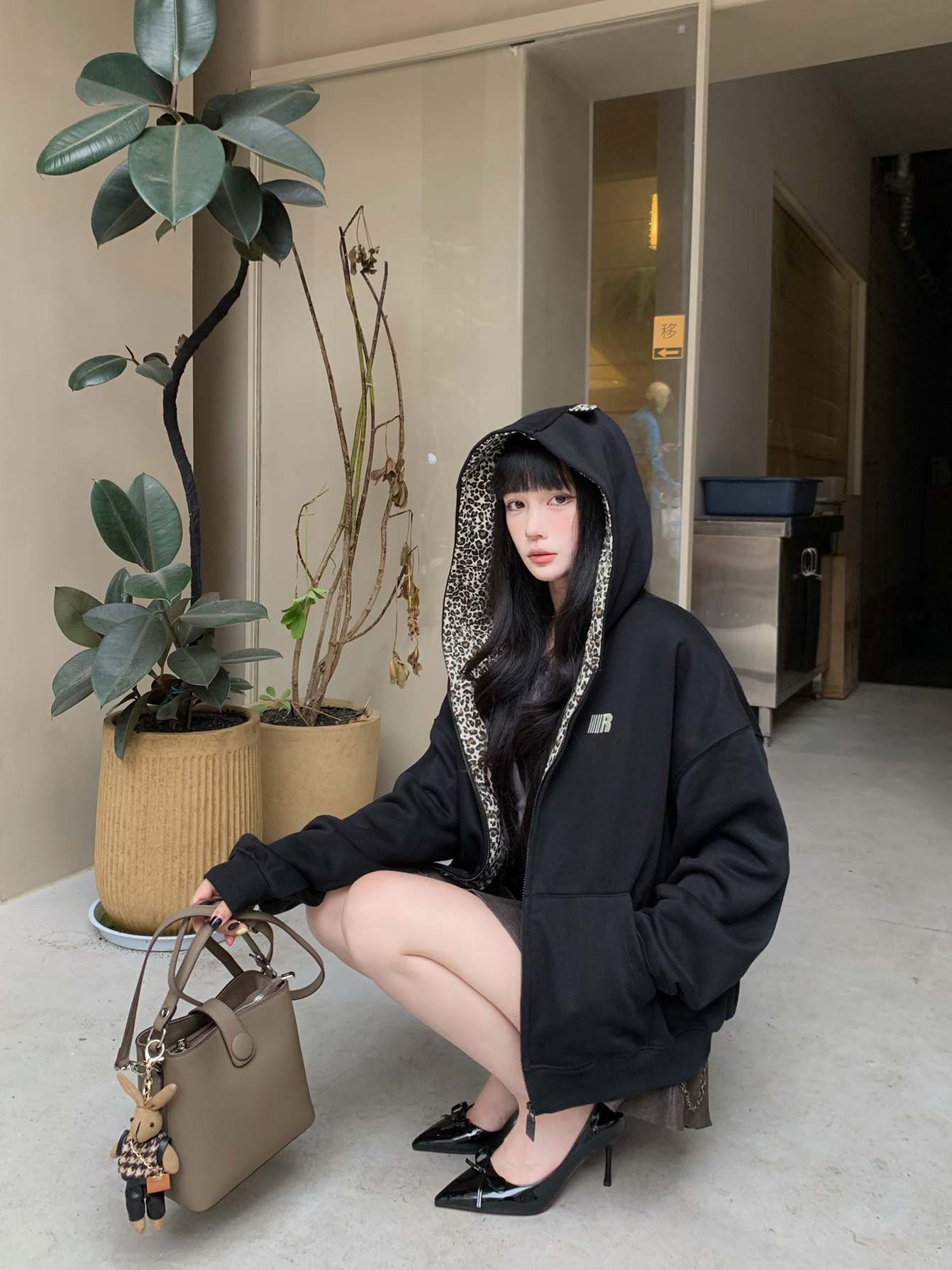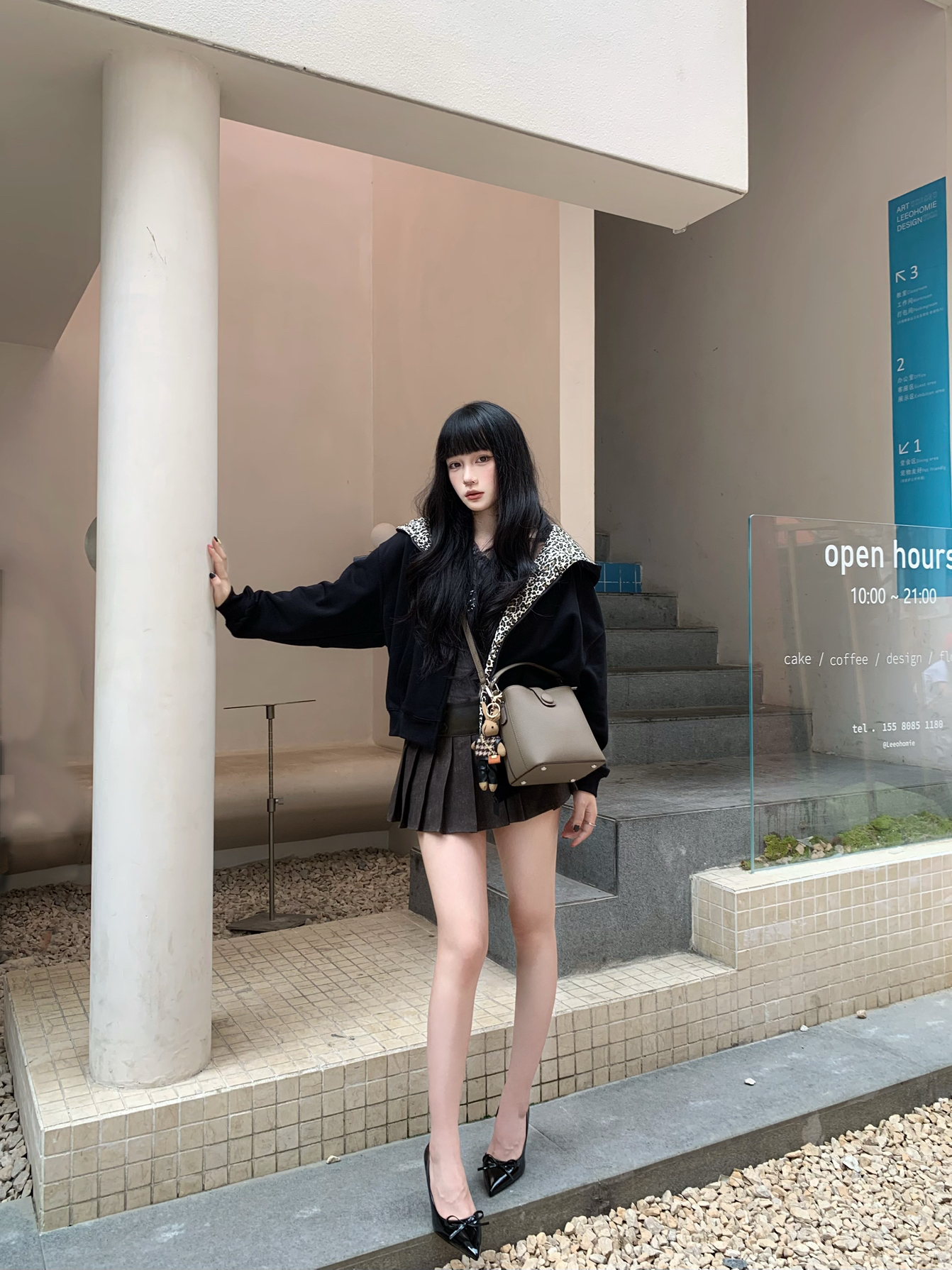 假期精致出门跟我一起混搭8️⃣ 舒适的豹纹耳朵卫衣细节满满 搭配黑高跟鞋很有气场👠 黑色蝴蝶结➕红底百搭又高级~ 上脚比较柔软舒适 还挺百搭的 包包选择了VINEY牛皮手提包👜 可以单肩背也能斜挎手提😉 送的挂件很加分 取下来也比较简约百搭 基础的单品混搭出不基础的穿搭
