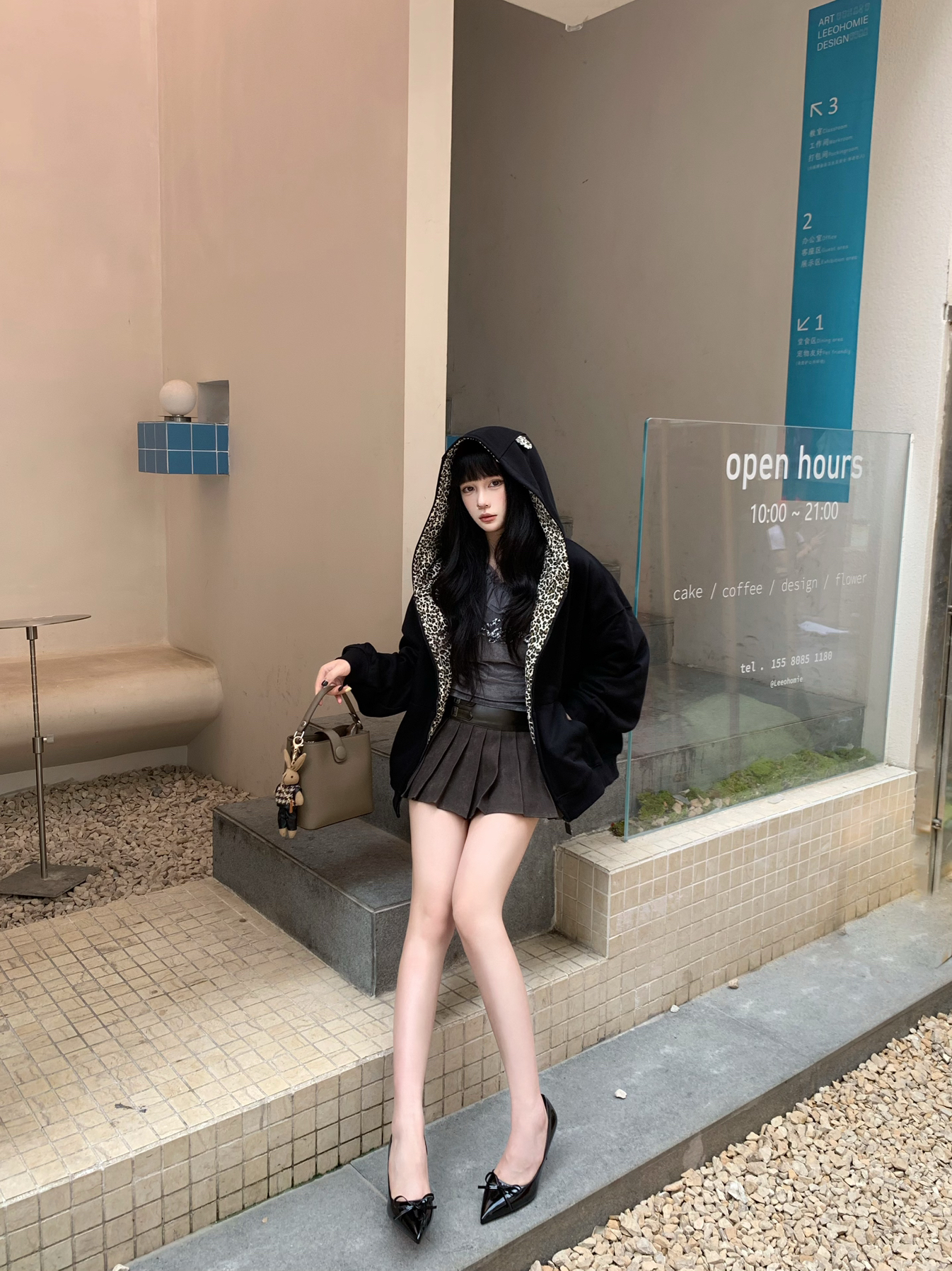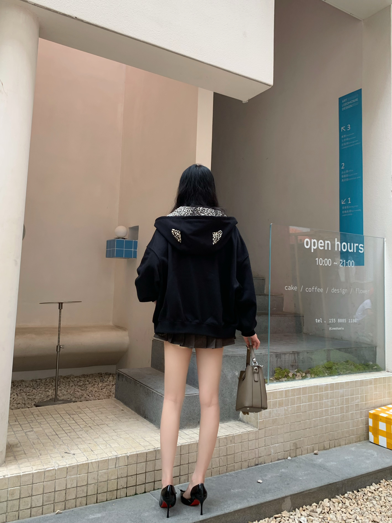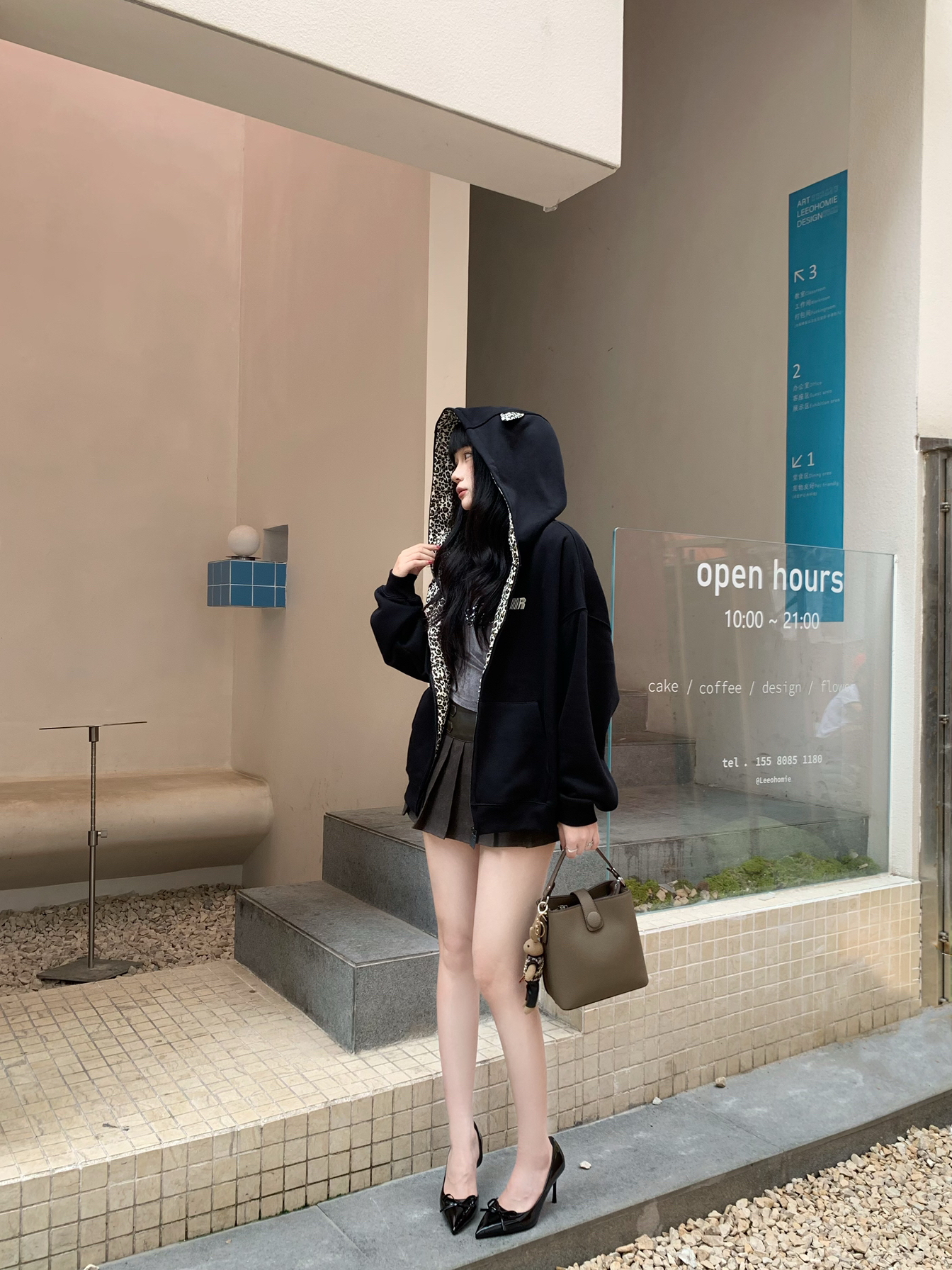 假期精致出门跟我一起混搭8️⃣ 舒适的豹纹耳朵卫衣细节满满 搭配黑高跟鞋很有气场👠 黑色蝴蝶结➕红底百搭又高级~ 上脚比较柔软舒适 还挺百搭的 包包选择了VINEY牛皮手提包👜 可以单肩背也能斜挎手提😉 送的挂件很加分 取下来也比较简约百搭 基础的单品混搭出不基础的穿搭
