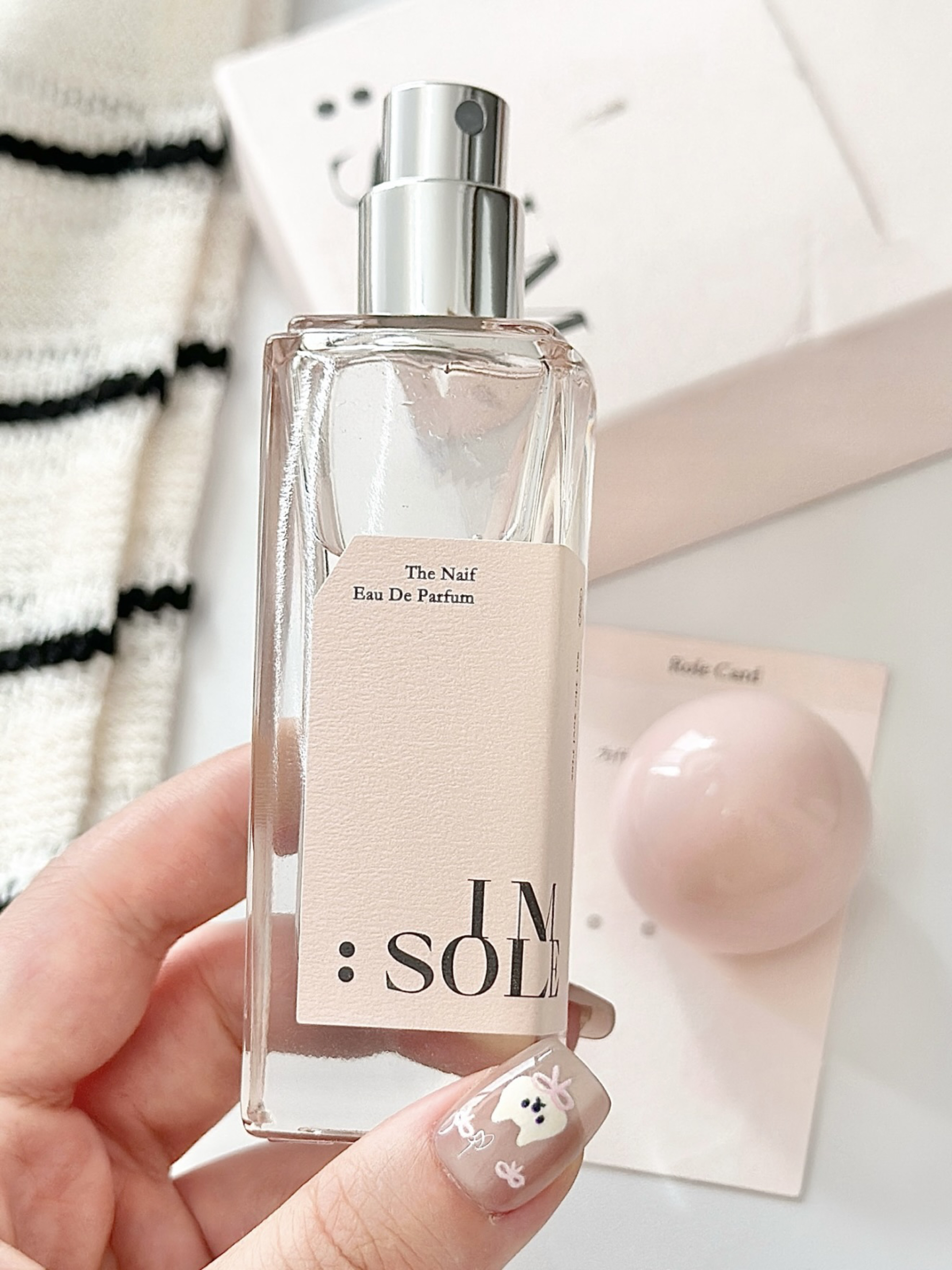 最近每天都在穿的一支香 就是不定所家的“幼稚鬼” 粉粉嫩嫩的玻璃瓶身搭配圆形瓶盖 拿在手里好有质感~ 前调是青苹果的清甜 中调是软糯恬淡的蜜桃香 最后留下舒服的雪松 甜而不腻 让人越闻越上头!