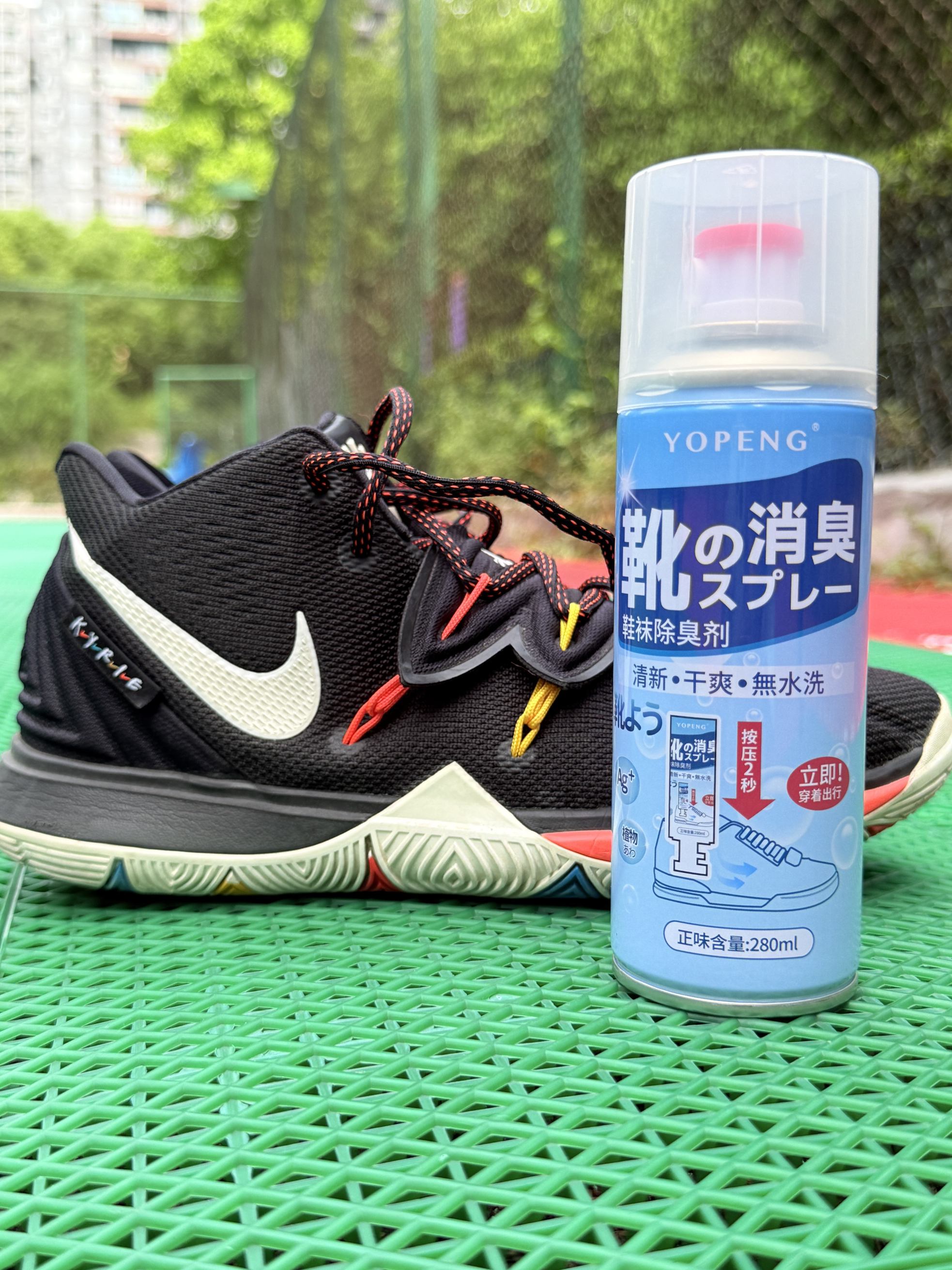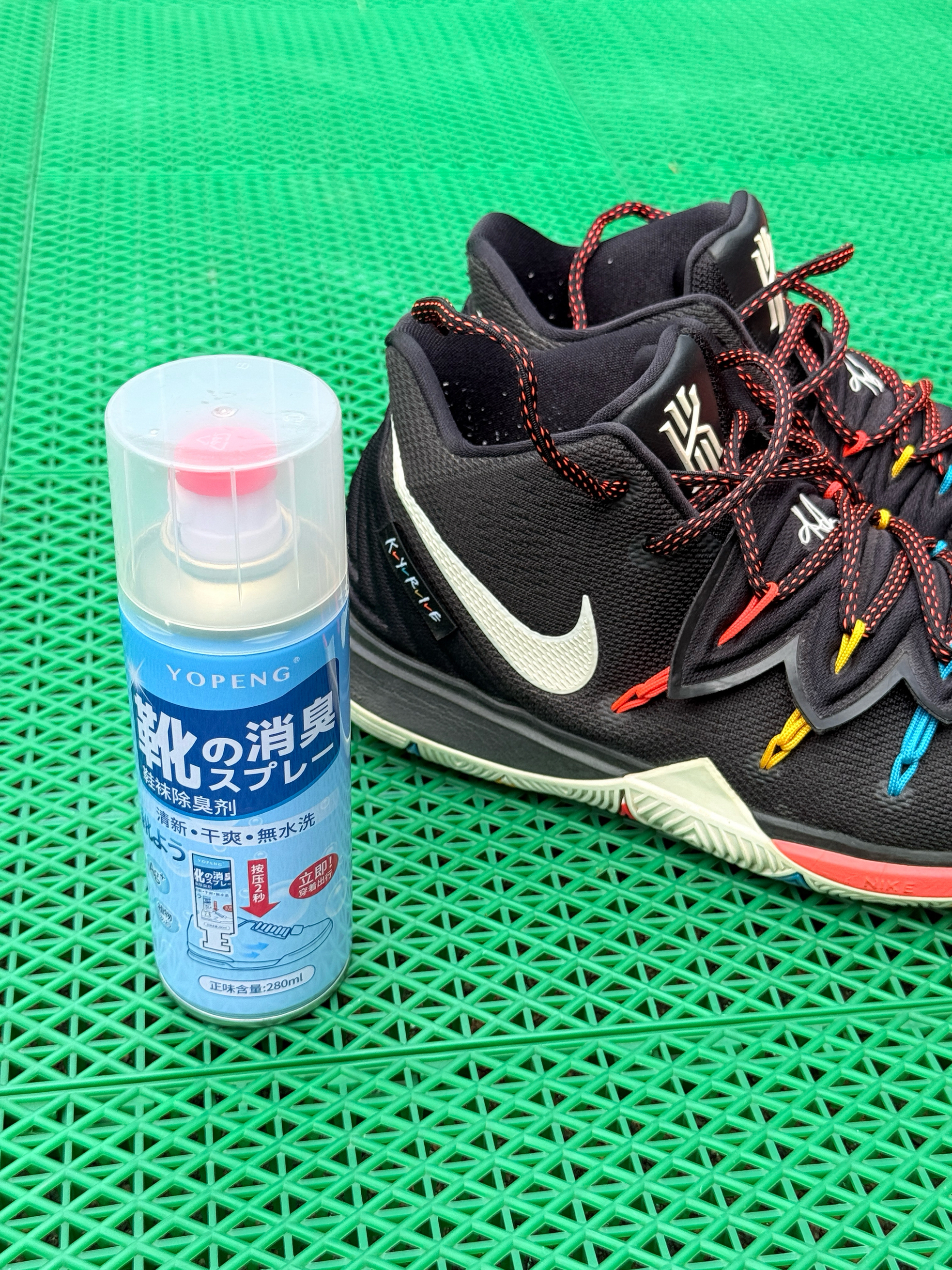 本篇笔记关联了Nike Kyrie 5 欧文5 zoom 实战训练 舒适减震 防滑耐磨 织物 篮球鞋 老友记、YOPENG 鞋袜杀菌除臭喷雾 280ml等商品,为用户提供真实的使用体验和购买参考。