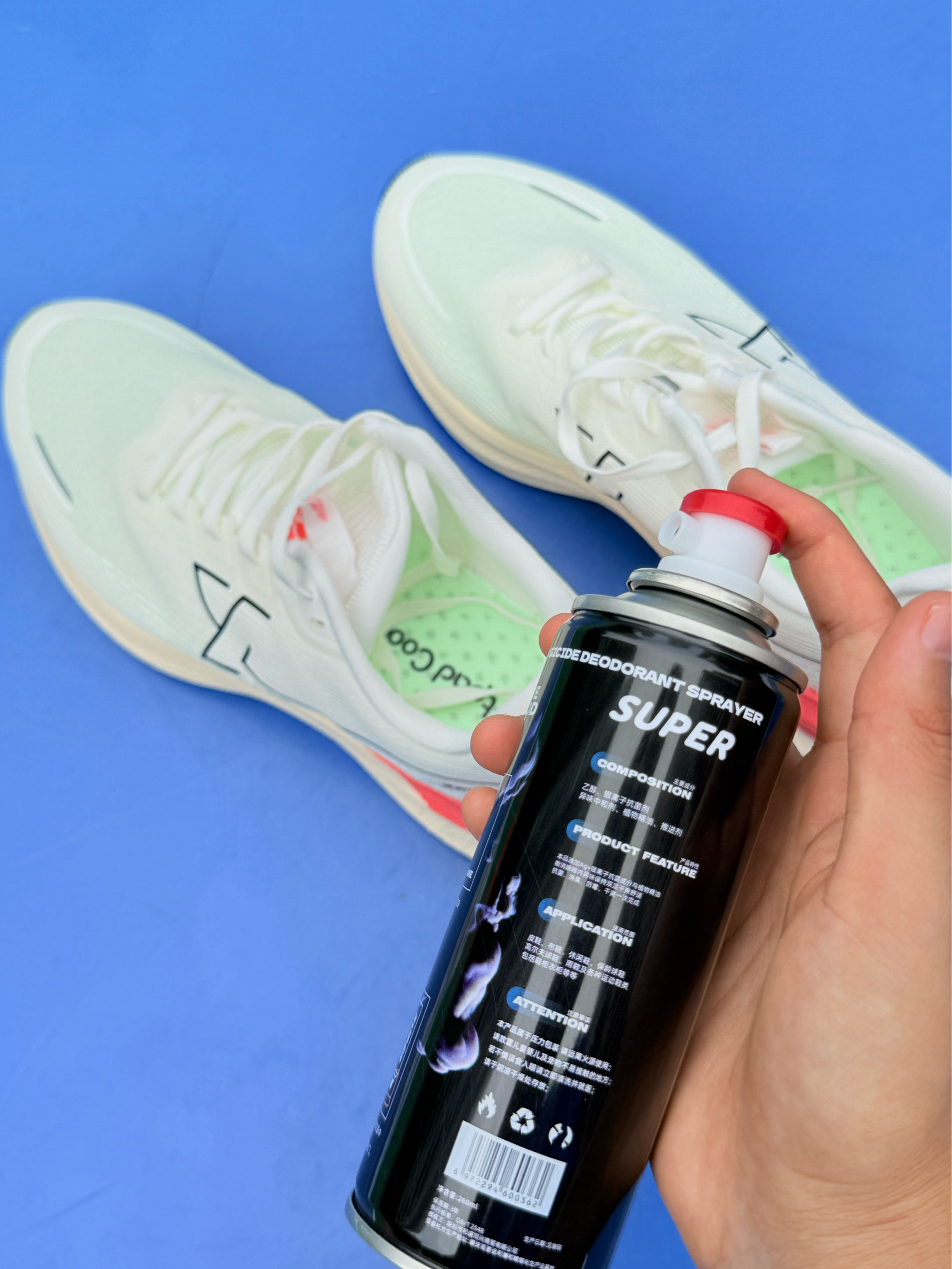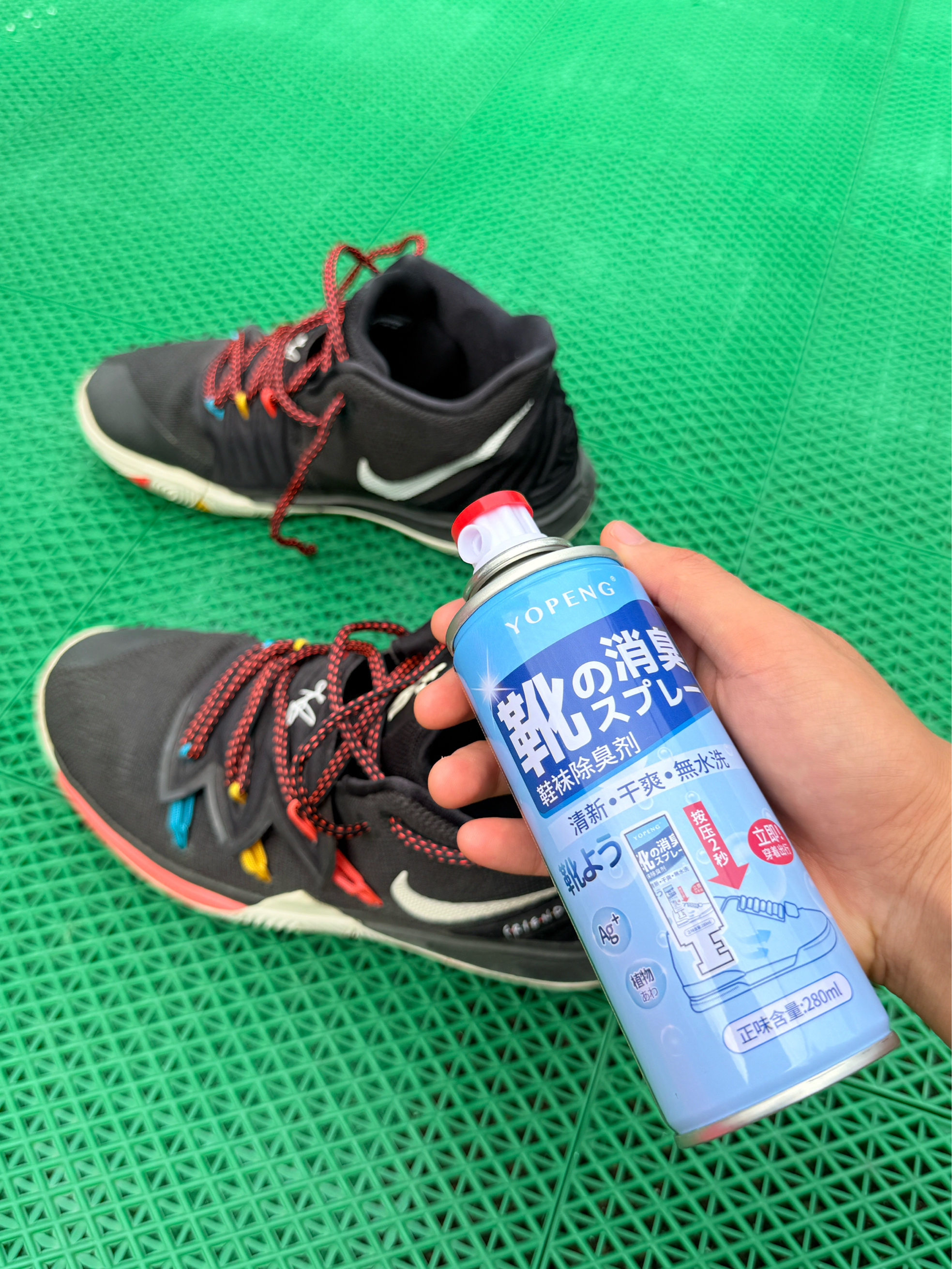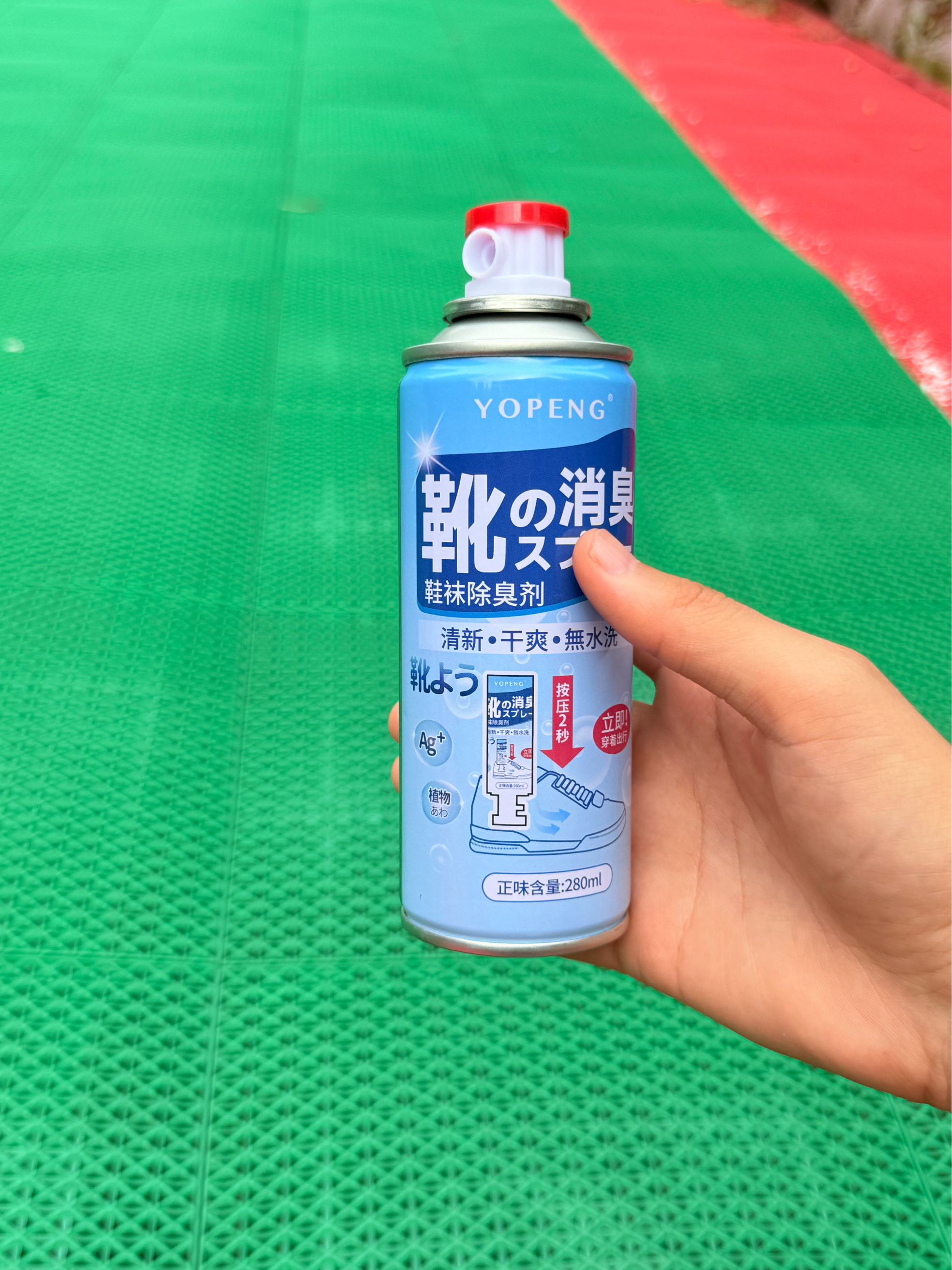 平时我打完球都会给换拖鞋缓解足部疲惫感,有时候怕出汗了味儿大,所以入手了这款 YOPENG 家的除臭剂!终于可以放心脱鞋了 按压出喷雾,可以倒着喷,鞋最里层也可以喷到,无死角。超方便。在球场上换拖鞋也不用尴尬了。😄