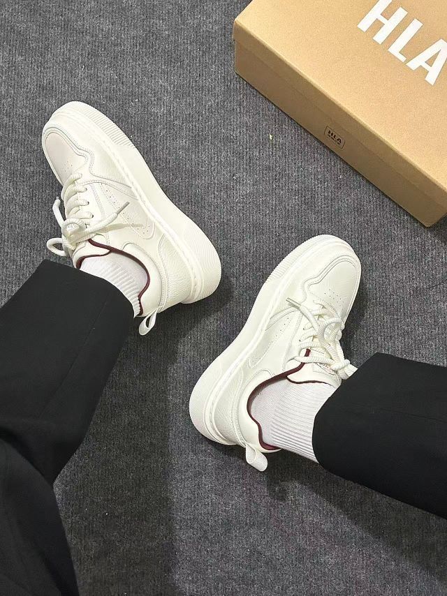 这双白红色板鞋,上脚舒适软厚底脚感软糯☁️,鞋面简约大方搭配牛仔或休闲裤都超可,时髦感轻松拿捏👌各种风格搭配✨国庆出去玩穿很哇塞