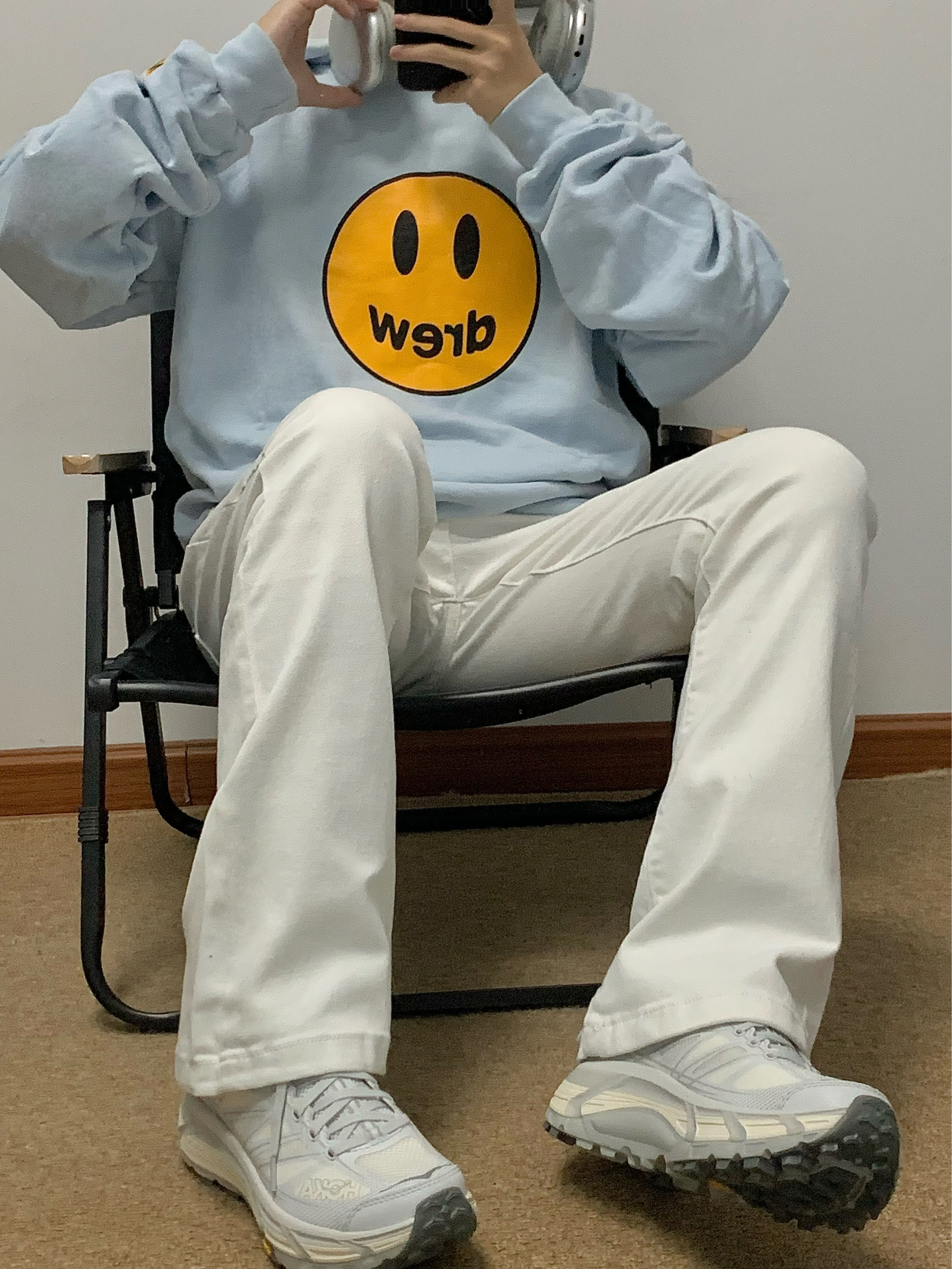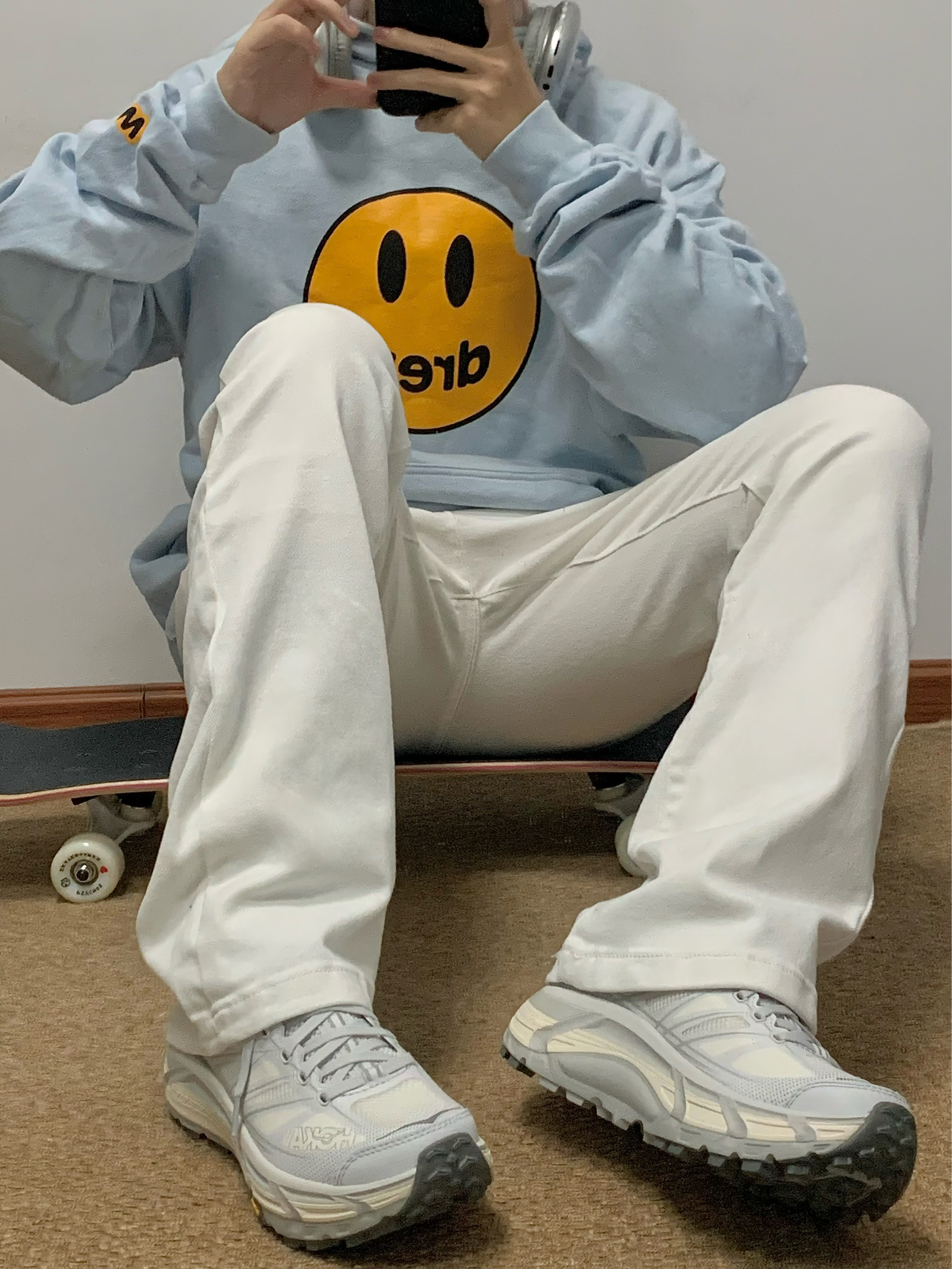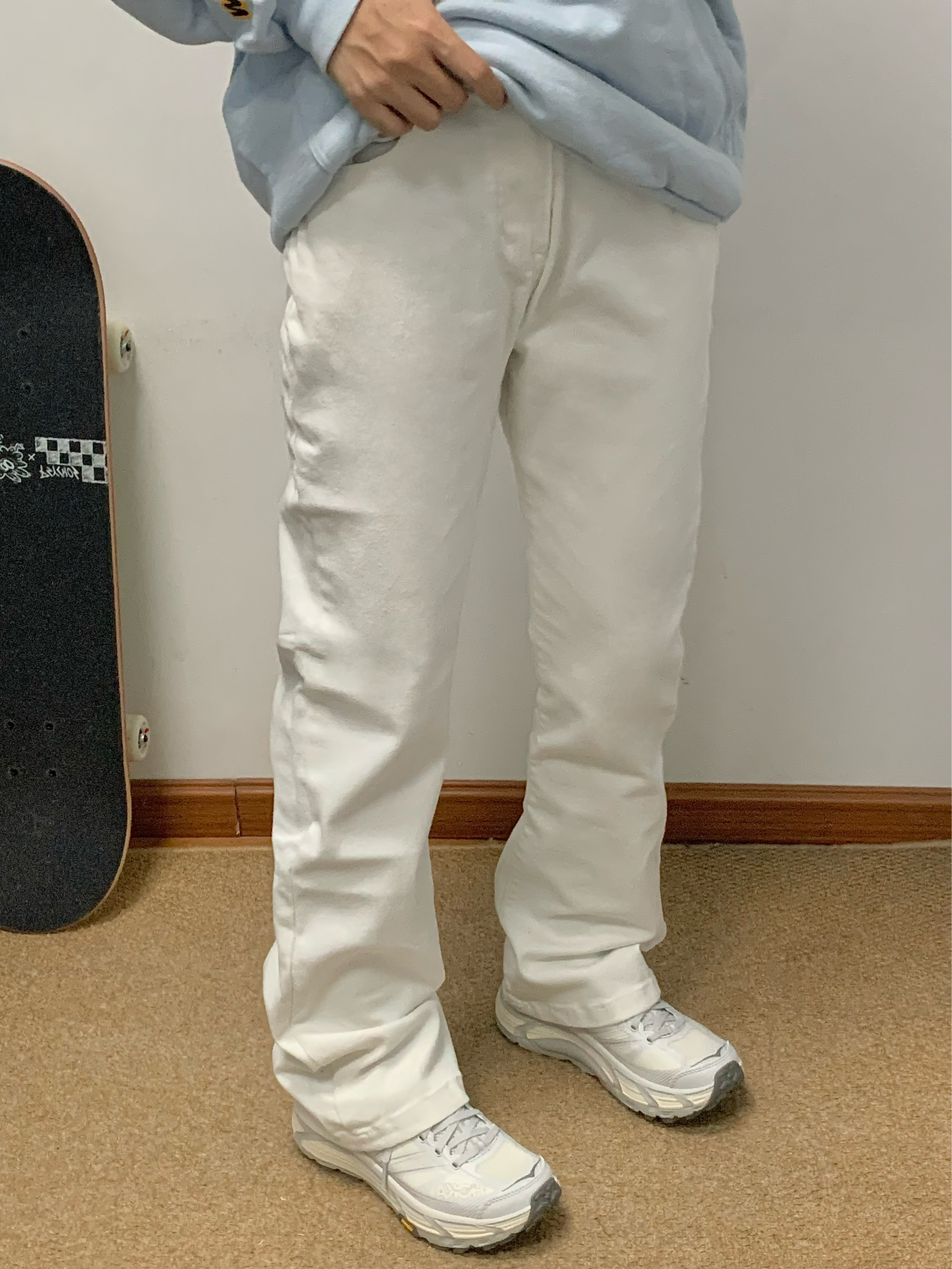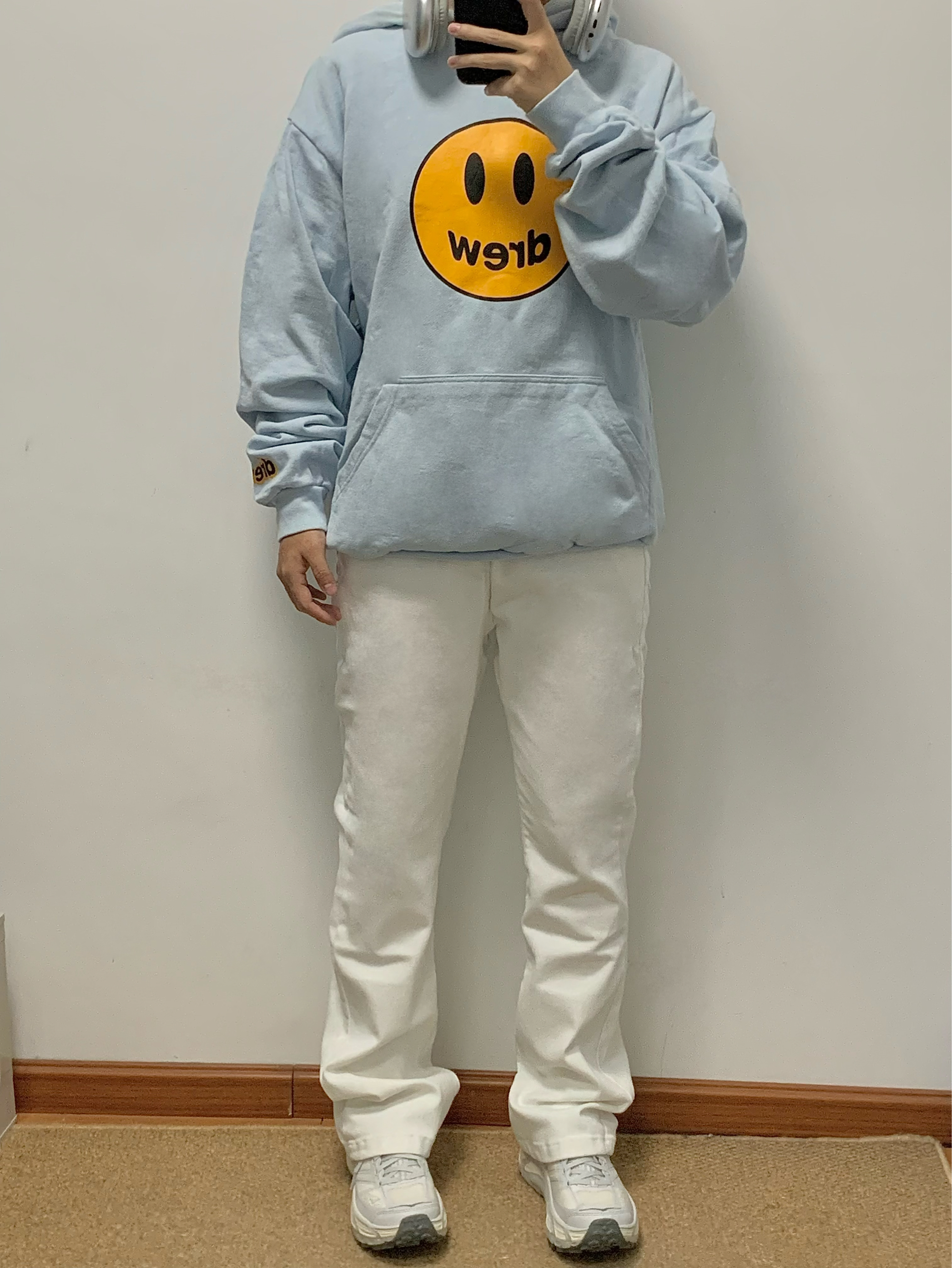 蓝色卫衣搭配白色牛仔裤 少年感十足 中腰直筒的版型 显高显瘦 面料柔软有弹性 上身很舒服 日常搭配卫衣或者外套都很百搭 入秋就穿这一身 包帅的!