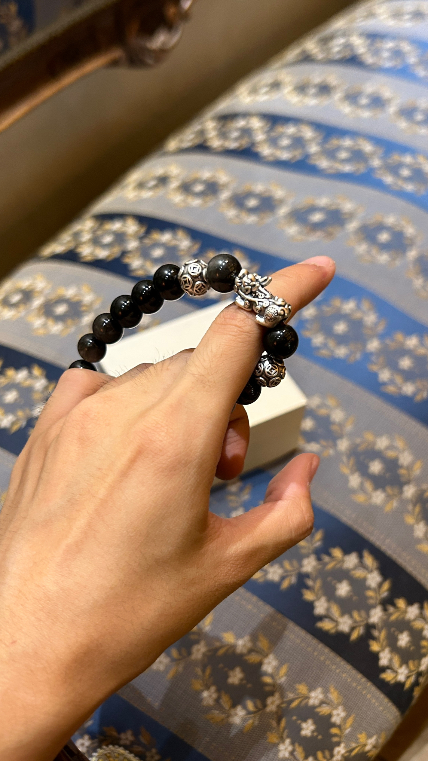最近没事就喜欢盘盘串 这次出去玩也带上它了 可以打发时间的同时还可以给穿搭加分 露胳膊的季节就不要让它空空的了 来条貔貅黑曜石手串点缀 小貔貅活灵活现做工很精美 黑曜石每一颗都是饱满很有质感 尤其是上面的纹理感真的很好看 果然到了年纪就会喜欢上中式风格 七夕冲刺阶段还没选好礼物的话 这或许是个不错的选择哦