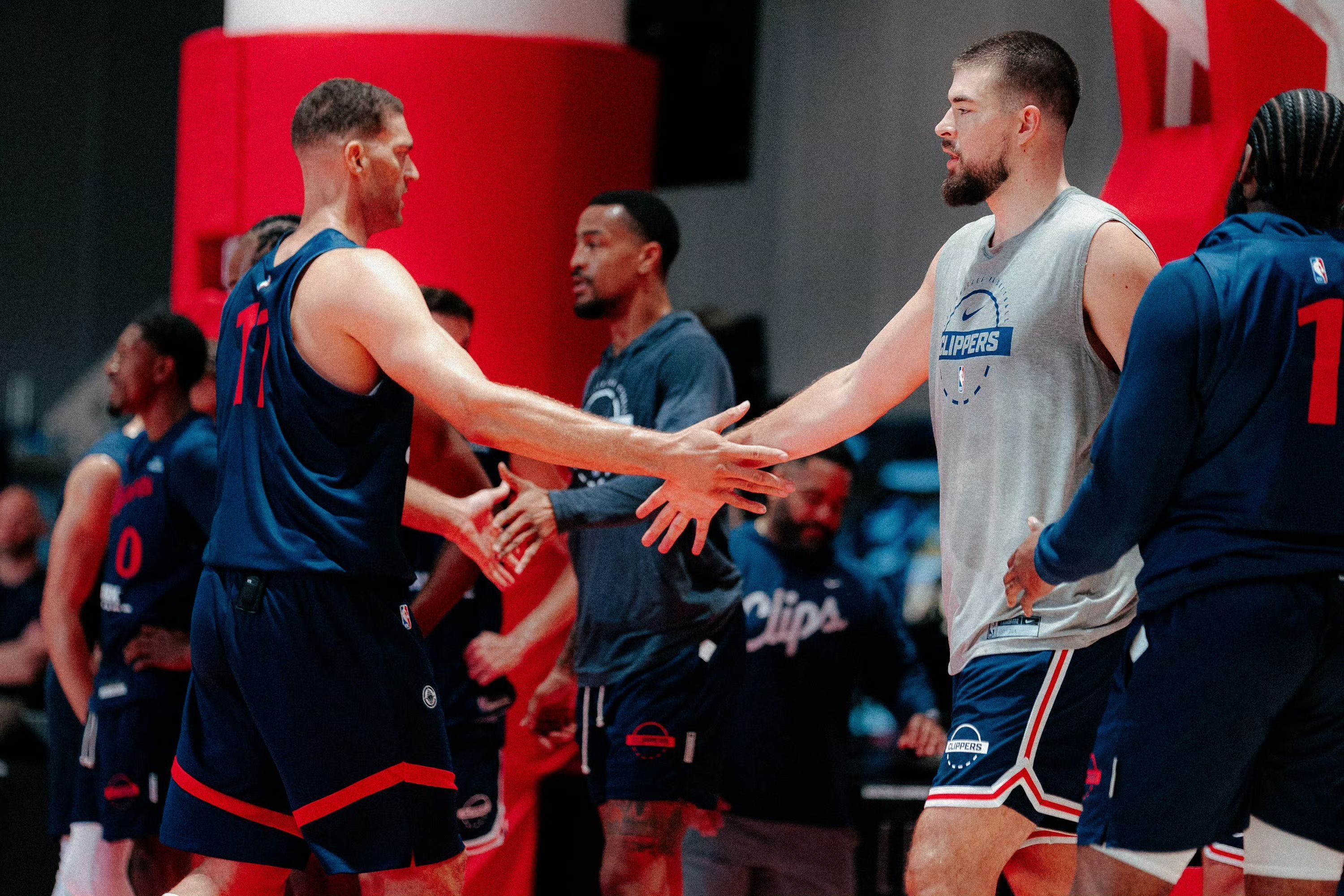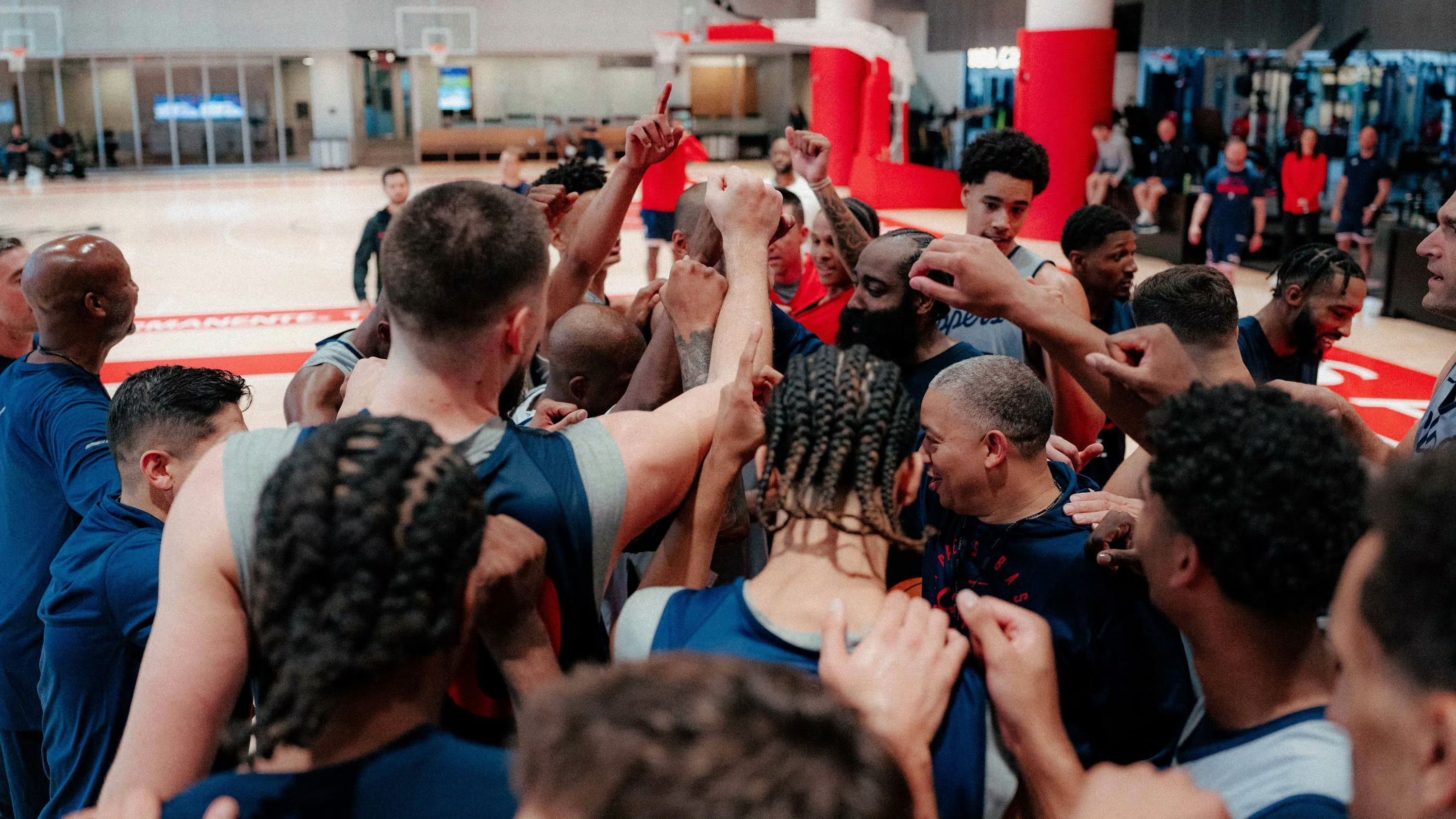 新赛季训练营正式拉开帷幕,球队上下洋溢着积极备战的热烈氛围。哈登、伦纳德、保罗、比尔等核心球星悉数亮相,全员投入高强度的合练中,展现出对新赛季的坚定决心。训练场上,球员们挥汗如雨,无论是战术演练还是个人技术打磨,无不透露出专注与激情。