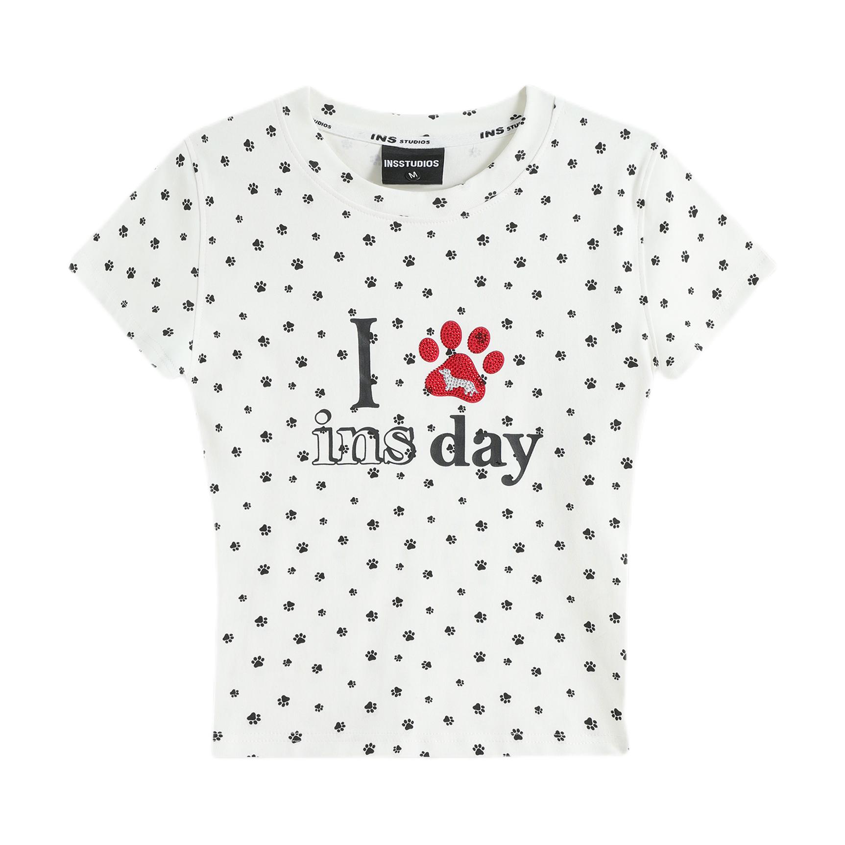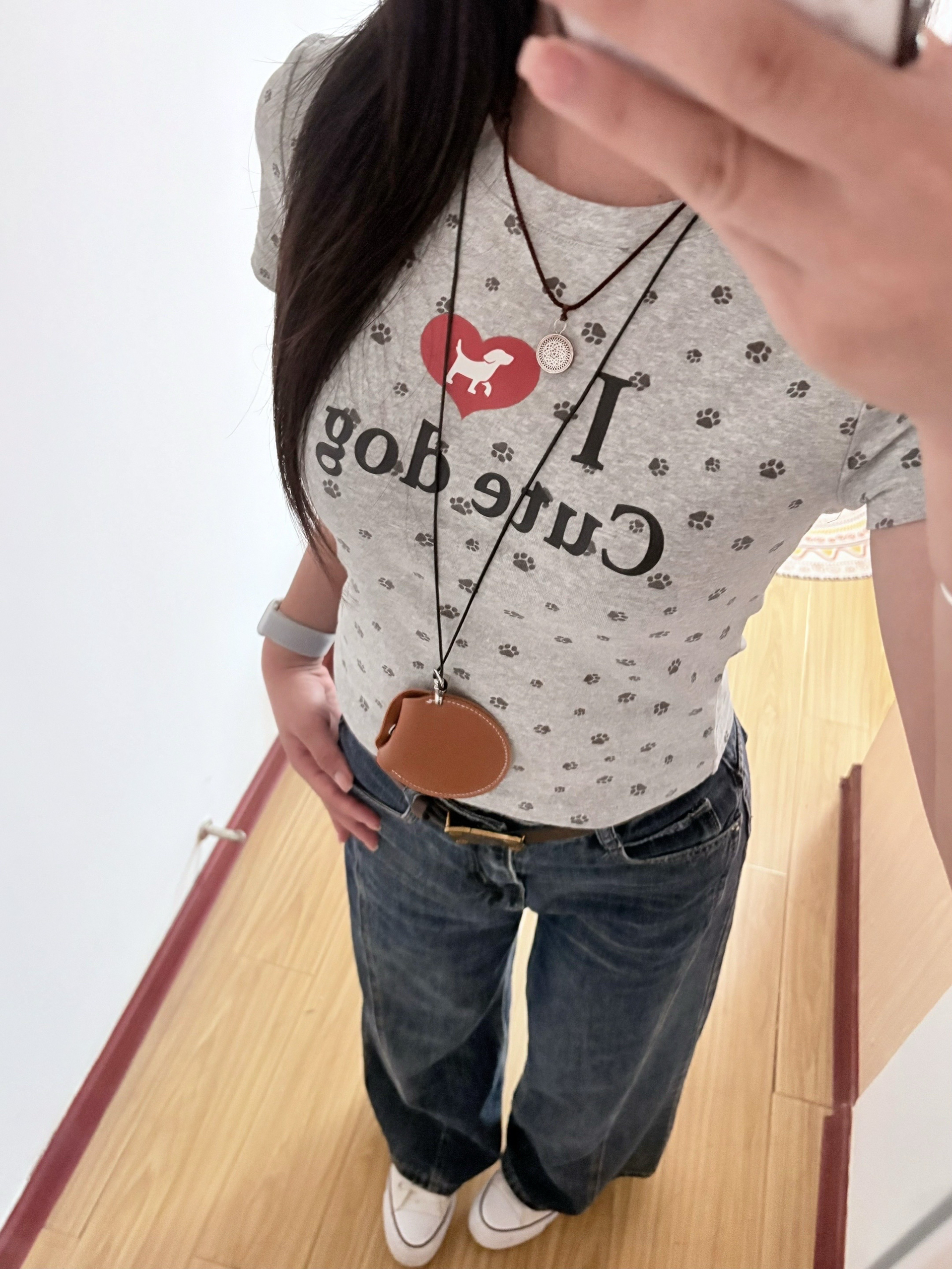 身高|体重:165cm|52kg 🧍♂️ 穿搭风格:活泼可爱休闲风 👔 上衣:爱心小狗印花修身短袖 👟 鞋子:converse厚底 🎒配饰:挂脖小包