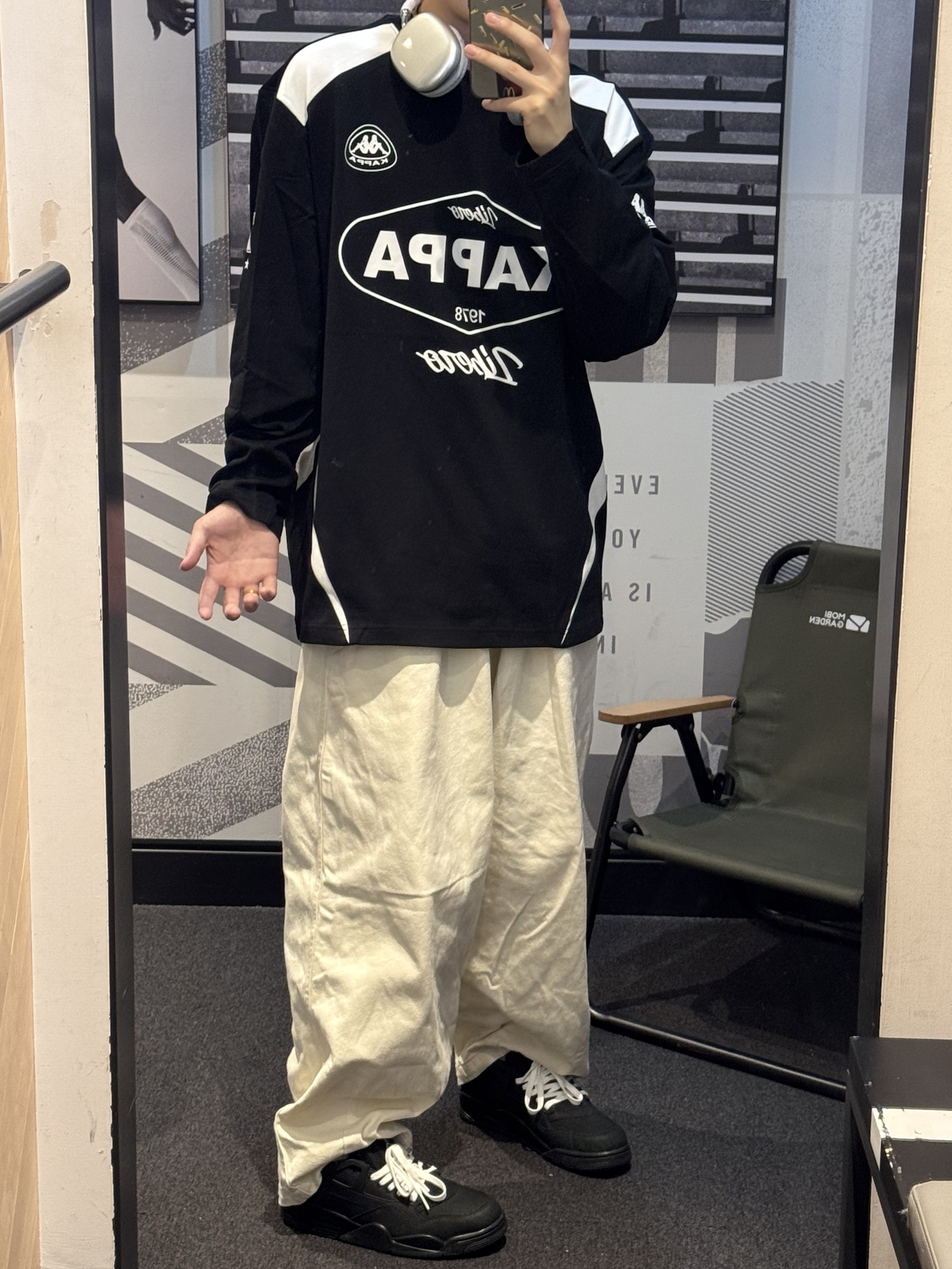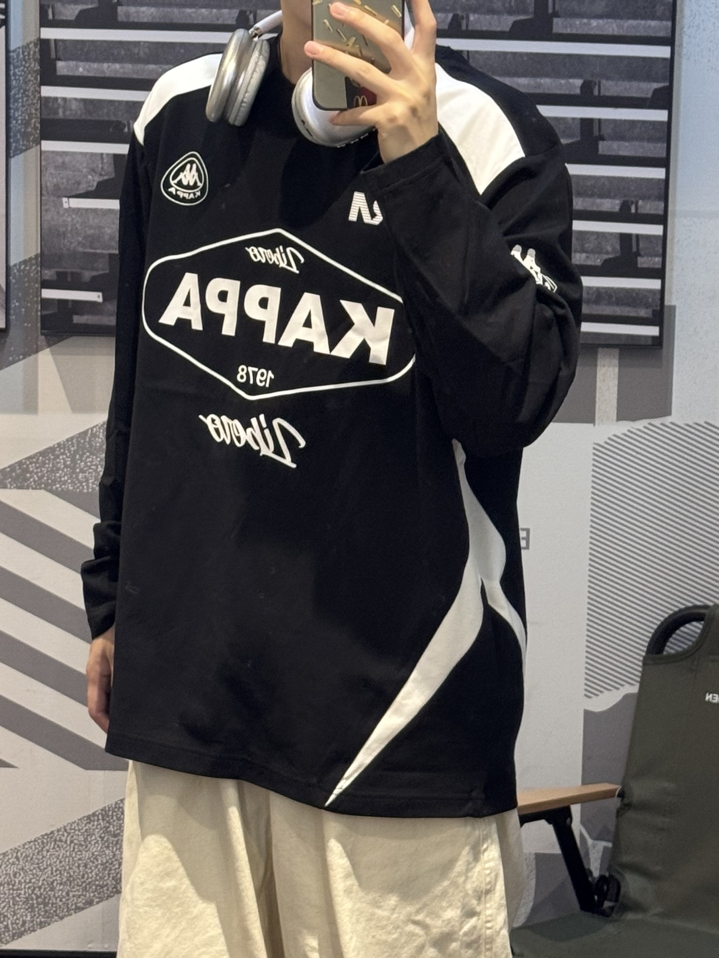 今天分享一件宝藏长袖T恤 #Kappa 黑白色基础色真的太好搭了~ 美式赛车服设计 自带复古感长袖入秋入冬都能穿好看又实用😉 纯棉质感上身还蛮舒服的 搭配米白色直筒裤➕同色系aj4rm 轻松解锁美式少年感穿搭🎧 #kappa #预热一下秋冬穿搭 #早八卫衣穿搭公式 #男大学生秋日OOTD #3秒穿出简单高级感