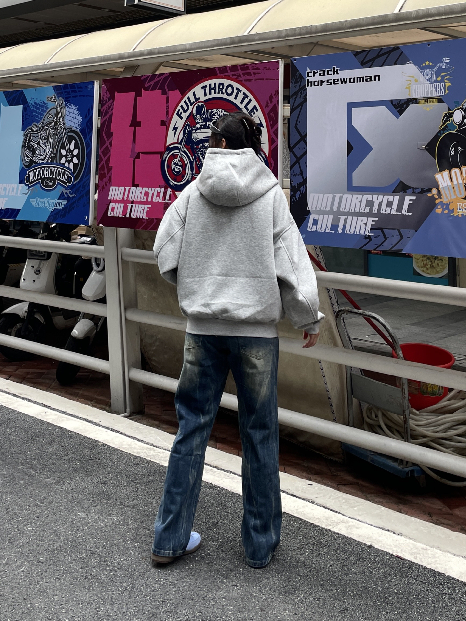 Hello~这里是穿搭女孩Dali - 开启假期模式啦😎 上身一件FDR连帽卫衣 搭配一条水洗渐变牛仔裤 开衫版型加上直筒牛仔 基础款出街也可以很酷帅😍