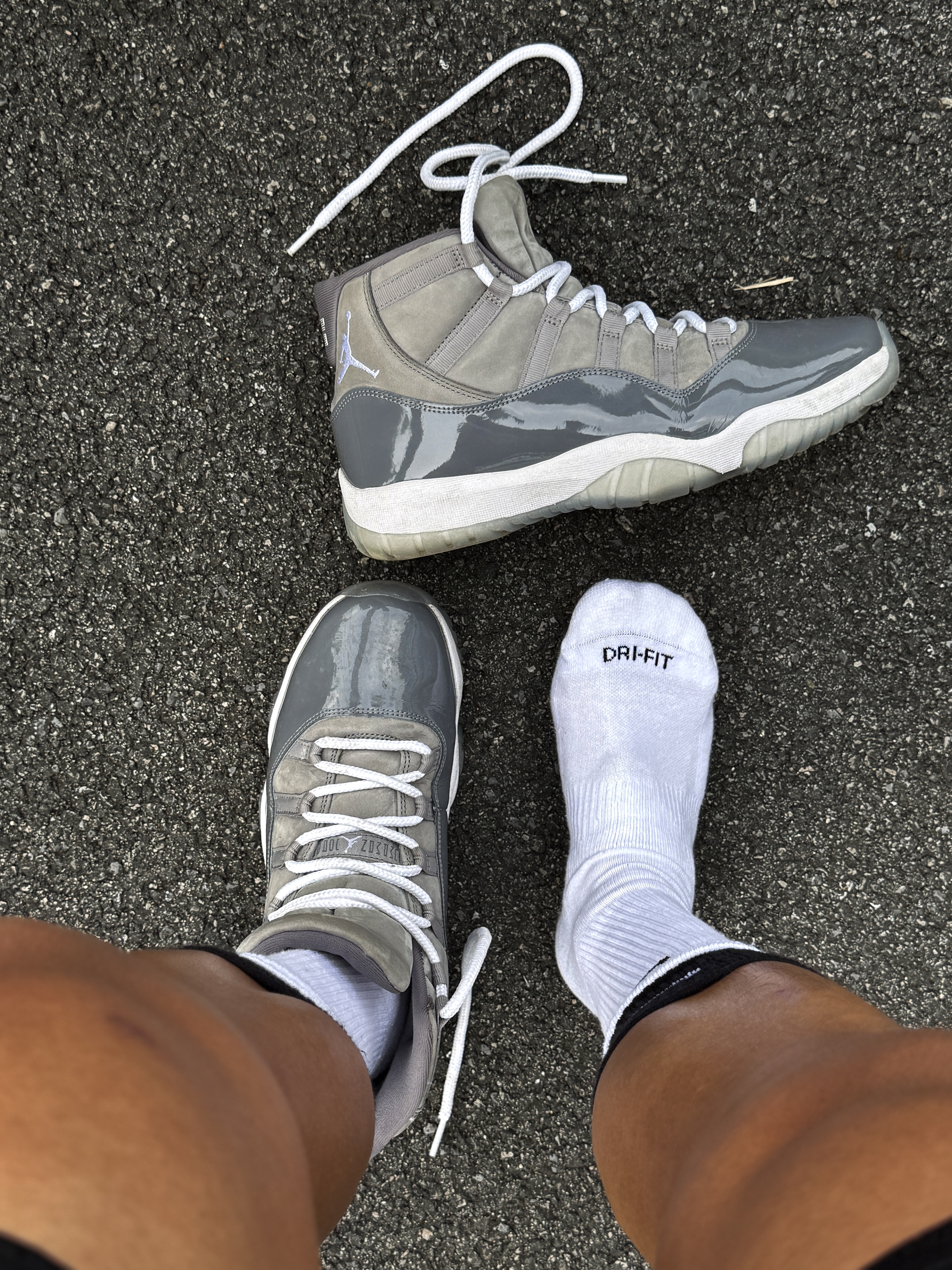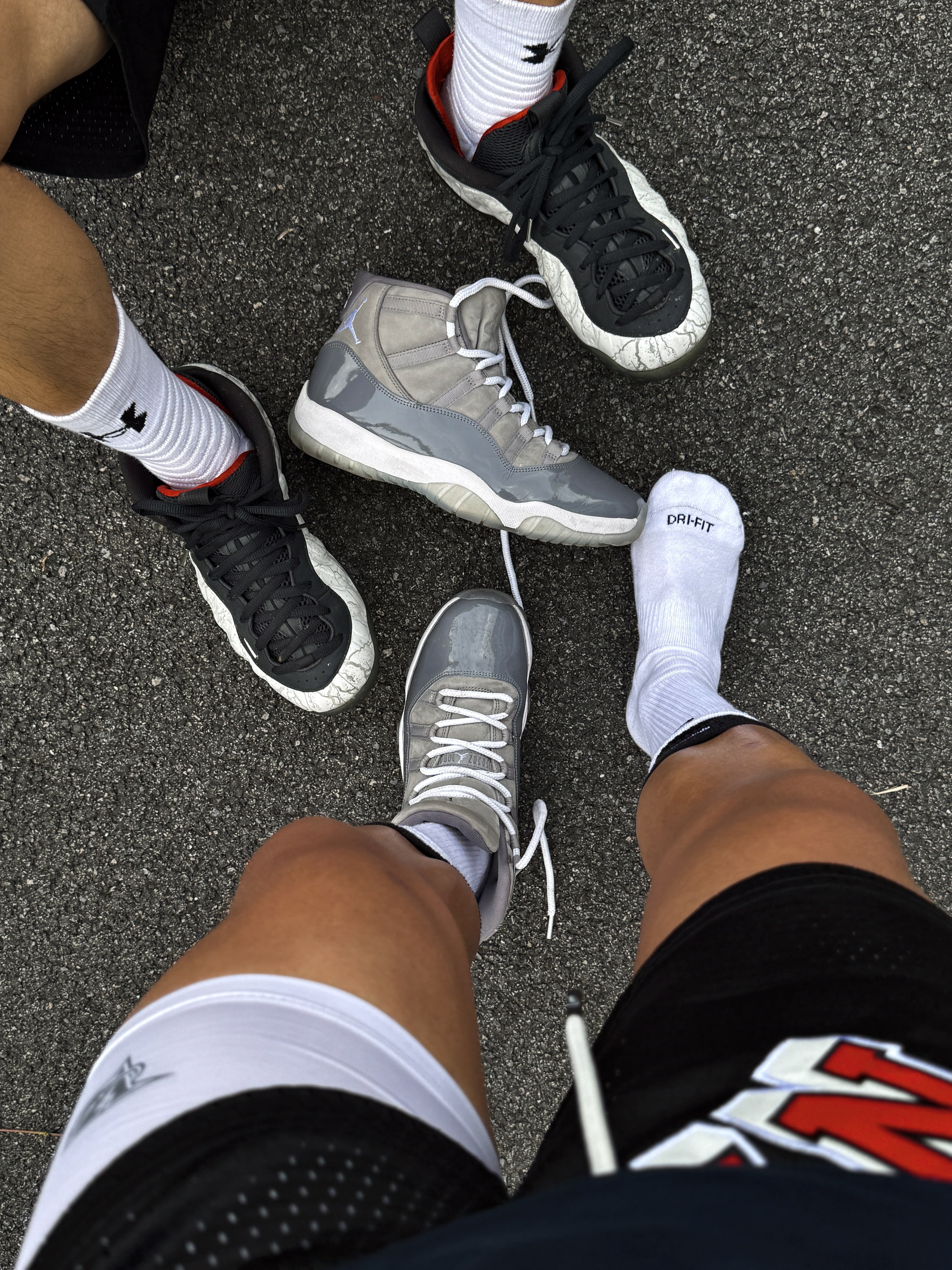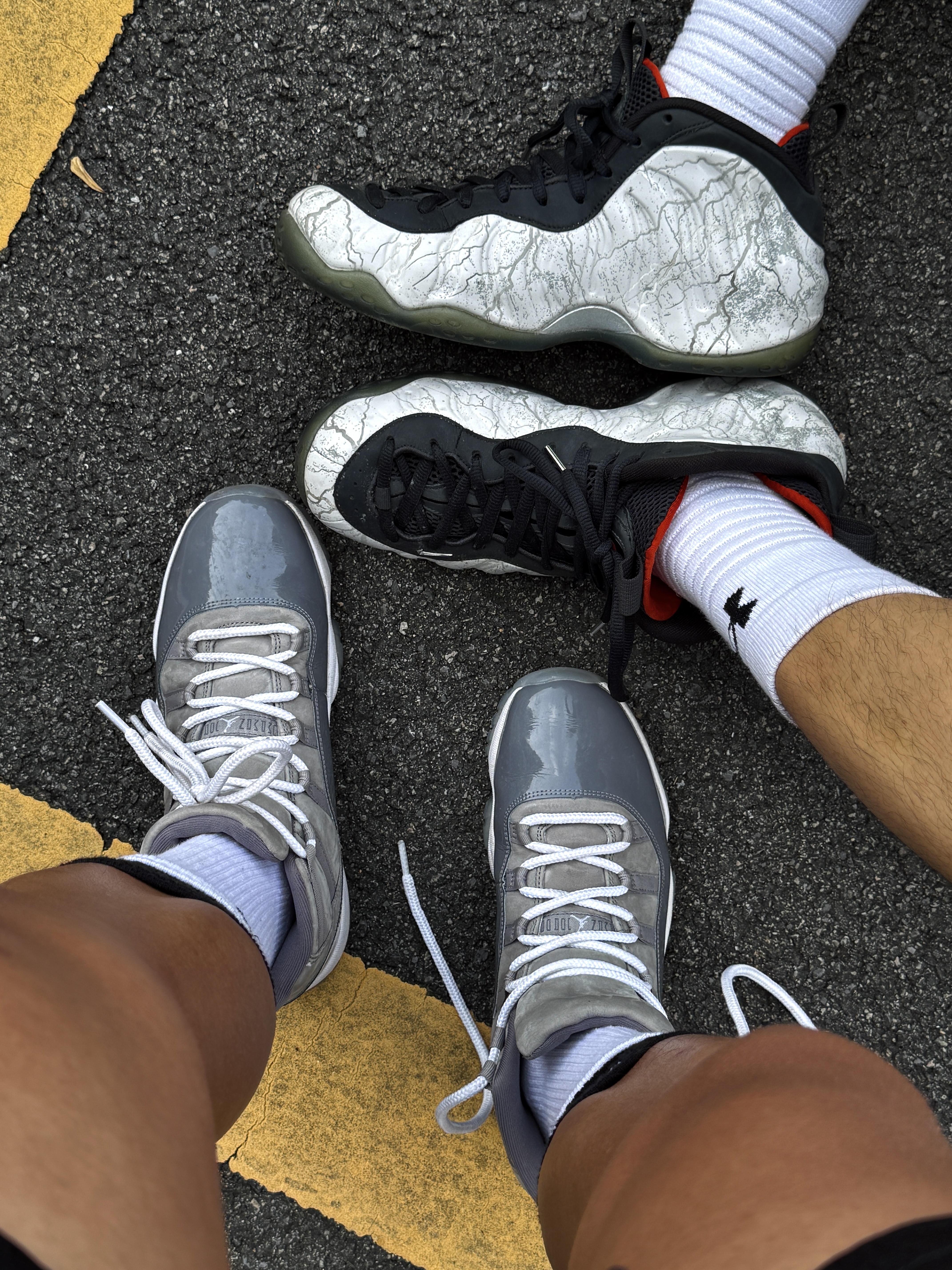 Hey bro‼️这里是小熊的球鞋日记 今天和兄弟各穿一双战靴 站在一块儿感受一下帅气球鞋的冲击力💯 ▪️ aj11酷灰 浅灰色麂皮搭配深灰色漆皮 白色中底和浅蓝色水晶底 整体低调又不失时尚感 全掌Air Sole气垫中底 缓震又稳定 脚感这一块儿没得说☑️ ▪️ 喷泡 铁拳喷 NIKE和《铁拳8》推出的联名喷泡 上脚的这双是风间仁配色 白色3M反光闪光纹理 8字logo的鞋舌设...