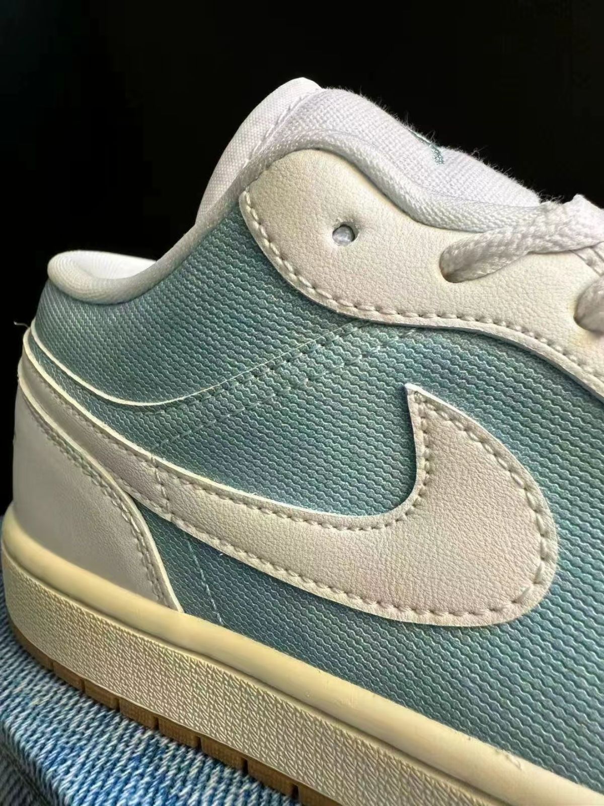 哇!这双AJ1丹宁的脚感真的让我惊喜~材质是牛仔布混搭皮革,摸起来质感很舒服,上脚软软糯糯的,走路一点都不板脚,特别适合日常穿。我平时搭裙子、休闲裤都蛮有型的,瞬间穿搭就有层次了~而且低帮设计对脚踝很友好,逛街遛弯啥的完全不累。唯一要注意的就是牛仔部分可能稍微需要打理,穿久了或许会有使用痕迹~但整体真的很实穿,属于耐看又舒服的那种!