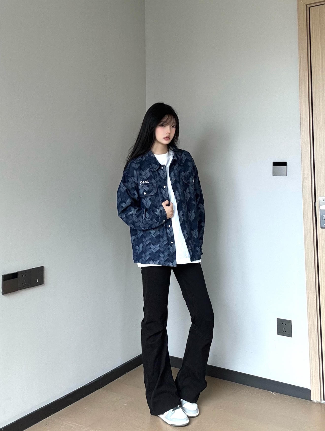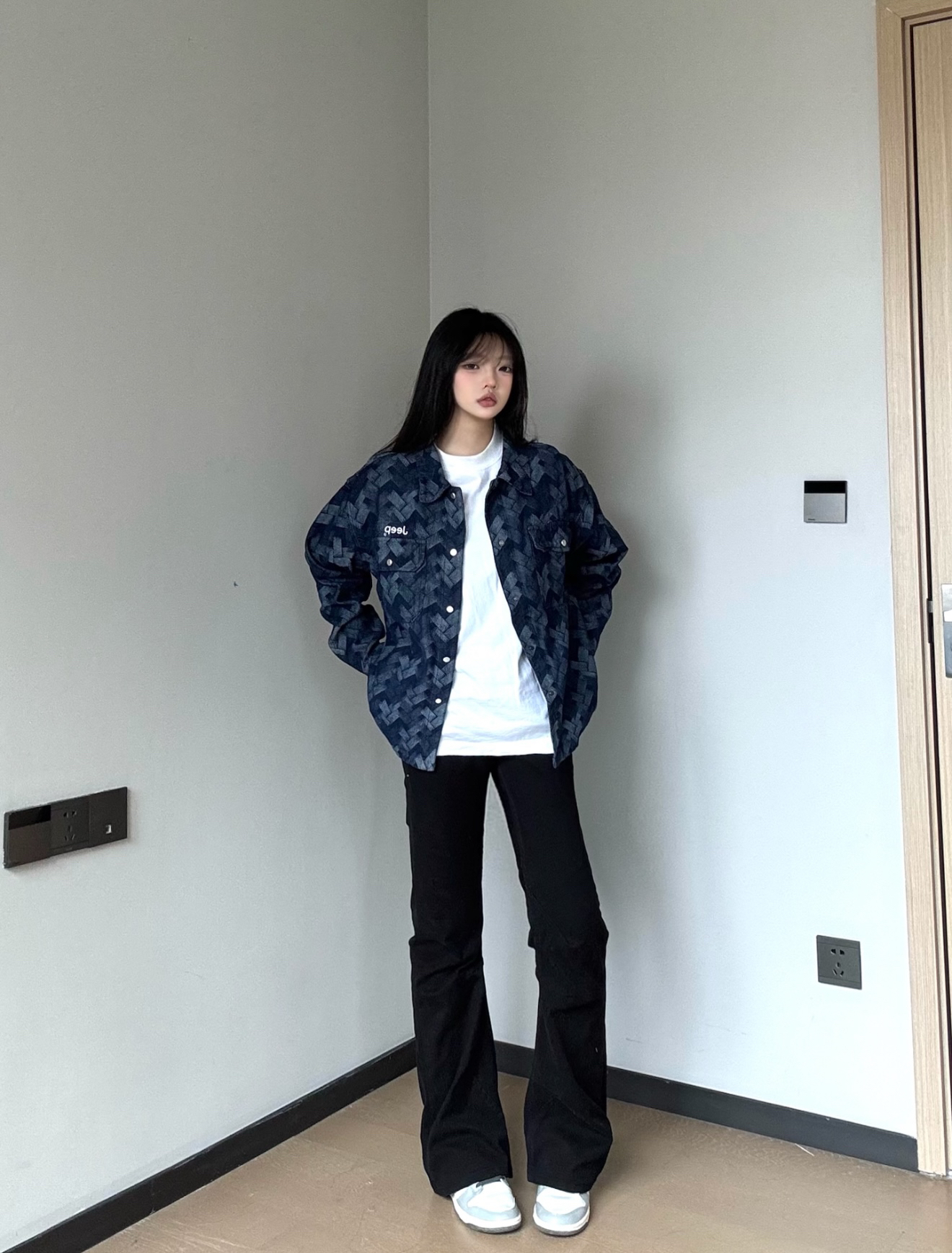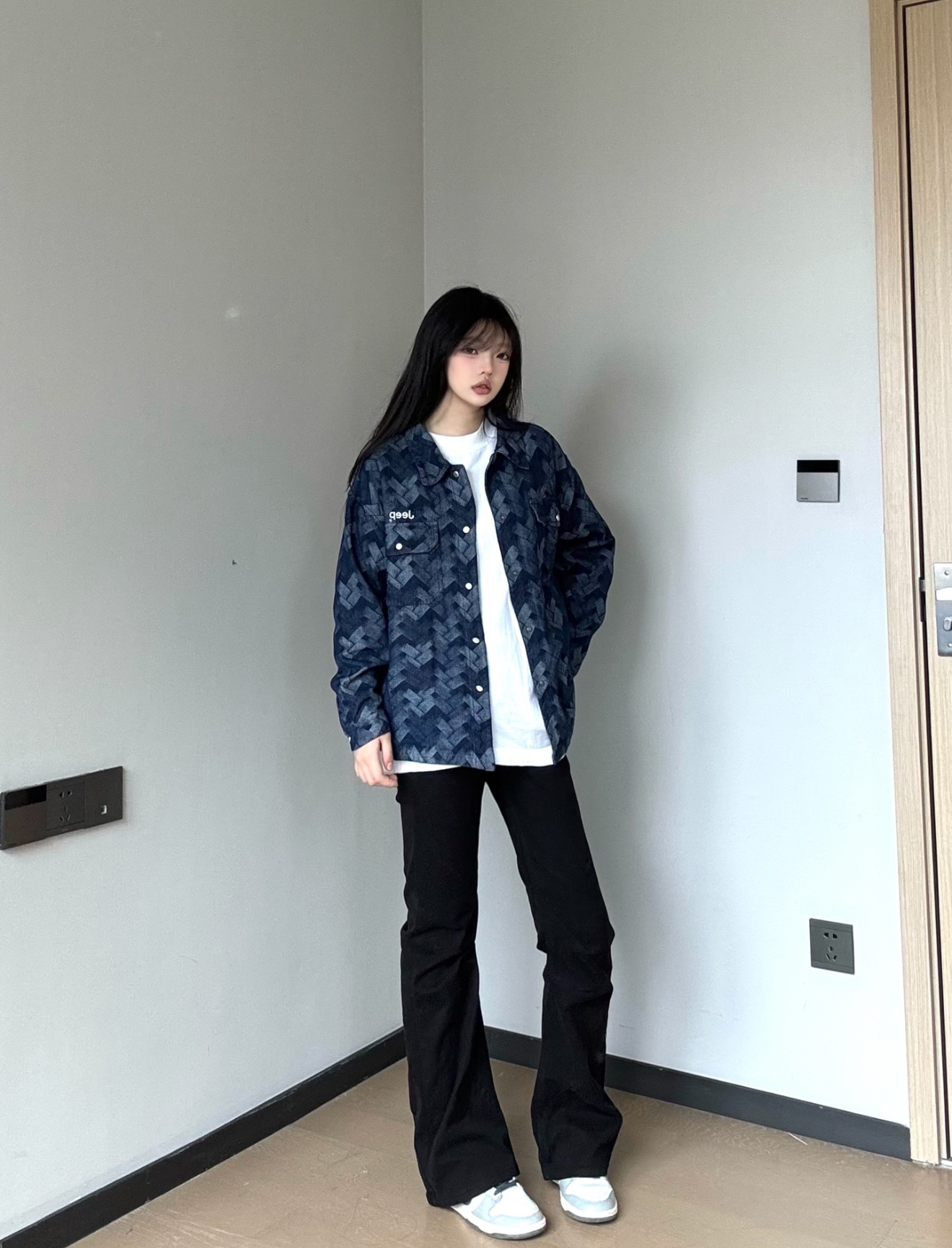 今日ootd👀,我要当拽姐,161cm/55kg 首选休闲蓝色牛仔外套真的好好看😻,很显白,爱了爱了😍 街头感满满衣服上的花纹设计真的轻奢感拉满又大气 不仅美式感十足还带有点复古轻奢的气息! 在搭上黑色的直筒微喇裤超酷😎 休闲夹克外套##识货萌新创作营 而且秋季不管是内搭一件卫衣或者单穿都很🆒