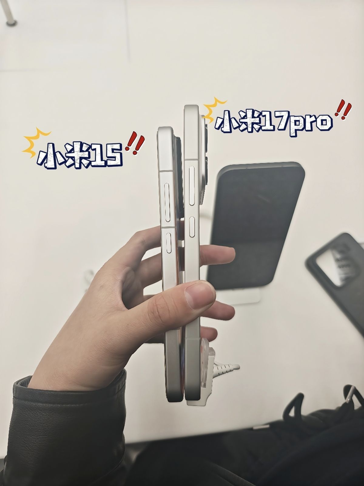 嗨!家人们我是蚂蚁呀!17出来有点心动了怎么办!我的小米15低2等啦! 图2图3图4是小米15分别和小米17和17Pro和Pro max的对比,图5是侧边的对比。 小米17是有冰融蓝雪山粉白色和黑色,小米17pro是有白色黑色森野绿和冷烟紫和小米17Pro max是一样的 小米17的尺寸是6.3,小米15是6.36,大家可以看下对比,小米17promax是6.9英寸 总的来说妙想背屏确实是增加了互...
