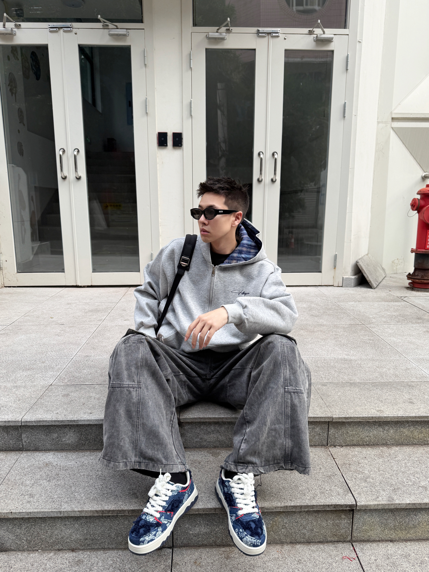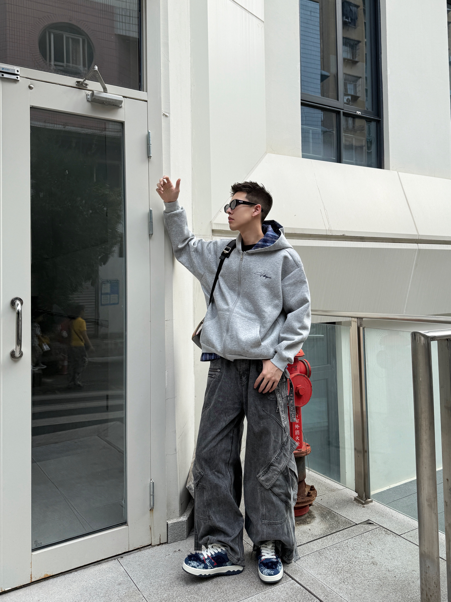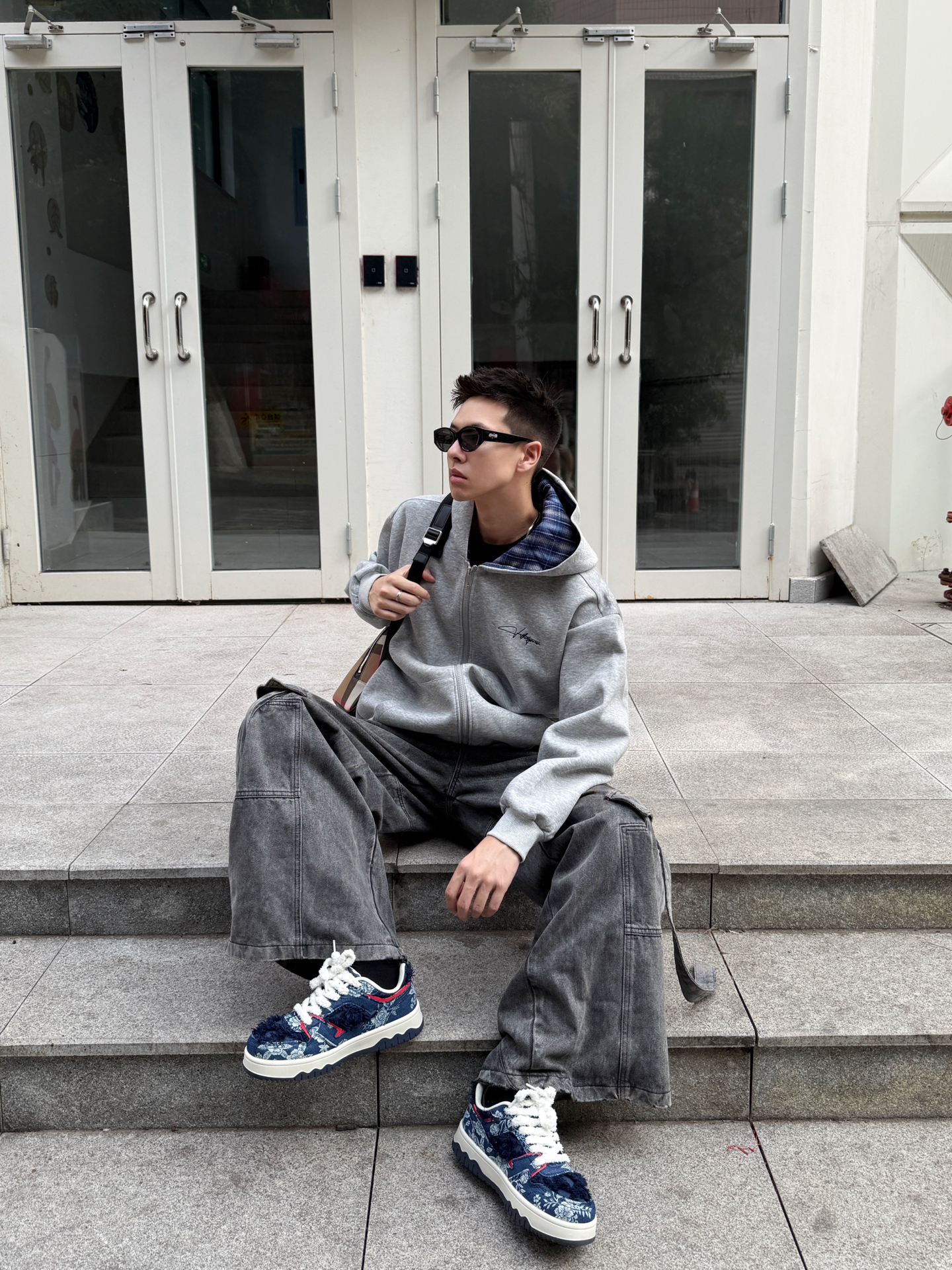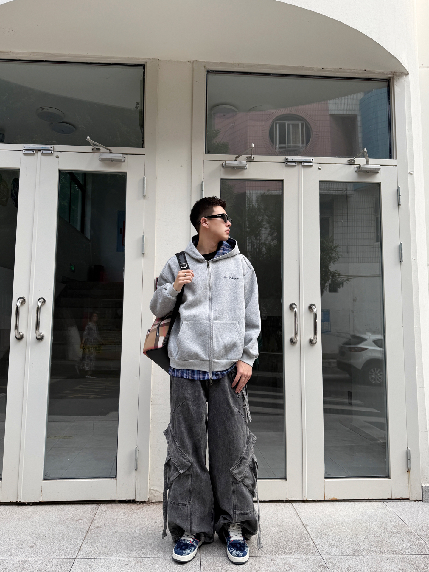 今天这套叠穿look我直接封神!! 灰色连帽卫衣外套里面搭了件蓝格子衬衫 层次感这不就来了嘛✨ 胸前的小刺绣logo好戳我~ 下面配条做旧牛仔裤👖 裤脚堆堆的慵懒感谁懂啊! 鞋子是最近的新宠👟 #Doraemon/哆啦A梦 蓝白配色跟这身灰调调莫名搭! 随手一拍都是街头感大片📸 今天的ootd你们打几分? #doraemon哆啦a梦 #Doraemon板鞋 #静默复古穿搭公式 #国庆出游就...