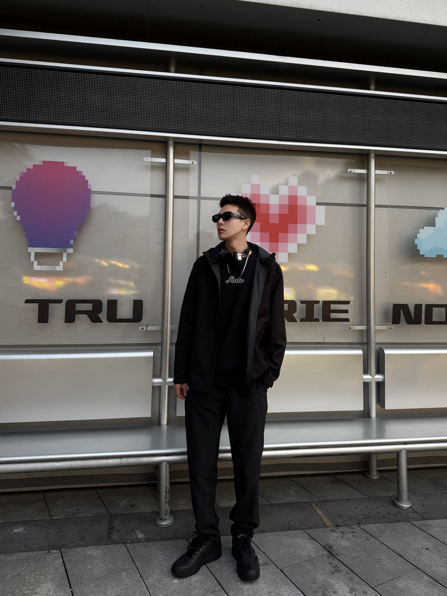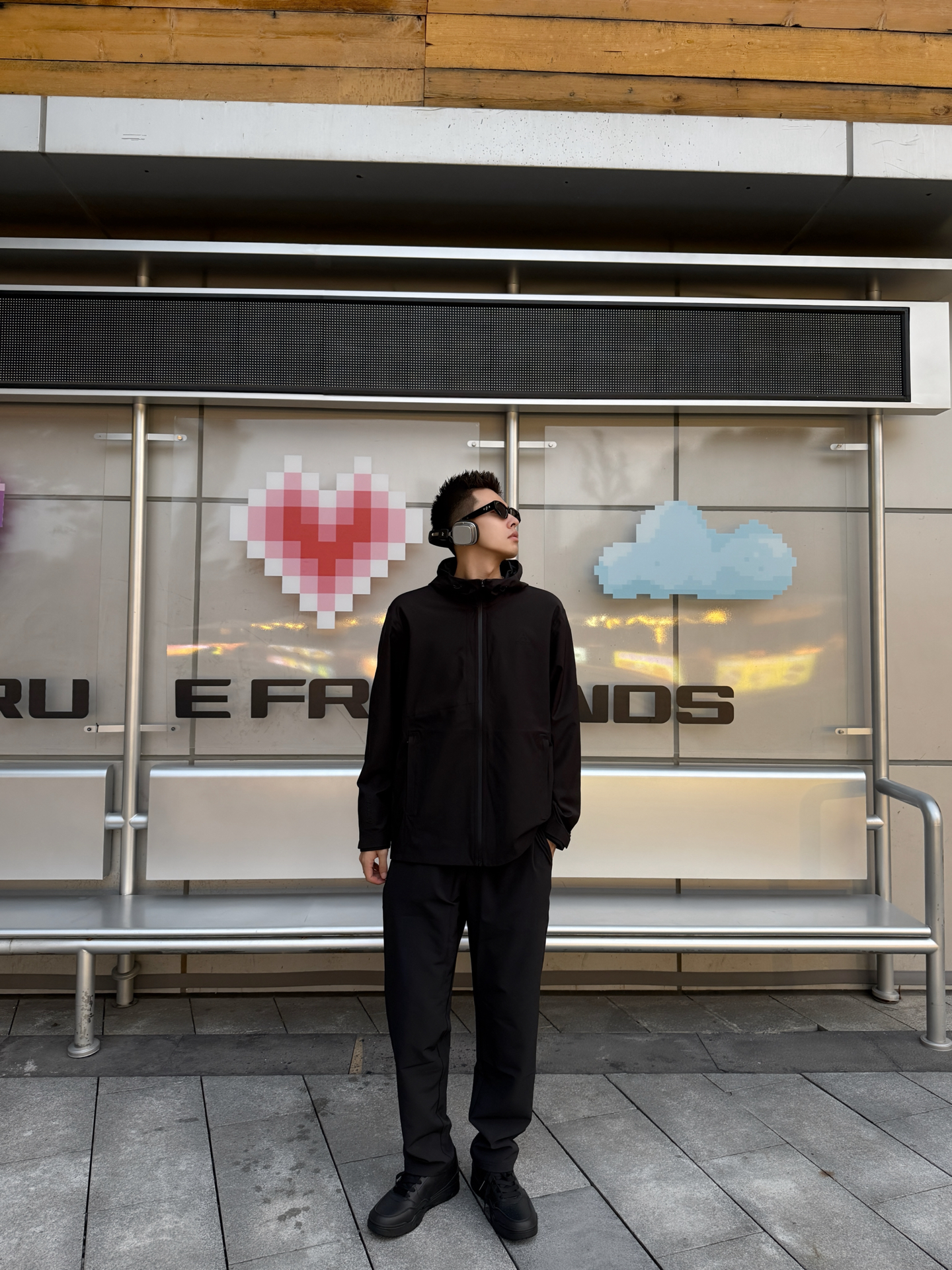 家人们!今天这套all black冲锋衣look我直接锁死🔒 谁能想到冲锋衣也能穿出松弛感啊! 安踏这件黑色冲锋衣外套也太好穿了吧! 面料防水防风 最近天气降温穿刚好🌧️ 连帽设计还能挡风 实用性拉满💯 胸口的小logo设计简约又高级 里面搭了件同色系内搭 层次感这不就来了嘛✨ 裤子也是安踏的黑色休闲裤 垂感绝了!显腿长第一名🥇 裤脚微微宽松的版型超遮肉 鞋子选了安踏的黑色运动鞋 厚底设计秒变...