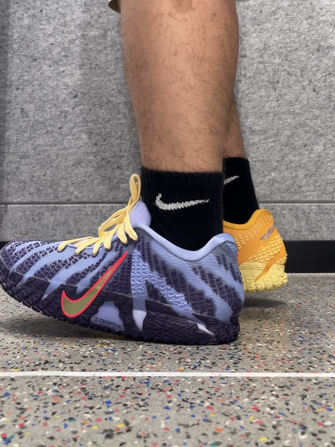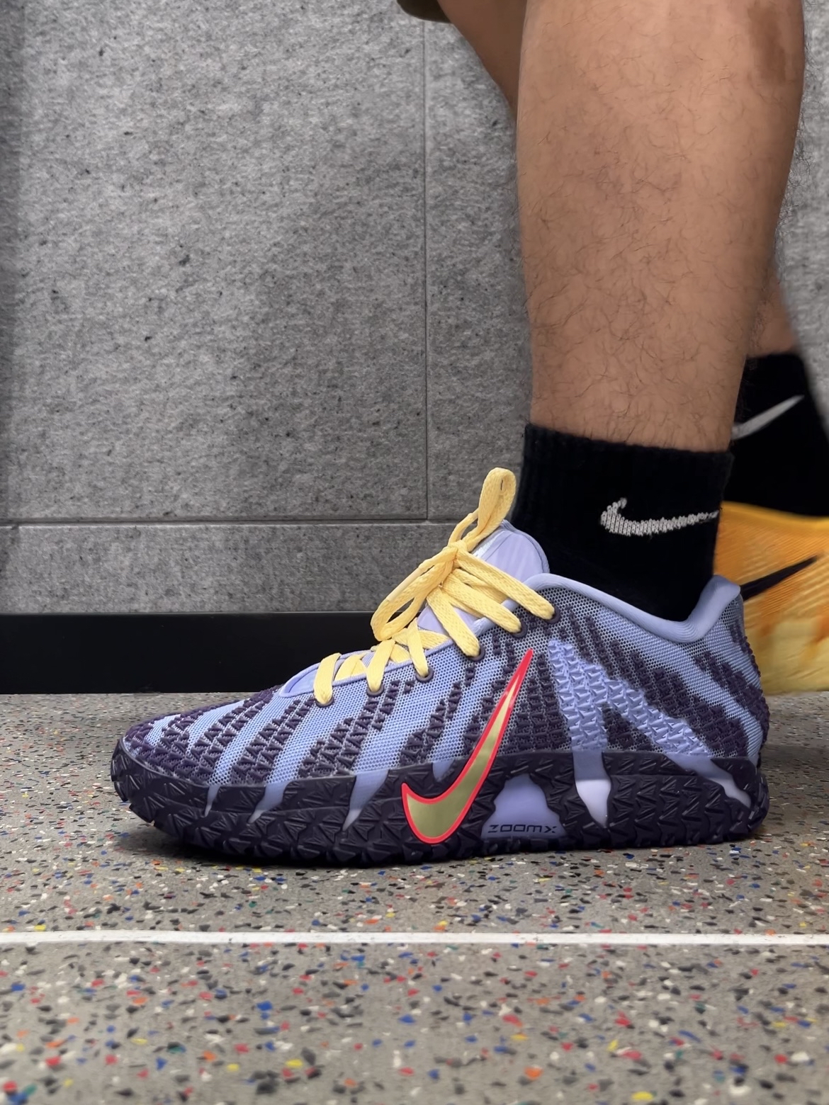 这双JA3近期蛮火的,我也跟着上脚试了试,左脚蓝紫、右脚亮黄的鸳鸯配色,外侧小倒钩辨识度很高 全掌ZoomX脚感韧弹,突破时反馈很明显。鞋面强度够用,鞋舌有点偏短,这双还是XDR橡胶大底 宽脚朋友可能会觉得两侧偏紧,个人感觉重心中规中矩,拇外翻也不明显 适合速度型、爆发力强的后卫,但大体重选手可能会觉得后跟落地不稳,整体算是一双不错的实战鞋,但建议先试穿再入手 #我的人生球鞋 #球鞋真心话...
