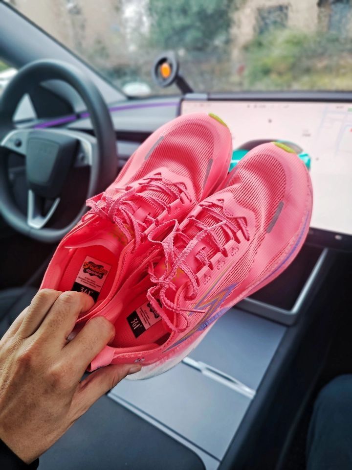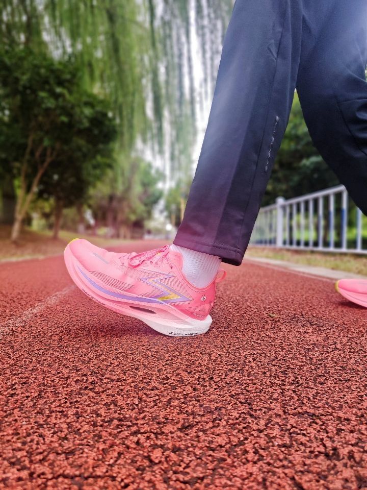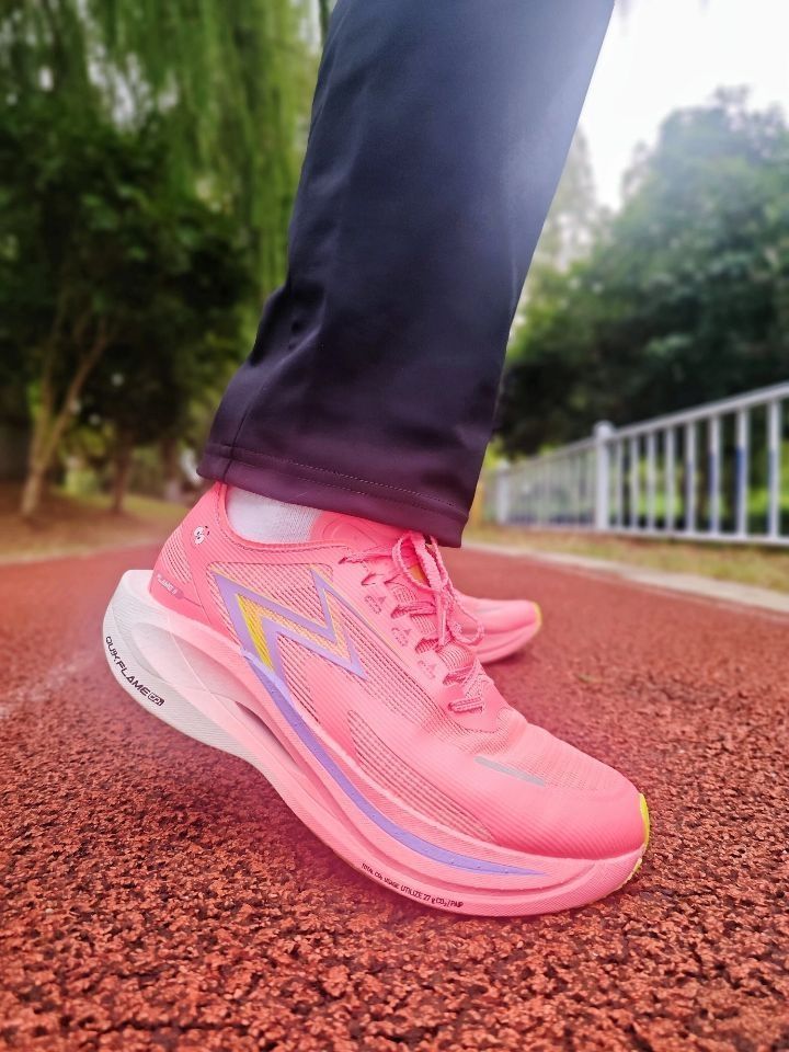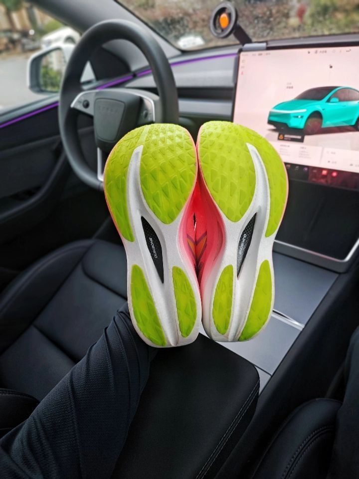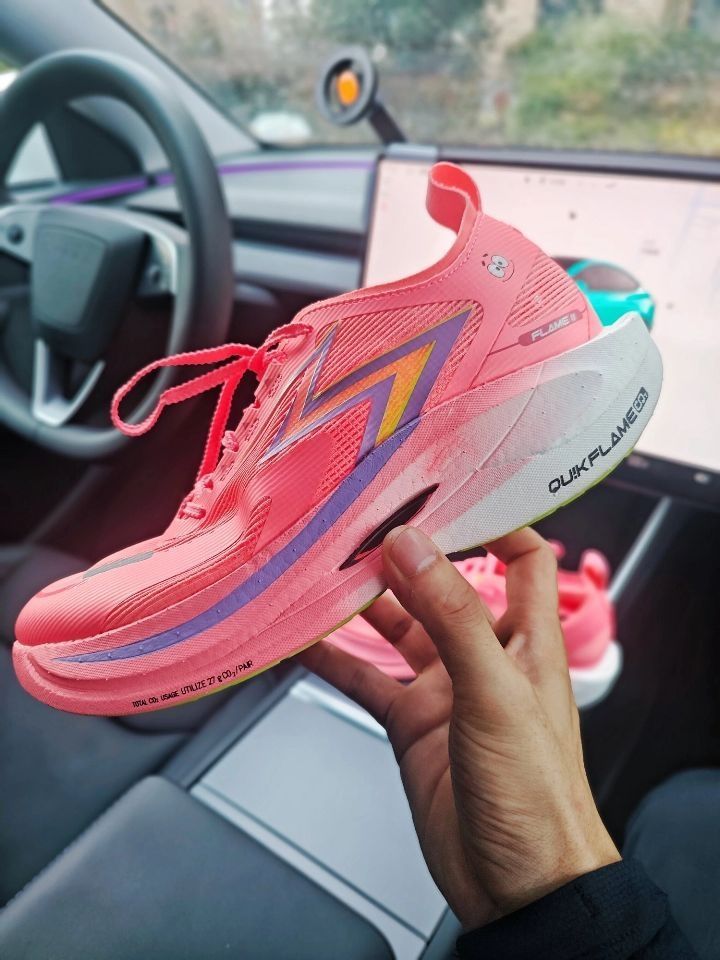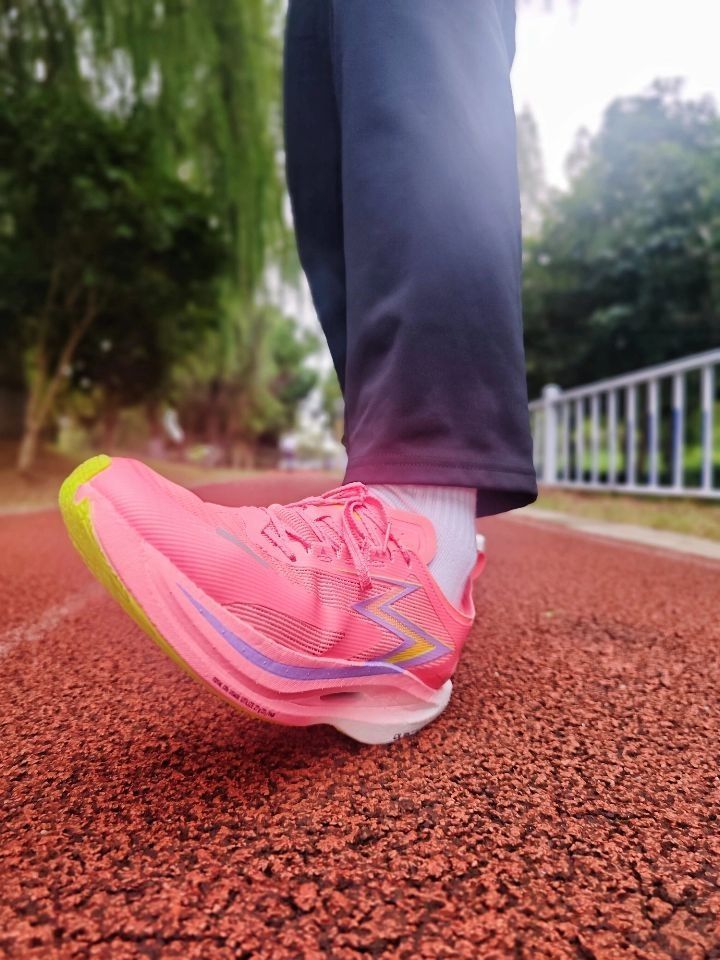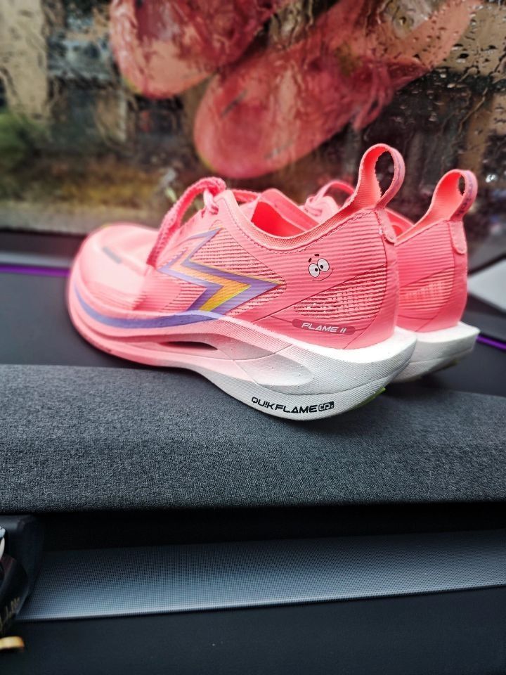 ⚡飞燃2.5派大星确实让我眼前一亮! 这个珊瑚红色真的过分抢眼了 特别是后跟这个闪电印花 简直就是速度感的直接宣言 ⚡重点看实战表现: 碳板的调教我感觉很干脆 我在配速430时能明显感受到推进力 前掌蹬踏时的回弹非常干脆 不是那种傻软,而是带着韧性的弹 ⚡要说缺点的话,也是有的: 后跟泡棉填充偏薄 脚踝包裹性更适合正常足型 宽脚跑者建议试穿 大底CPU防滑模块在湿滑路面表现中等,但耐磨度确实惊...