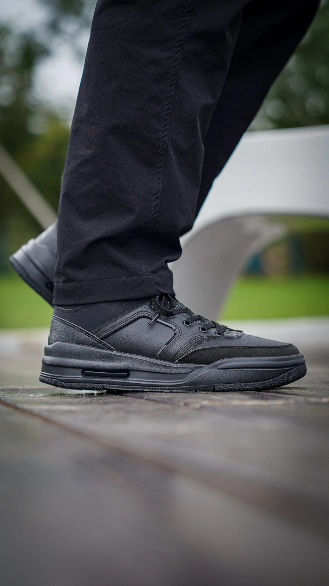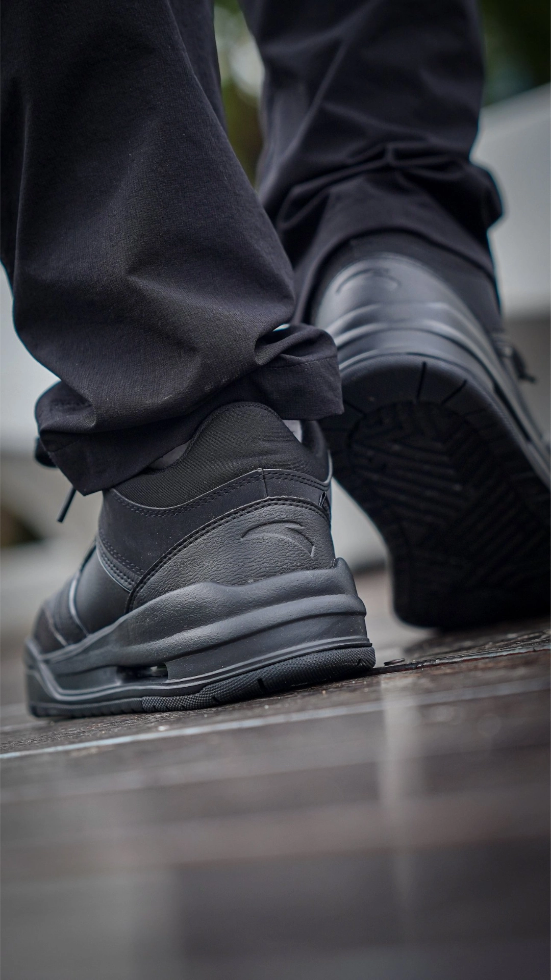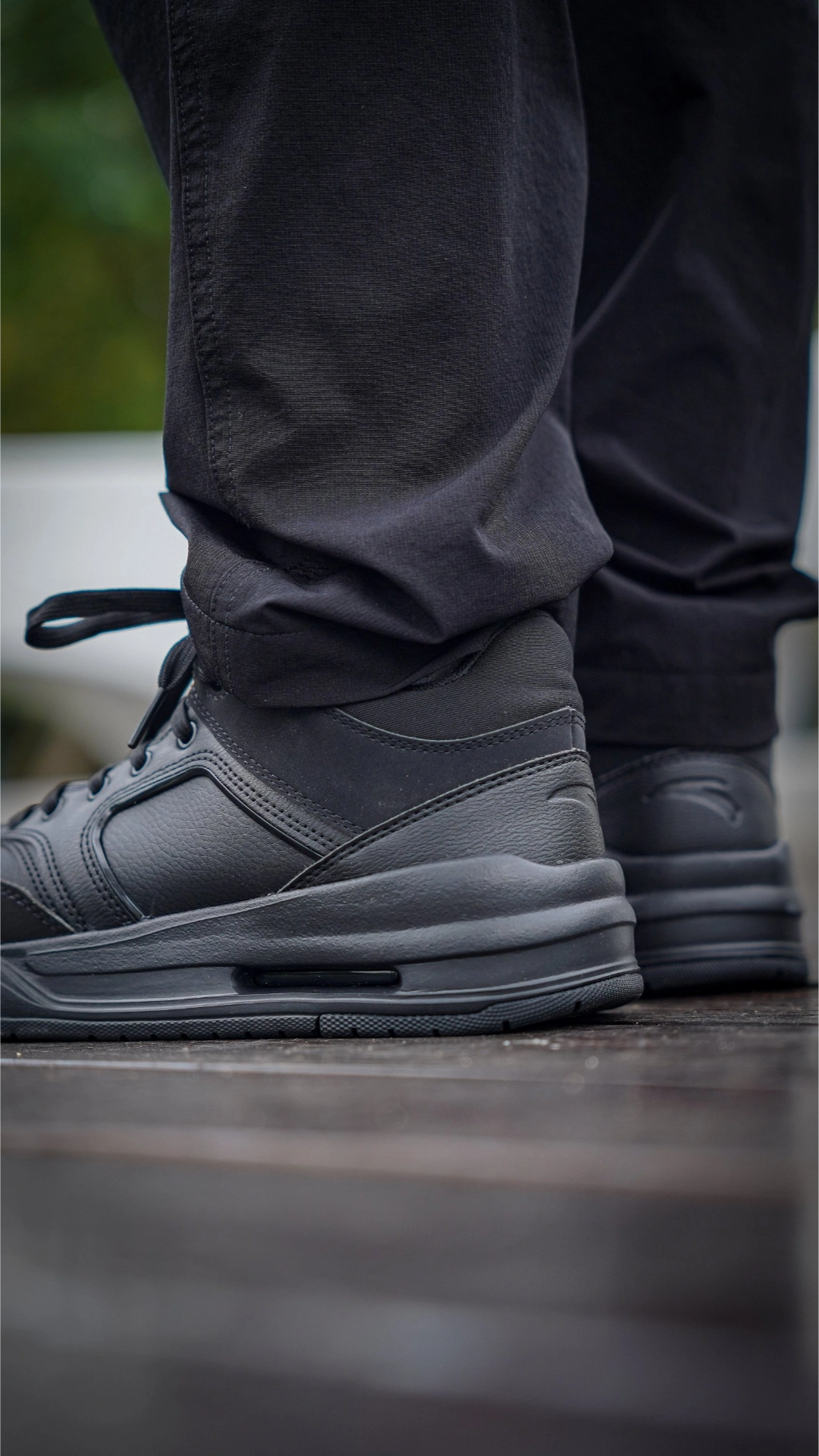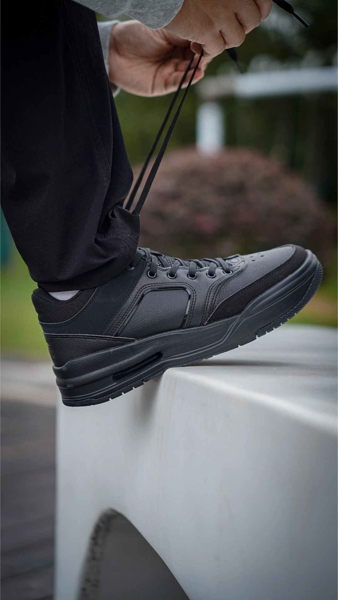 黑武士球鞋应该在你们的鞋柜里总有一席之地吧,这双安踏的SKYSPACE空域复古篮球鞋,我觉得就很适合秋冬,中帮的造型复古味更广更足。 虽然是纯黑,但鞋面不同的材质呈现出一定的层次感,质感也是蛮不错的。后跟还有一块气垫,整体的脚感比较韧,比板鞋更适合日常穿搭,而且有时应急打个养生球局也是OK的。 #我的人生球鞋 #开学季球鞋指南 #降温要换新装备 #潮流复古篮球鞋 #Anta安踏