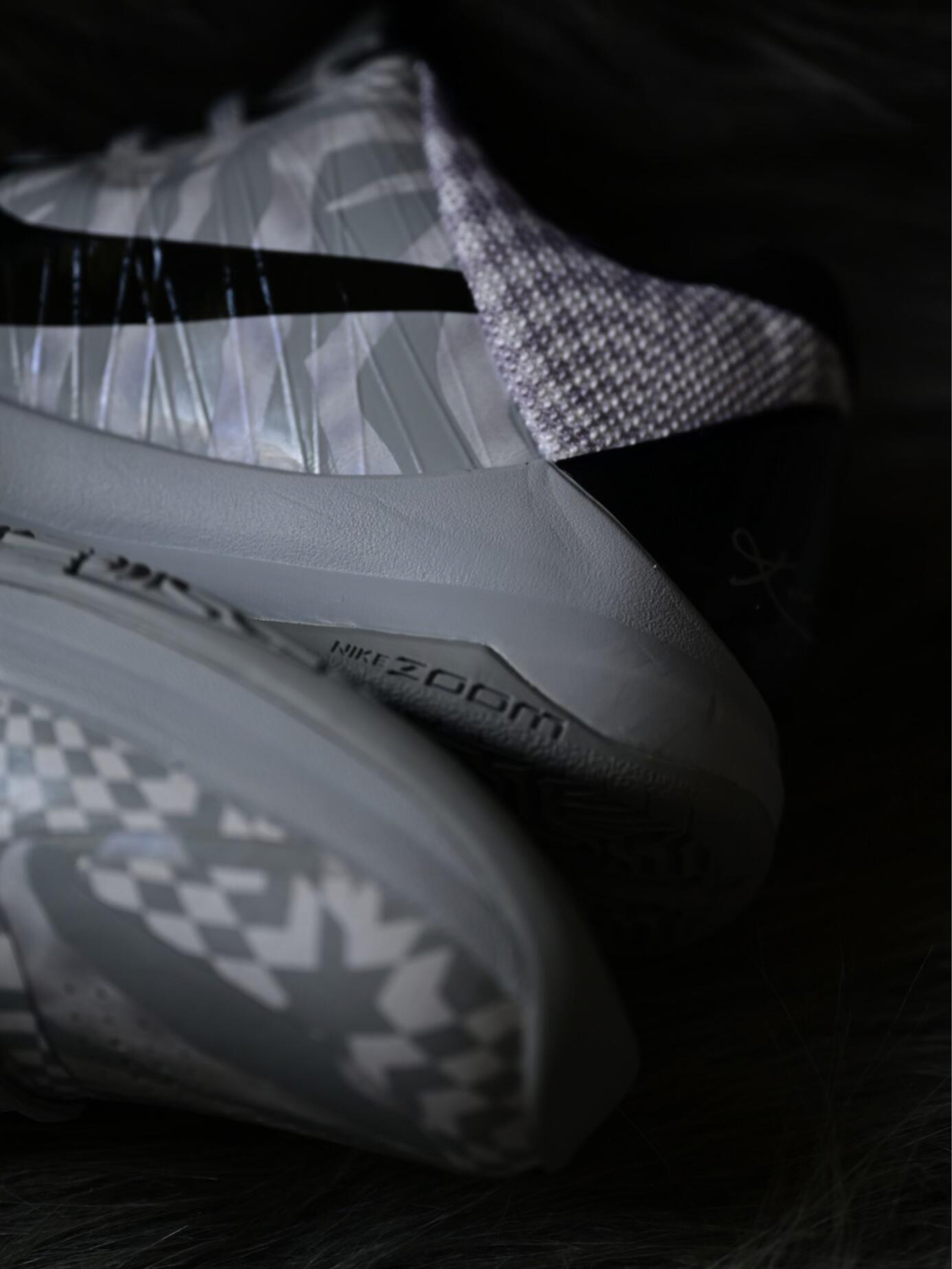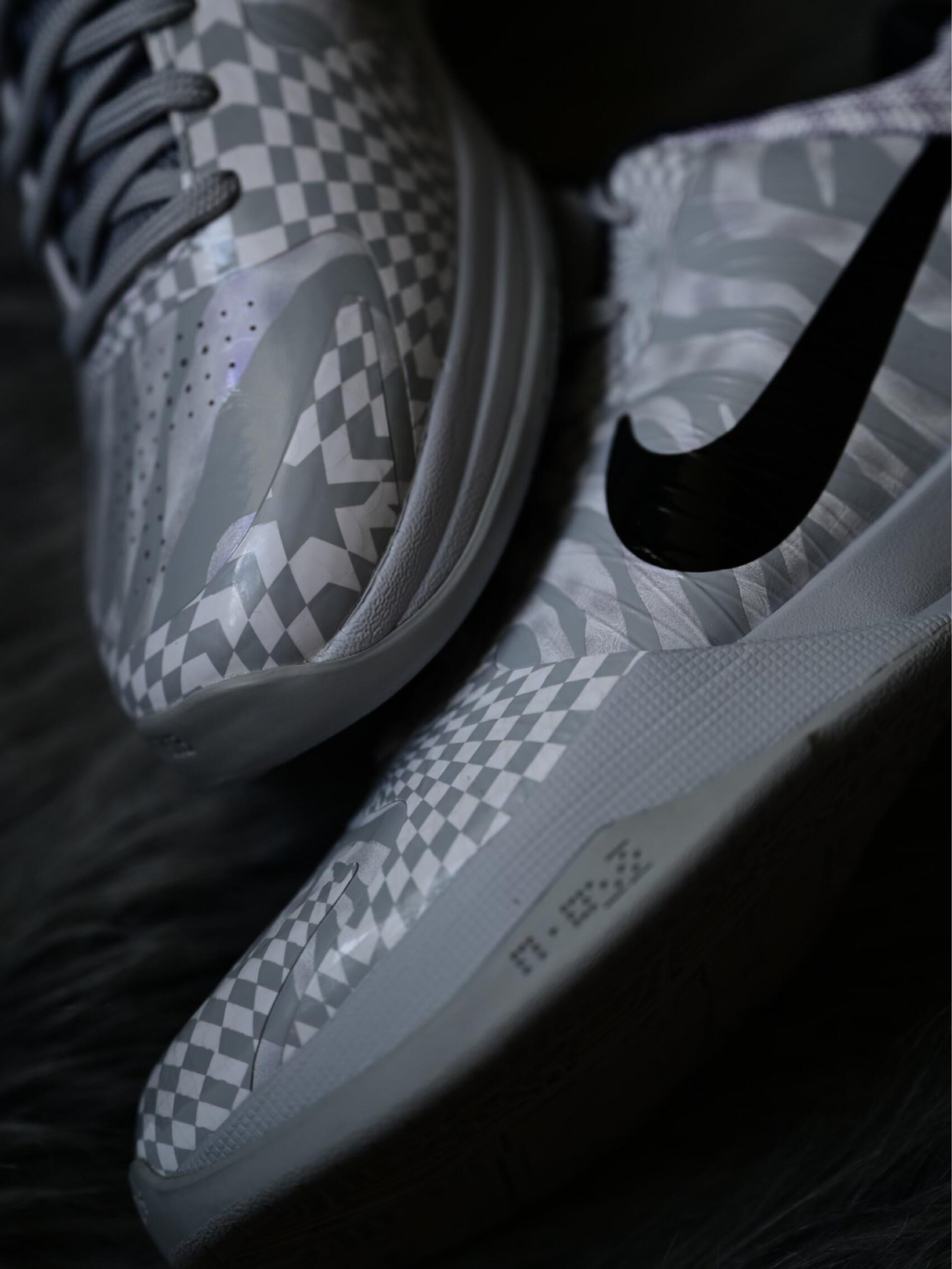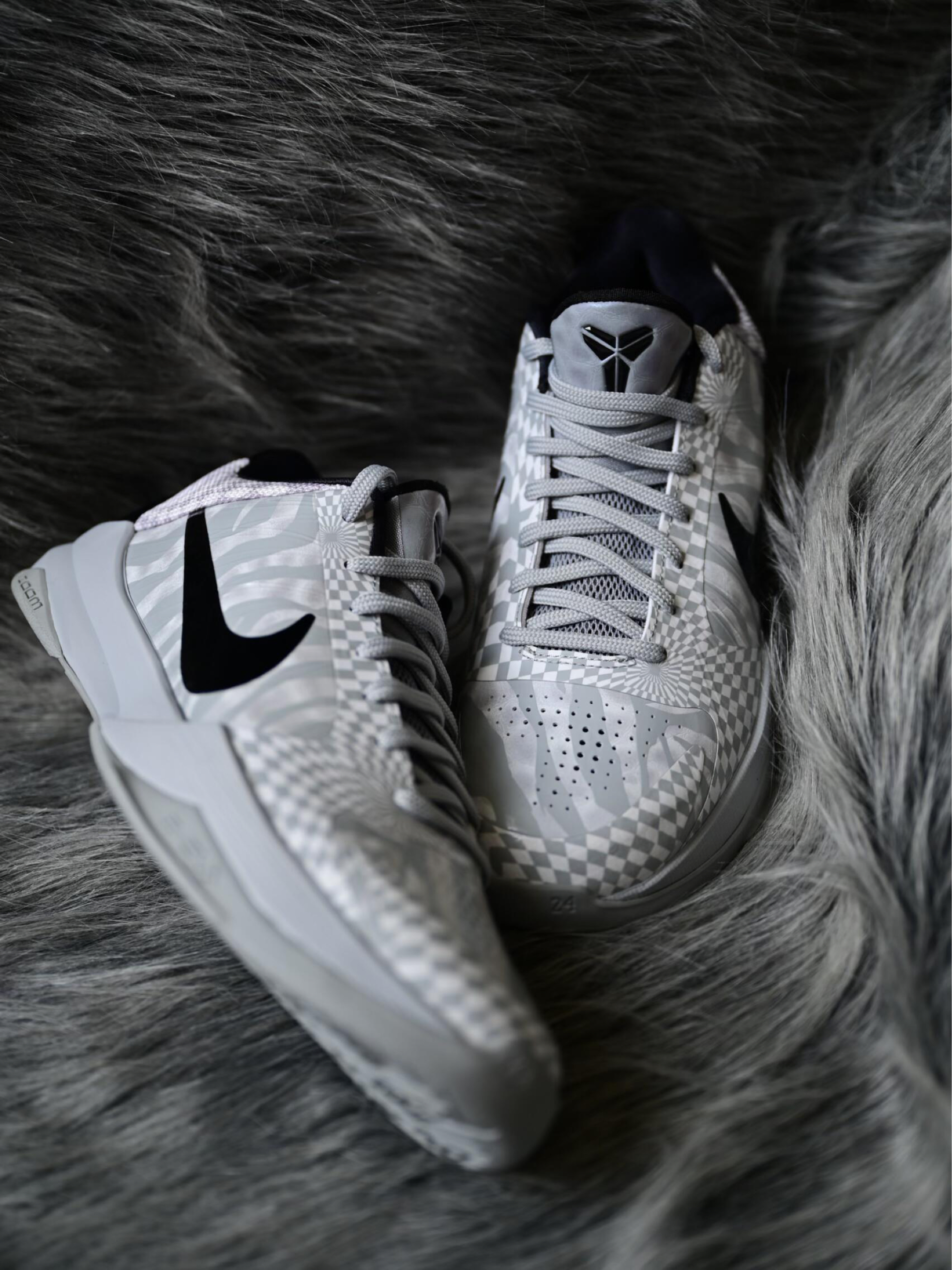 Nike • Kobe 5 Protro • Zebra 发行年份 : 2020-09-18 - DeMar DeRozan 在 2019-2020 赛季起,便时常上脚的一双 Nike Kobe 5 Protro「Zebra」鞋款,此鞋为 Nike 专为其打造的 PE 配色,全鞋呼应其配色主题,运用黑白灰三色遍布鞋面,鞋腰与鞋面其他位置分别透过斑马纹和棋盘格呈现,黑色鞋跟位置附有 Kobe 手...