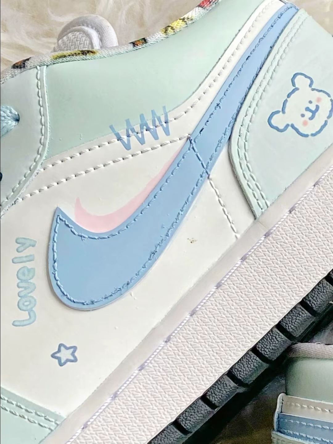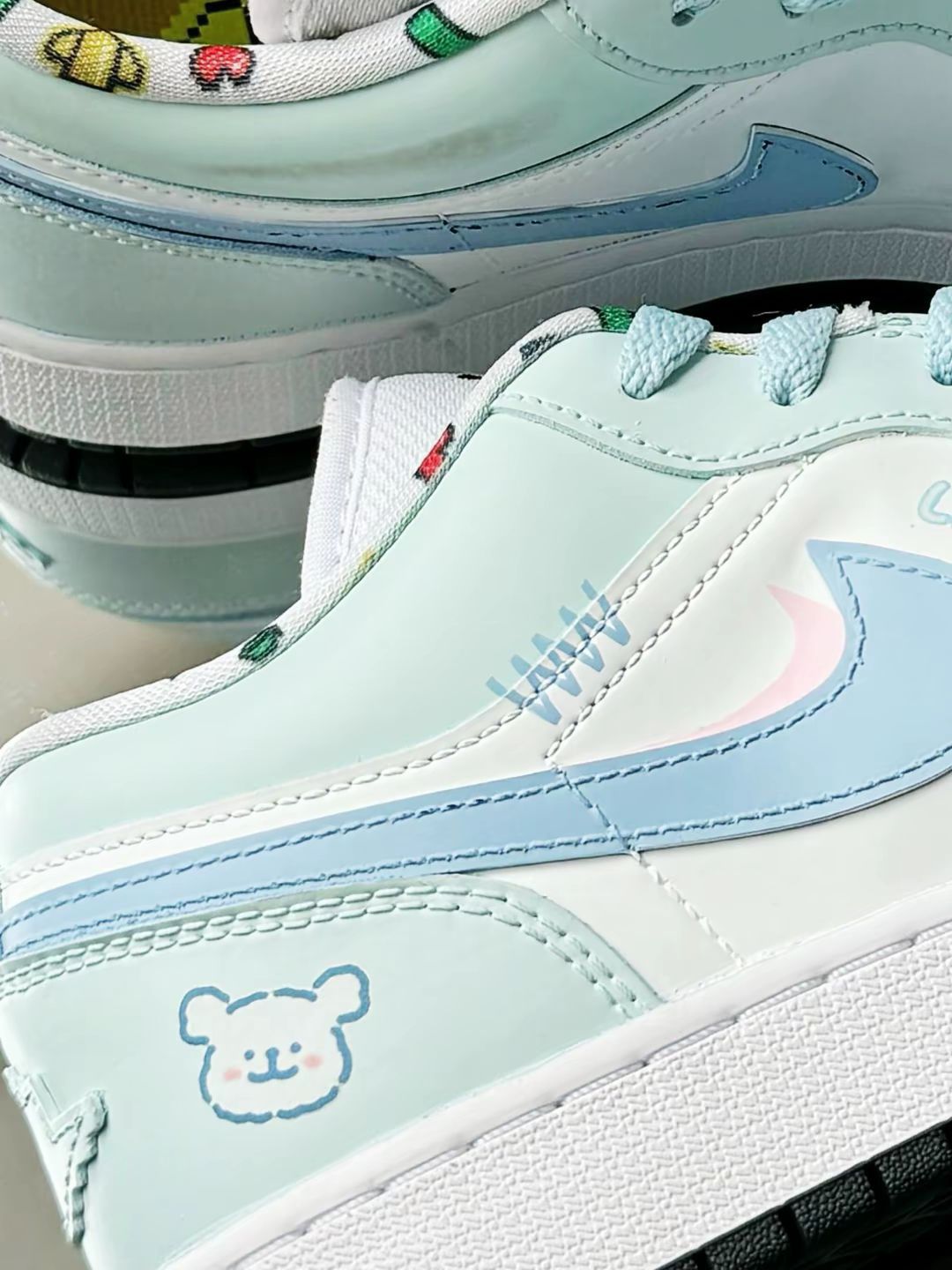 蓝绿色配色真的绝了啊 真的好好看啊 超级有少女感啊 小狗涂鸦也很超级可爱啊 脚感也超级滴舒服