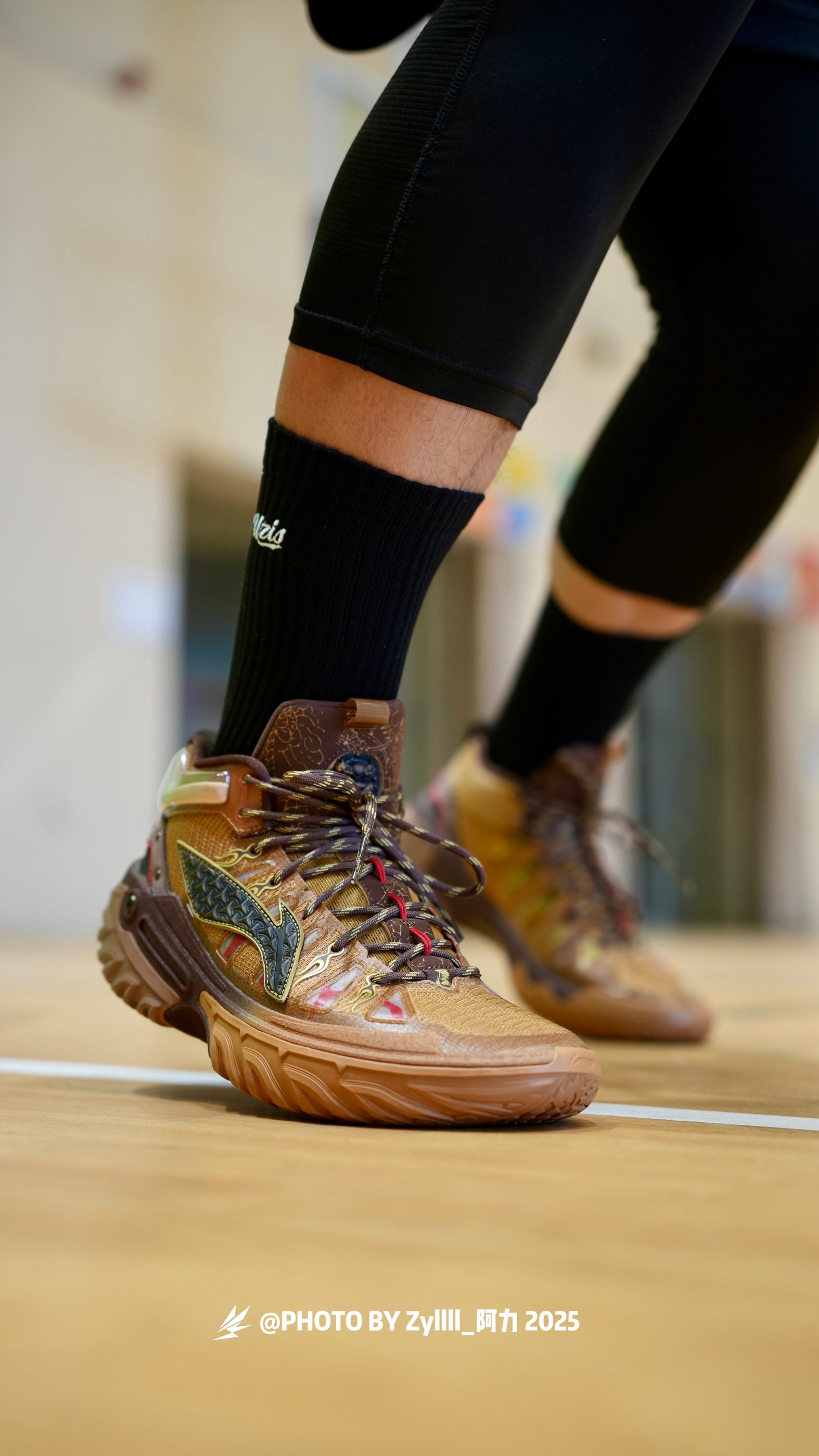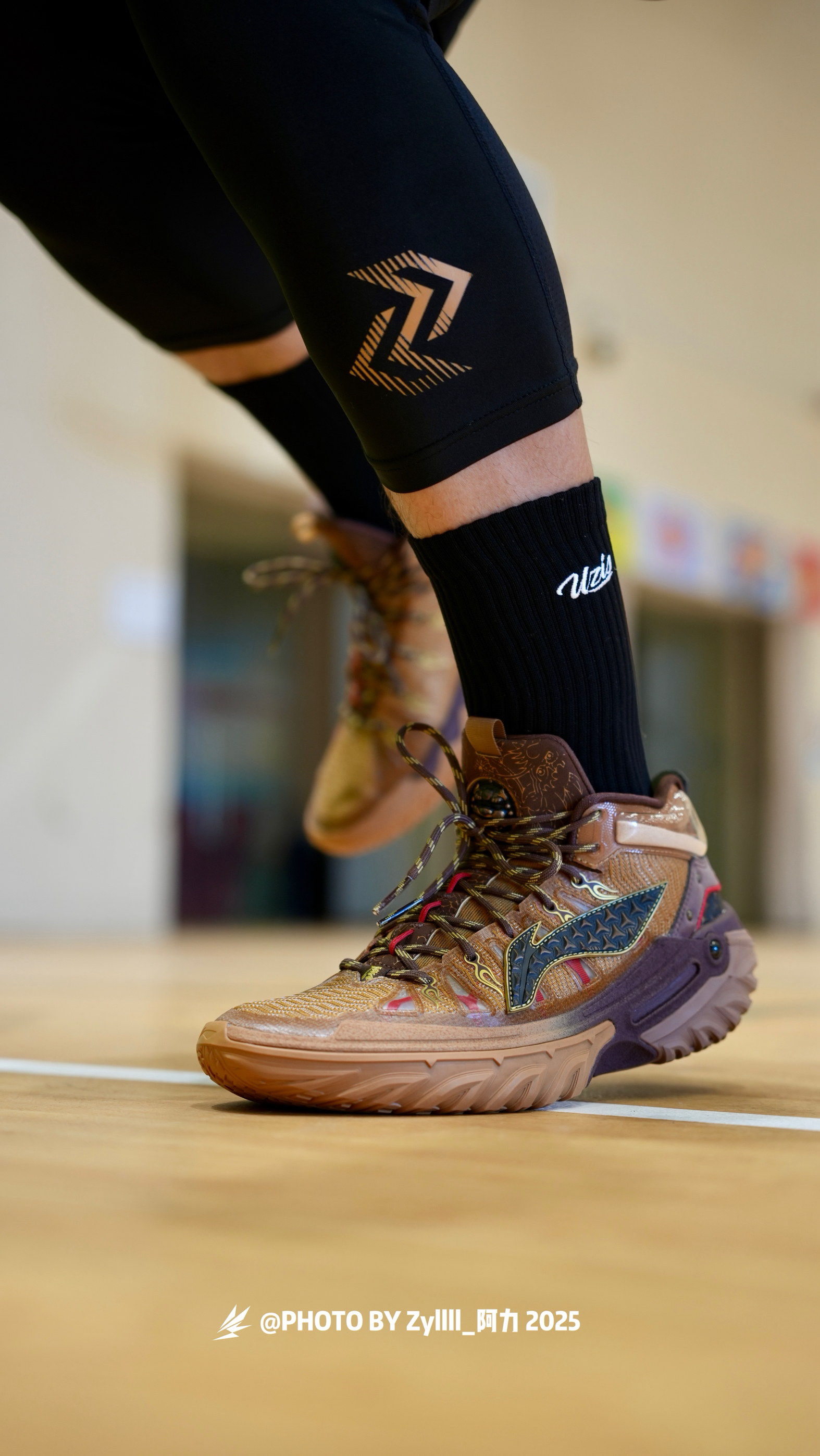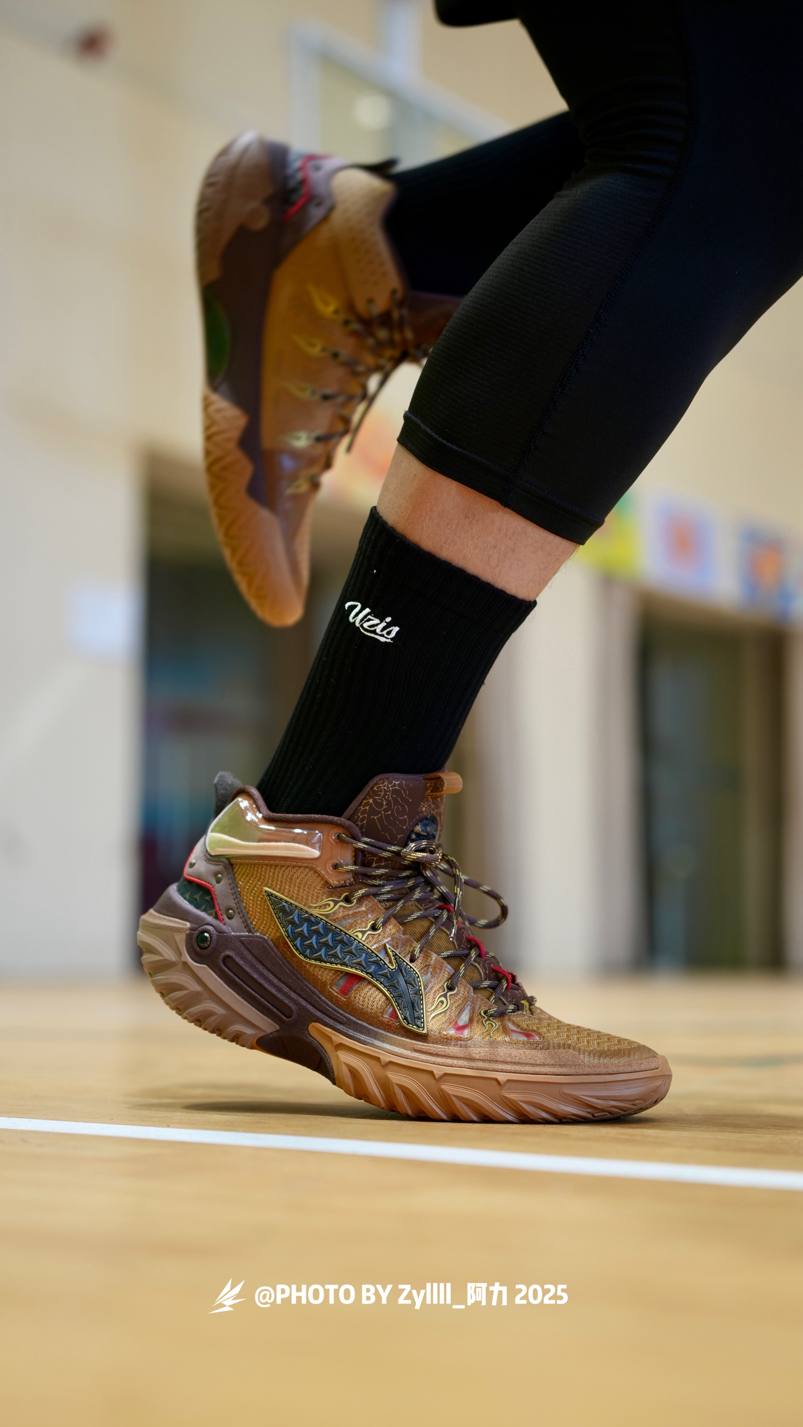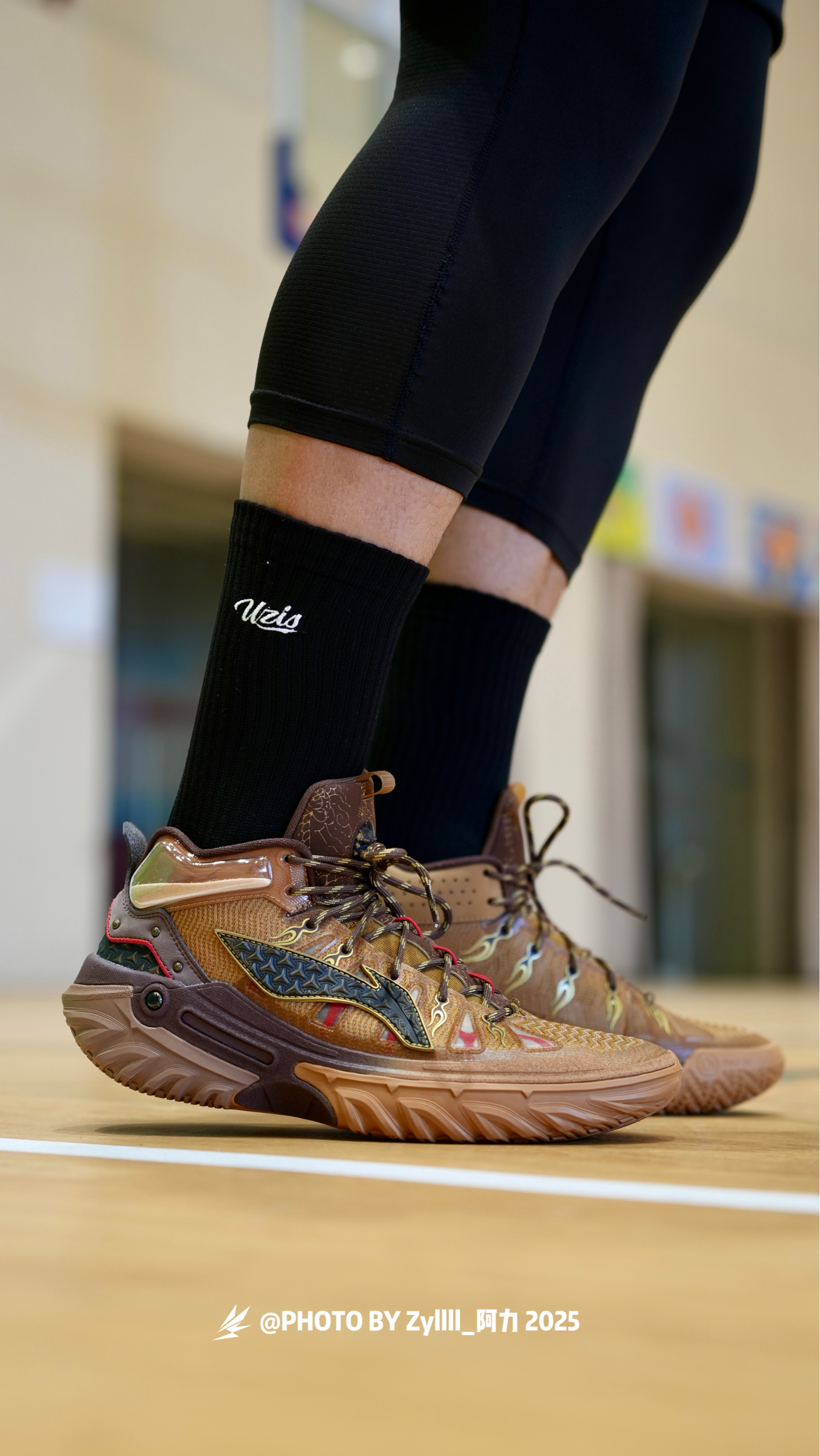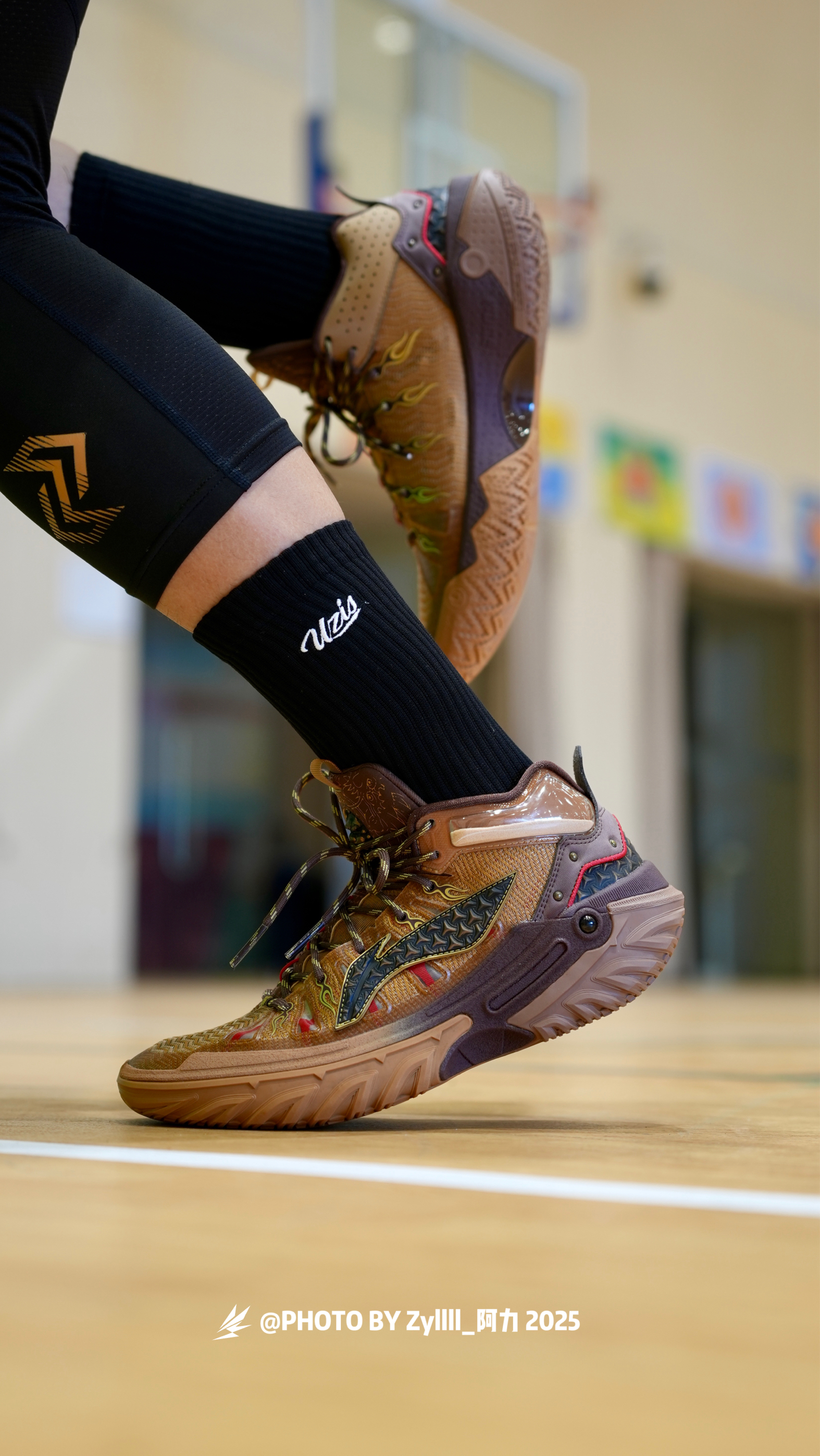一上脚就给人十分硬朗的感觉 李宁 桀骜 2 High 玄光配色 主要是以铠甲武士的理念为灵感 外场鞋耐磨和防滑真的不用担心 我上脚之后也是实战了,根本不用担心它的性能 全掌的䨻中底也是十分软弹,对于我这种大体重后卫也是很友好 假期的比赛看来是要穿它上场啦