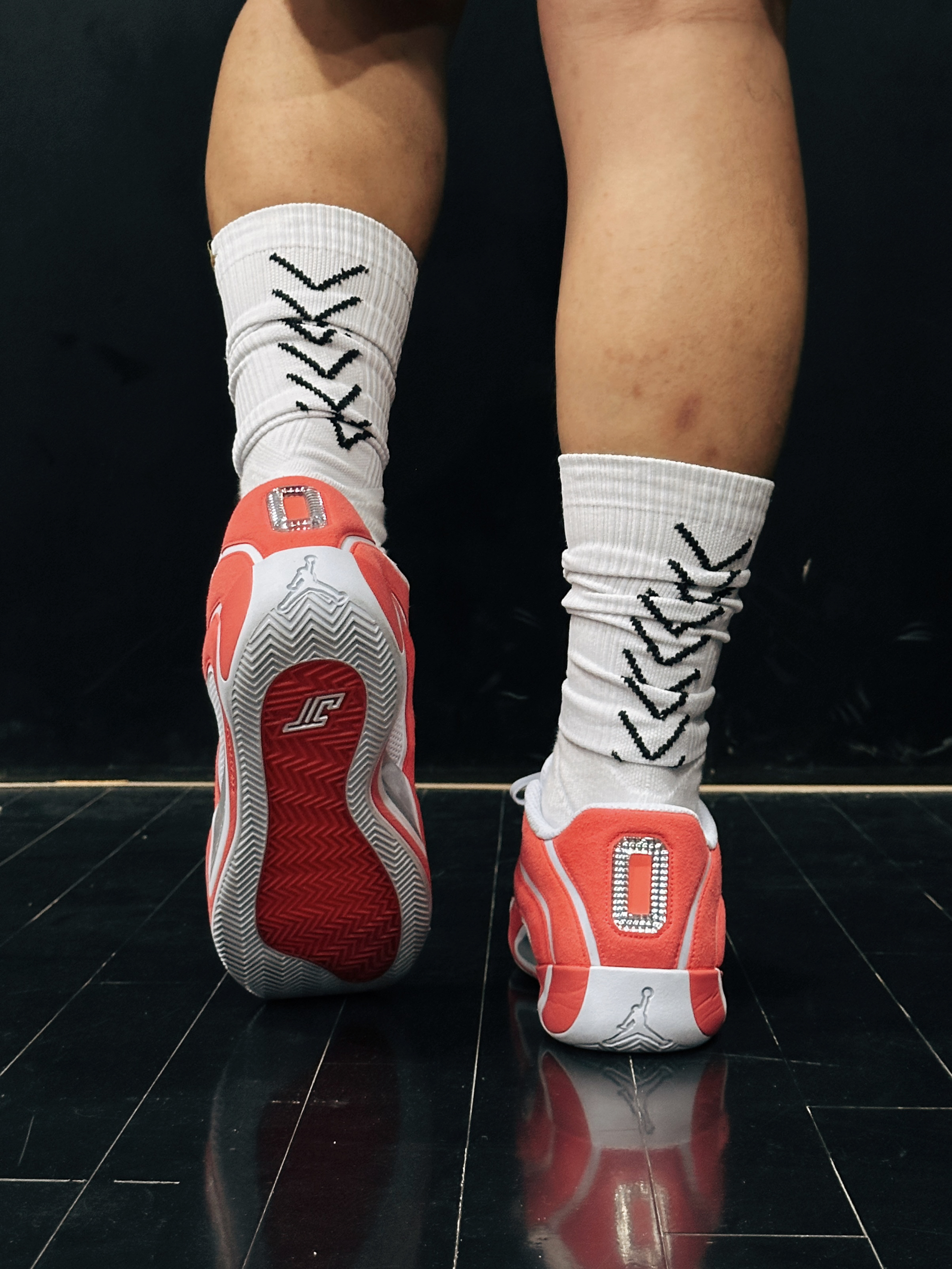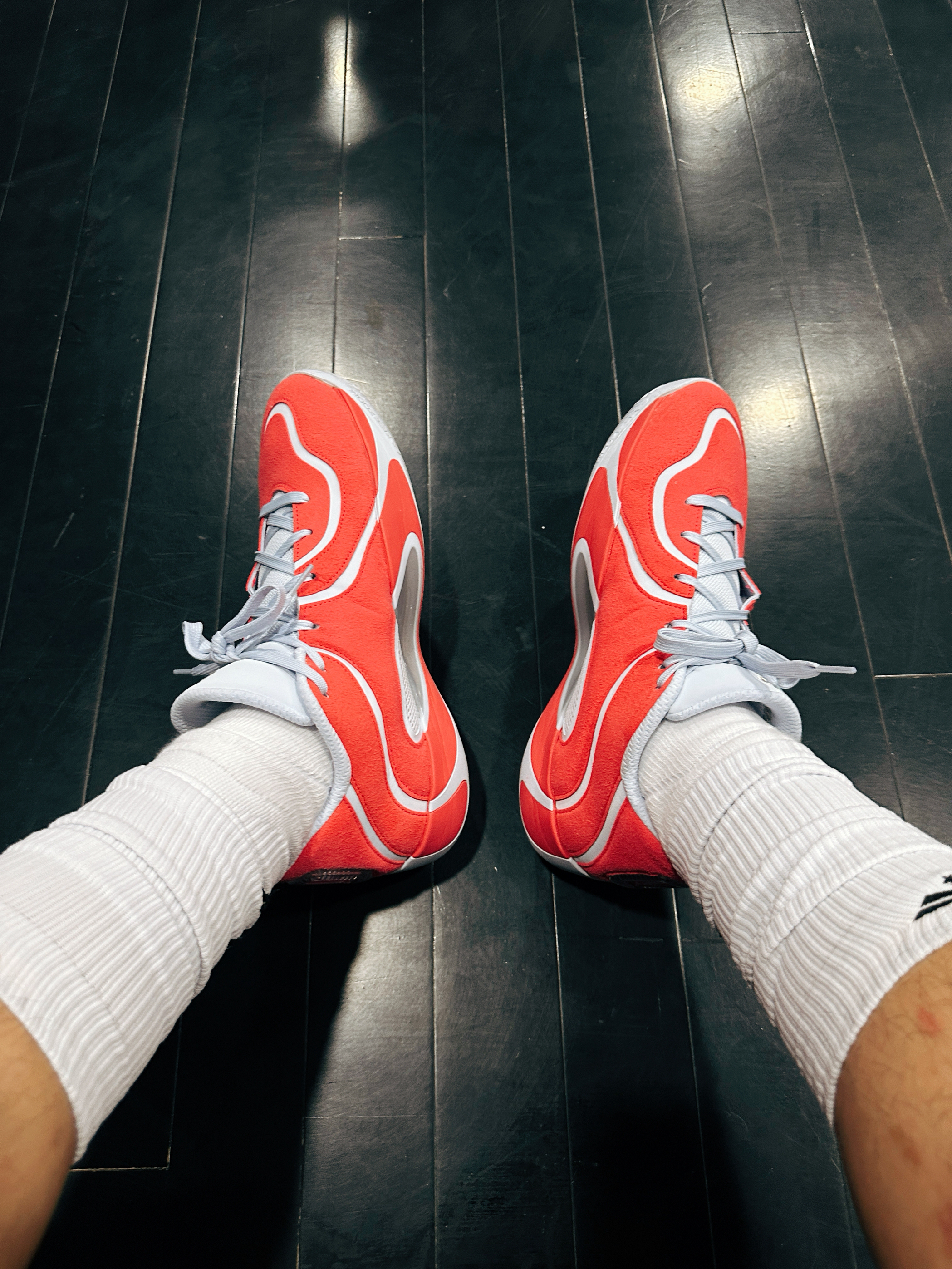 从有问题到能穿再到好穿,塔图姆的签名鞋经历了4代! 上脚以后尺码正常不偏码,鞋楦做的和上一代一摸一样,几乎没有太大的变化,那就是前宽后窄的类型,高度合理,所以脚型适配程度还是很广泛的,只要你上一代能穿,这一代就没问题,总之正码正选不偏码! 静态穿着的时候呈现出比较平缓的重心感受,前掌的气垫很明显但又不是向上凸起的状态,所以不会觉得前高后低,整体的厚度适中,不高也不低,没有驾驭门槛不用磨合...