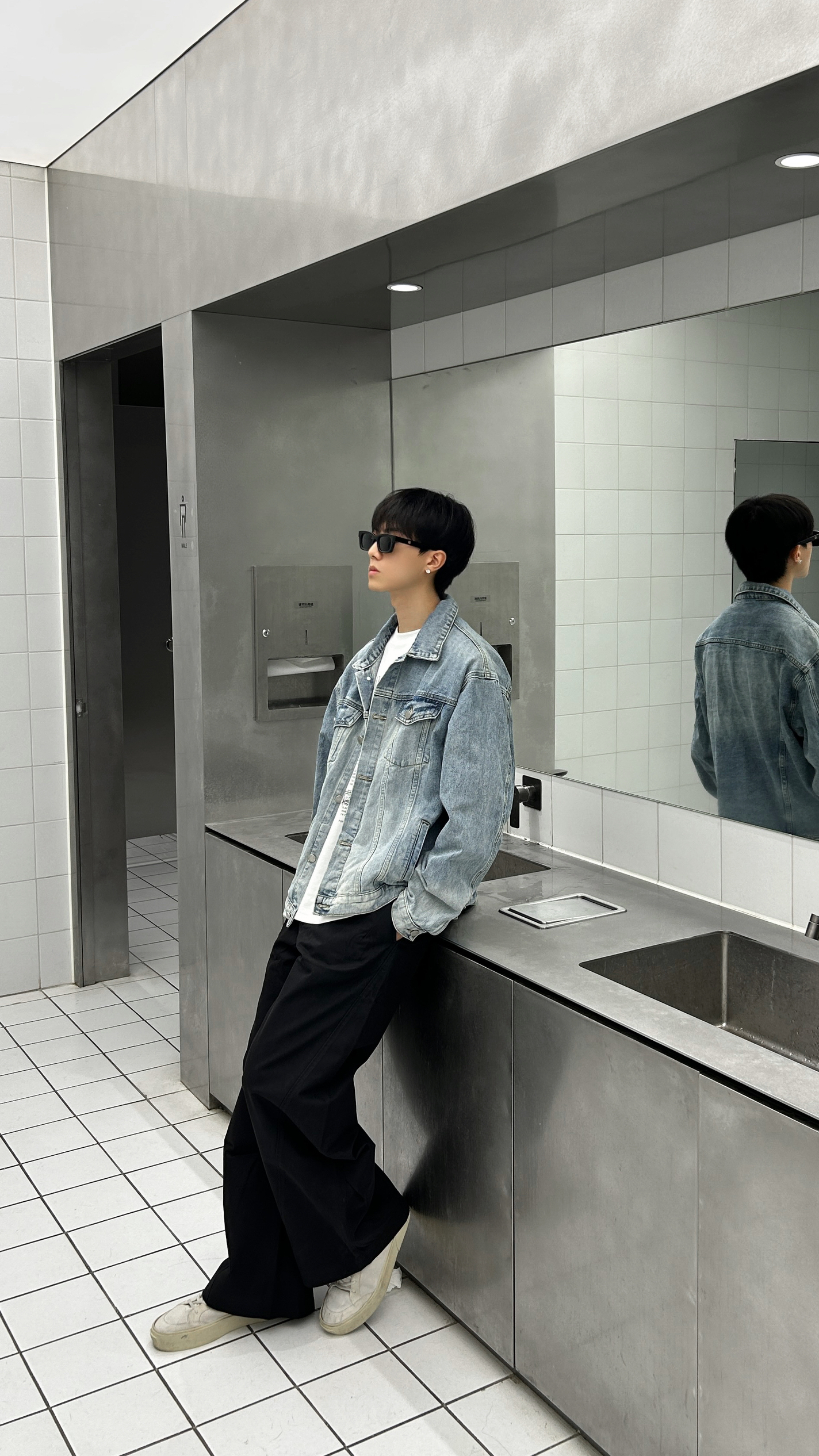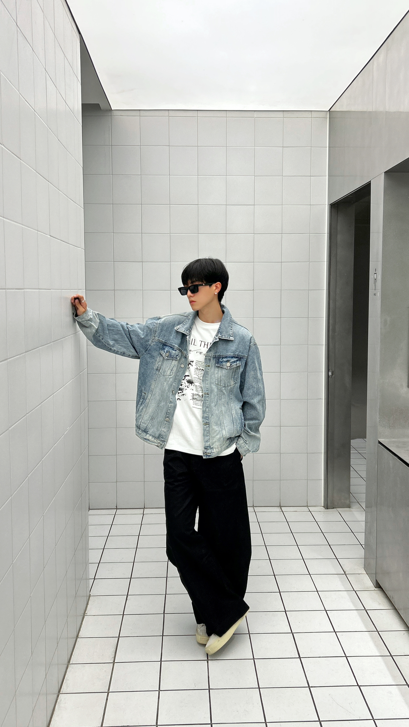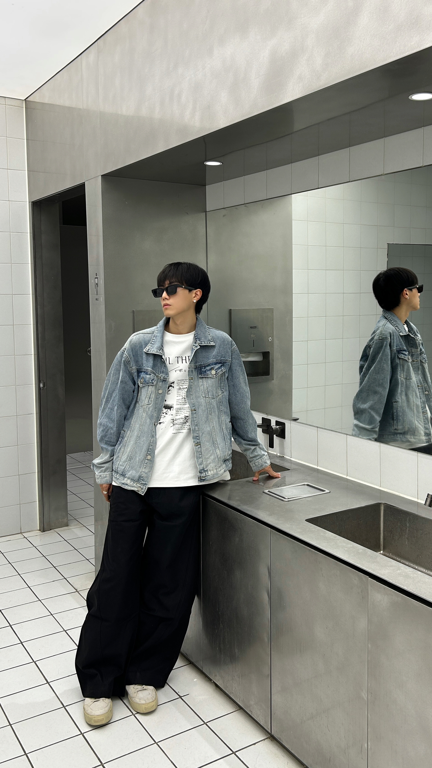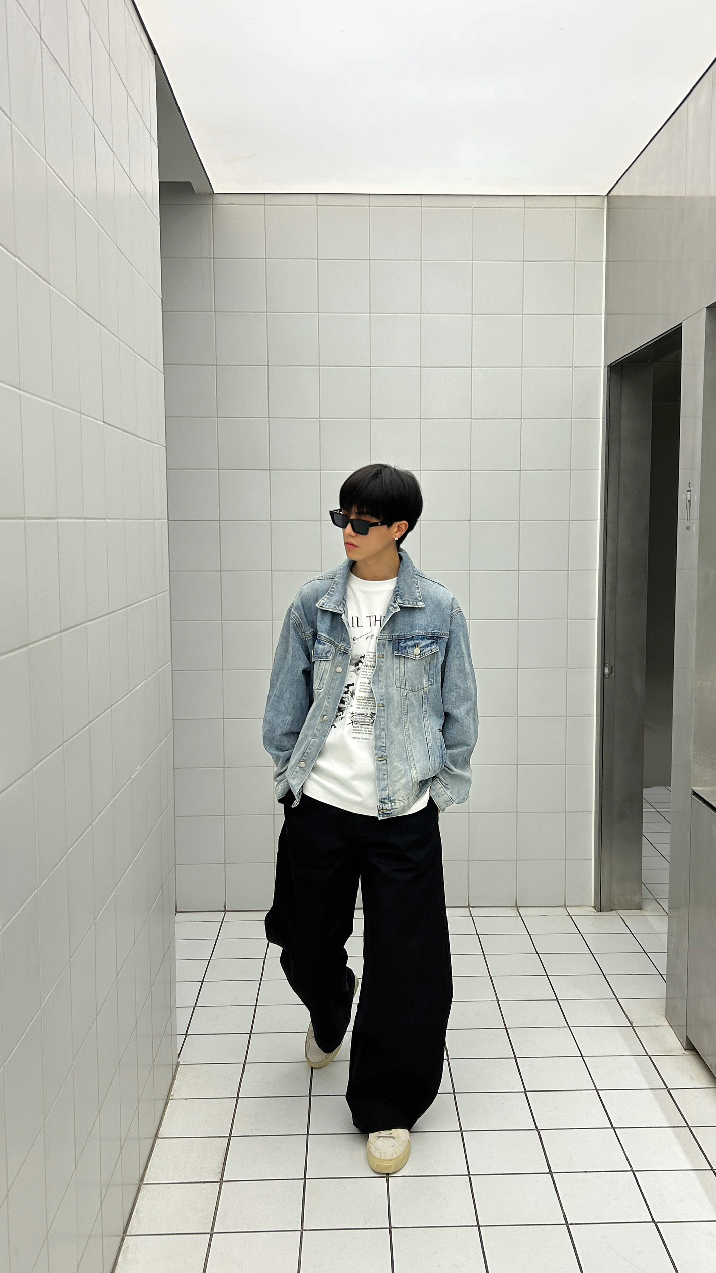 分享今天的搭配小思路 今天的ootd是牛仔衣搭配弯刀休闲裤 牛仔衣不用多说刚好适合这个季节 亮点在于我的下半身搭配 用它做了一个廓形穿搭 在视觉上可以起到一个上窄下宽的效果 整体上看起来更有层次感和造型感 十分挺括但又不至于泰硬 所以穿起来还是蛮舒服的 今天的街头氛围感你get到了吗