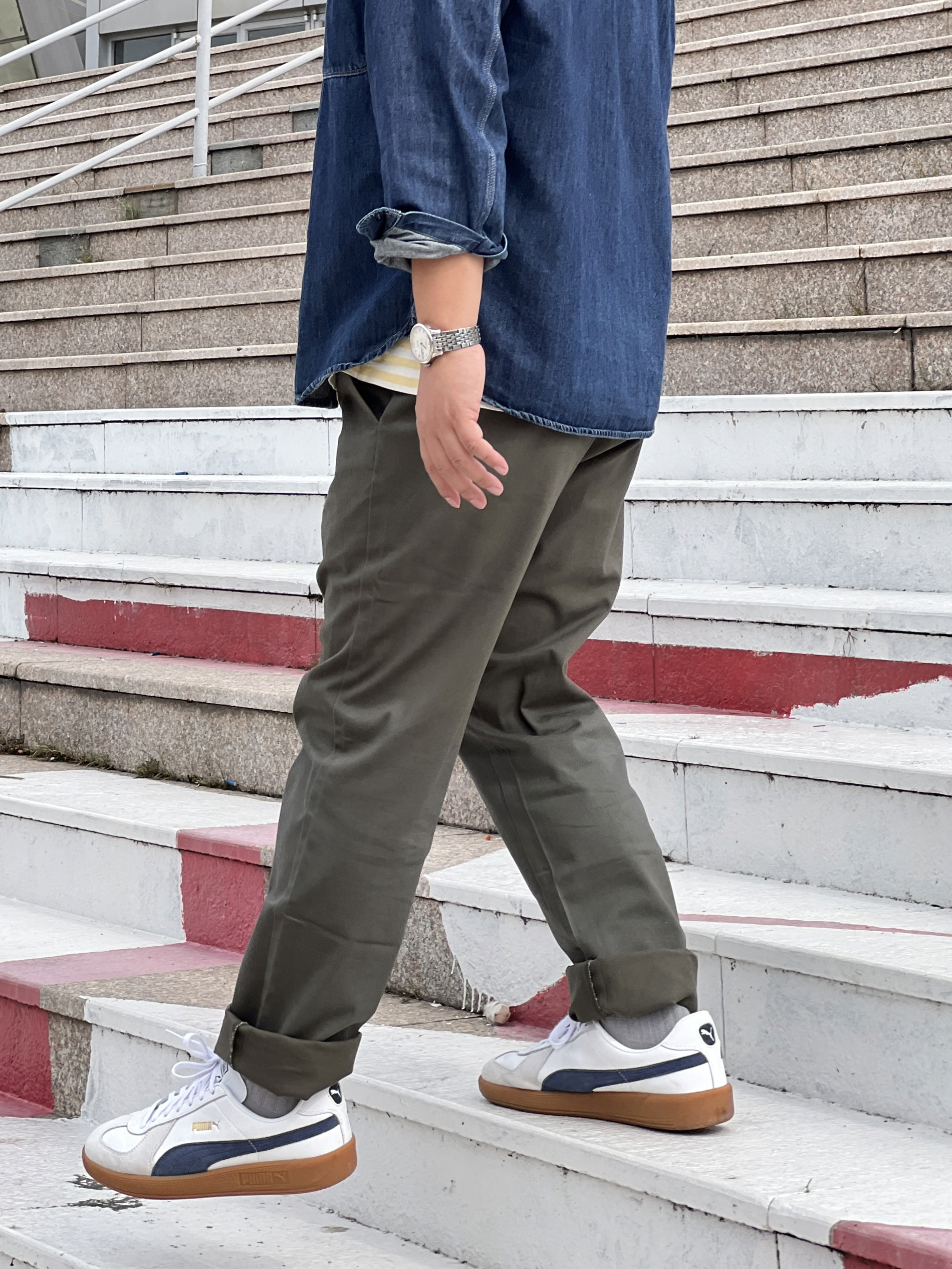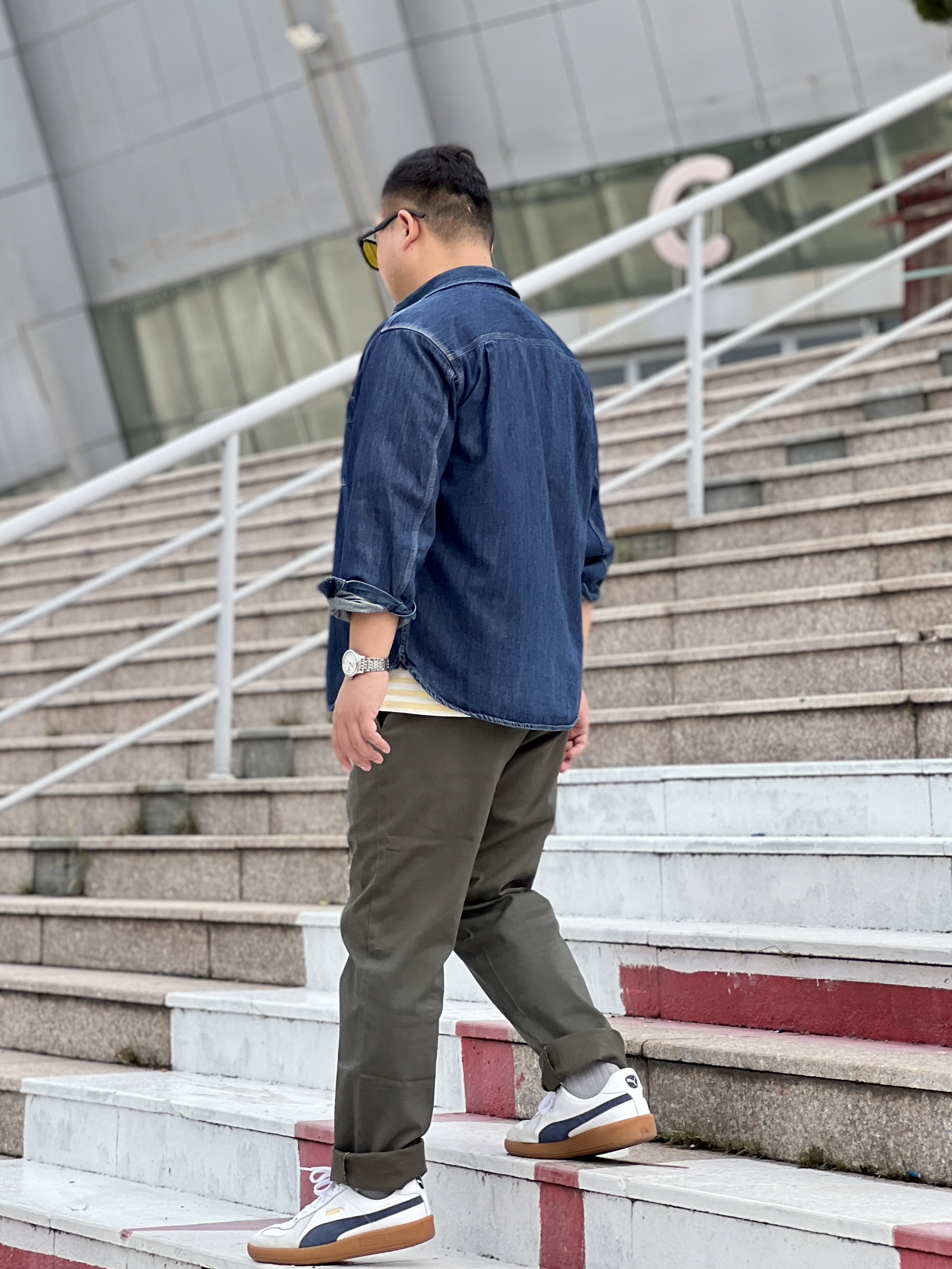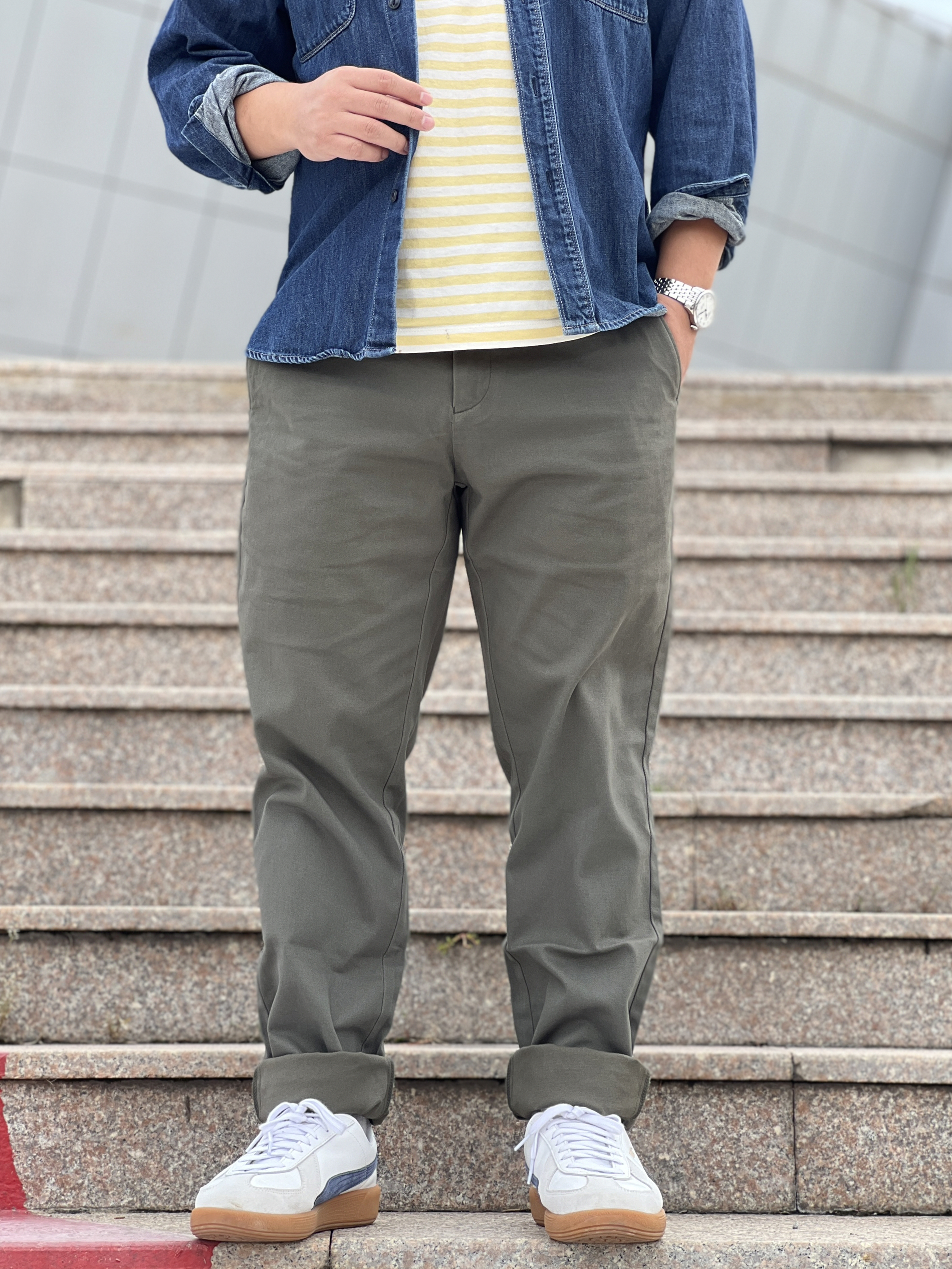 这条裤子颜色蛮特别的🐎 微弹面料,贴身穿很舒服 我选的是经典直筒裤裤型显腿直、显腿瘦 拉链很顺滑🔗 搭衬衣、小白鞋👟整个人看起来都干净又利落 可搭休闲也可搭配商务 日常穿、通勤穿都适配✅ 我身高170cm,体重74kg,这条裤子选得175/84A,我觉得舒适又得体。
