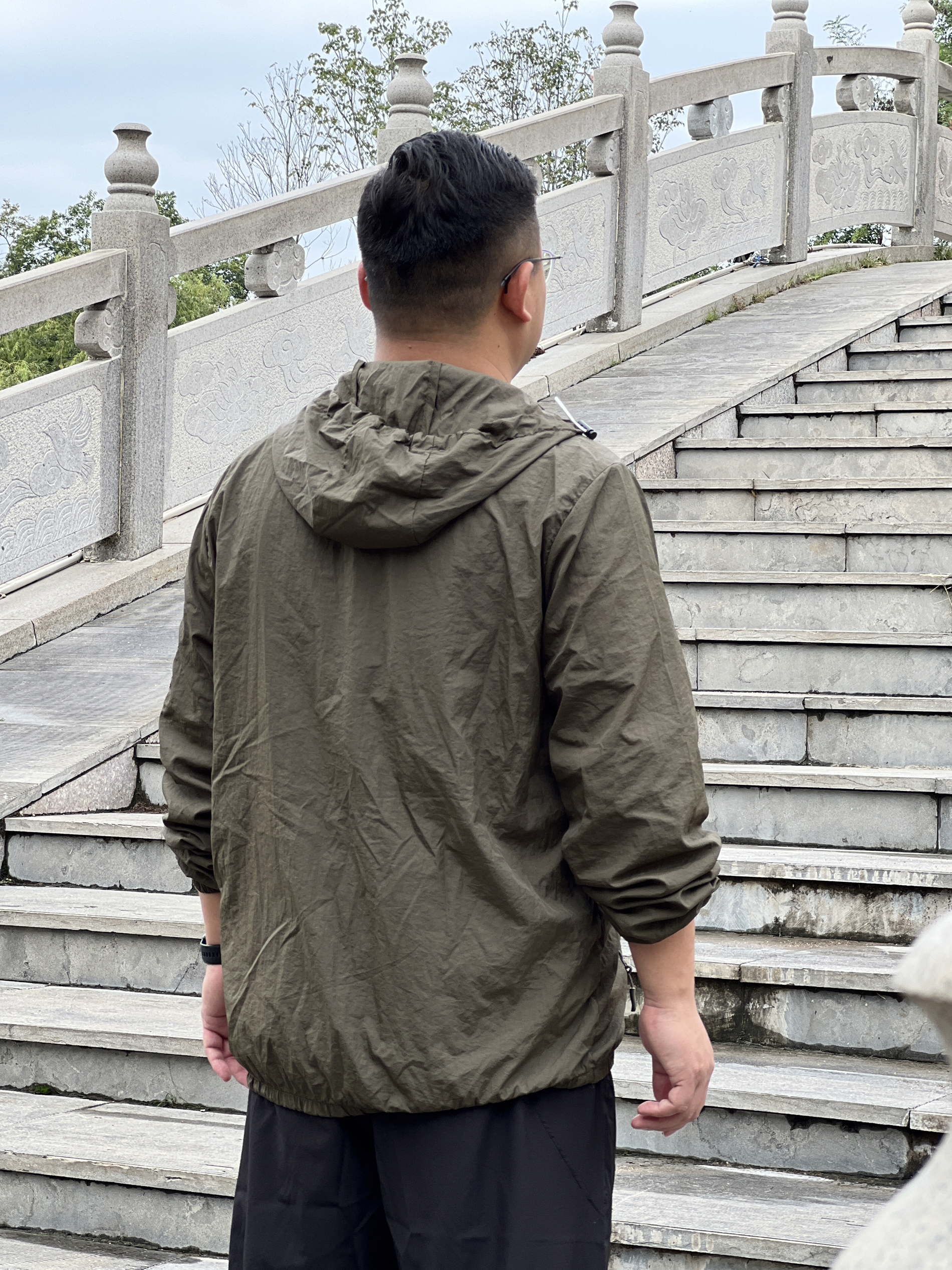 出门运动穿这件梭织夹克🏃🏻好方便~ 上身🫧轻盈,几乎无感 手臂上有口袋设计,帽子有抽拉扣 整体很🕺🏻有型 我身高170cm,体重74kg,上身XL码,对我来说蛮合身的 收纳起来不占地方🎒,带着出去玩也很方便。