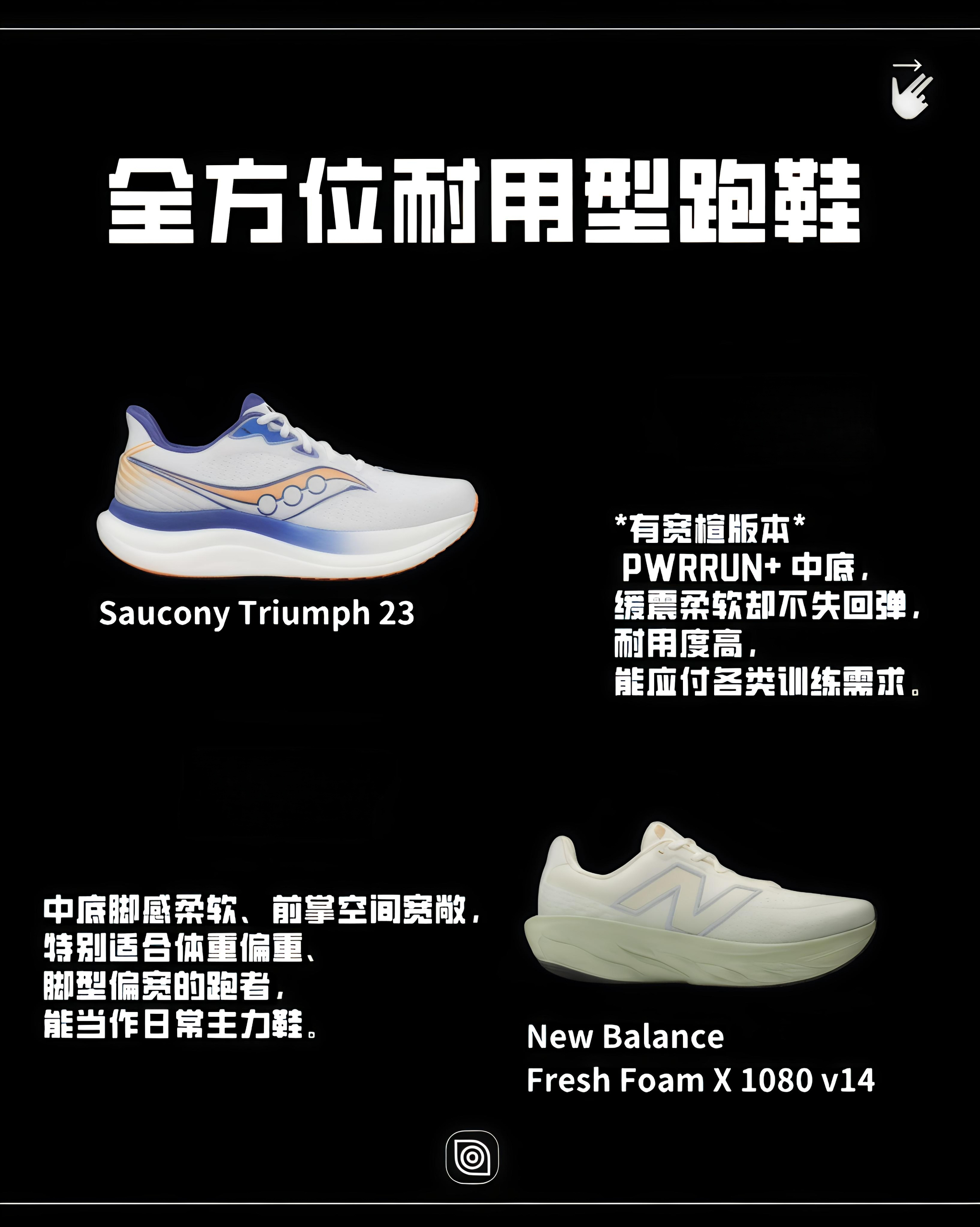 最近发了一些关于跑鞋的视频,然后就收到一些朋友的留言,让我推荐一些适合大体重以及宽脚,高脚背跑友的跑鞋。 今天就整理出了(注意!只代表我个人想法,大家就当个参考就行),我们按照使用情境分为练习鞋(训练鞋)、全方位耐用鞋、比赛鞋、宽楦鞋四大类,希望可以给你一个参考,助你找到最适合的跑鞋。 日常慢跑/长距离练习跑鞋 (图二)大体重跑者如何选择练习鞋或者说训练鞋?因为对大体重跑者的日常练习来说,他们...