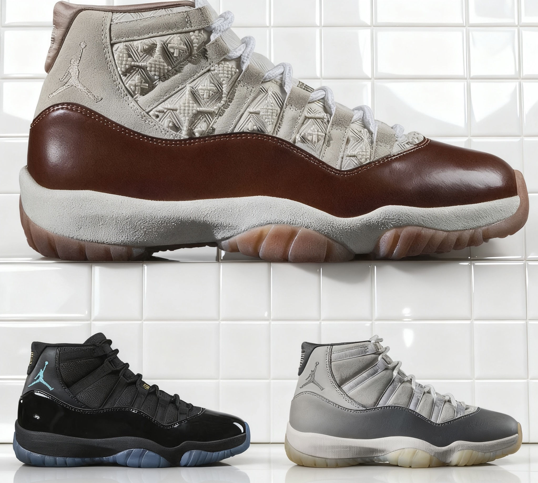 设计传承与经典元素 Air Jordan 11 是乔丹品牌的标志性鞋型之一,三十周年款完整保留了系列核心设计语言: • 标志性漆皮材质覆盖鞋身关键区域,兼具光泽感与辨识度,是AJ11的“视觉名片”; • 后跟经典Jumpman Logo(飞人标识),传承乔丹系列的运动基因; • 鞋侧贯穿的碳纤维抗扭板,以标志性的黑色纹理呈现,既是设计亮点,也是性能核心。 材质与工艺升级 三十周年...