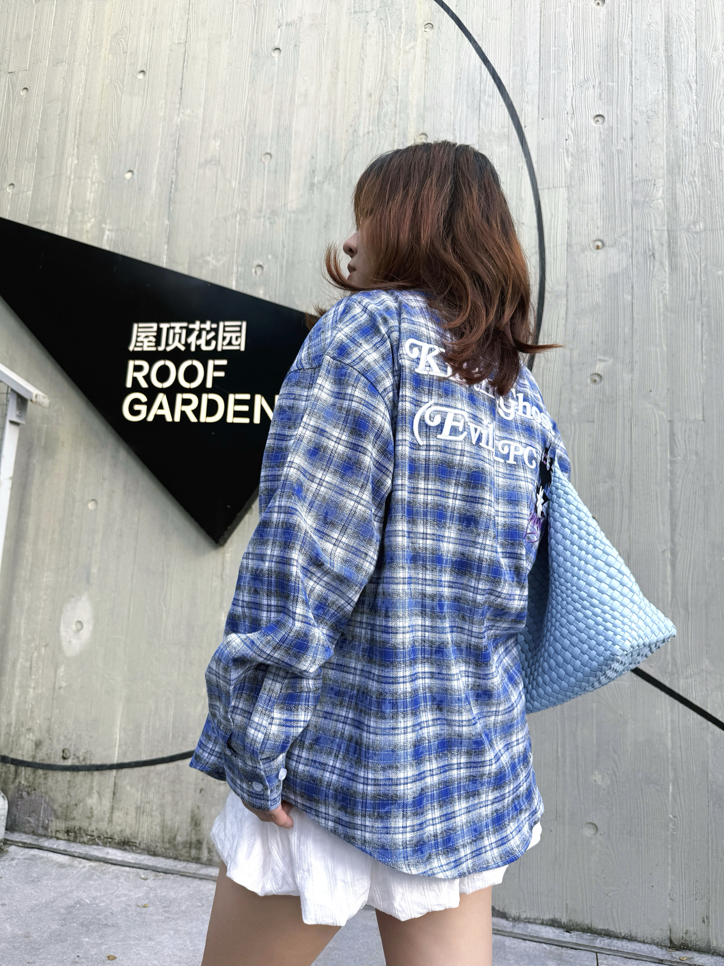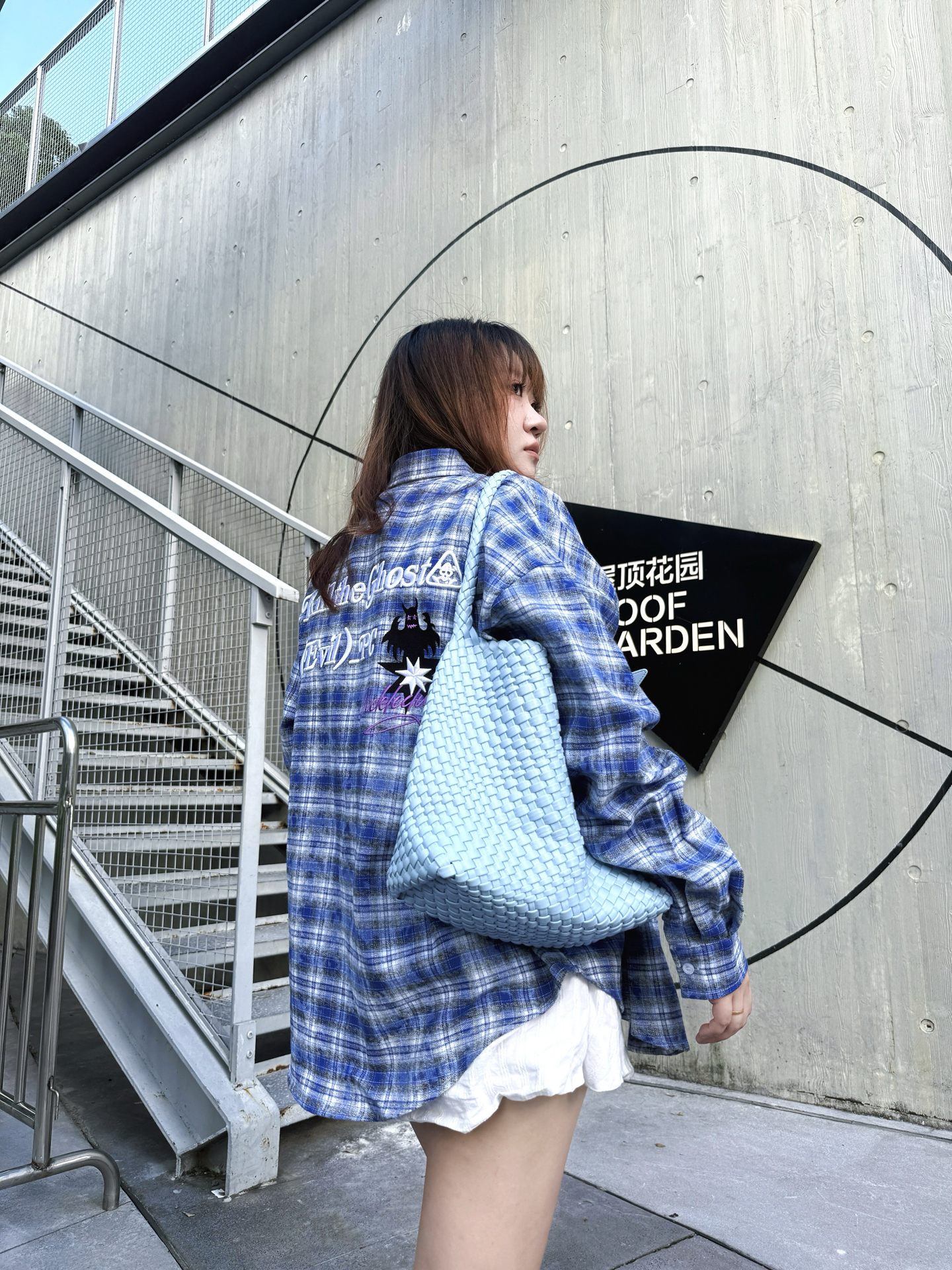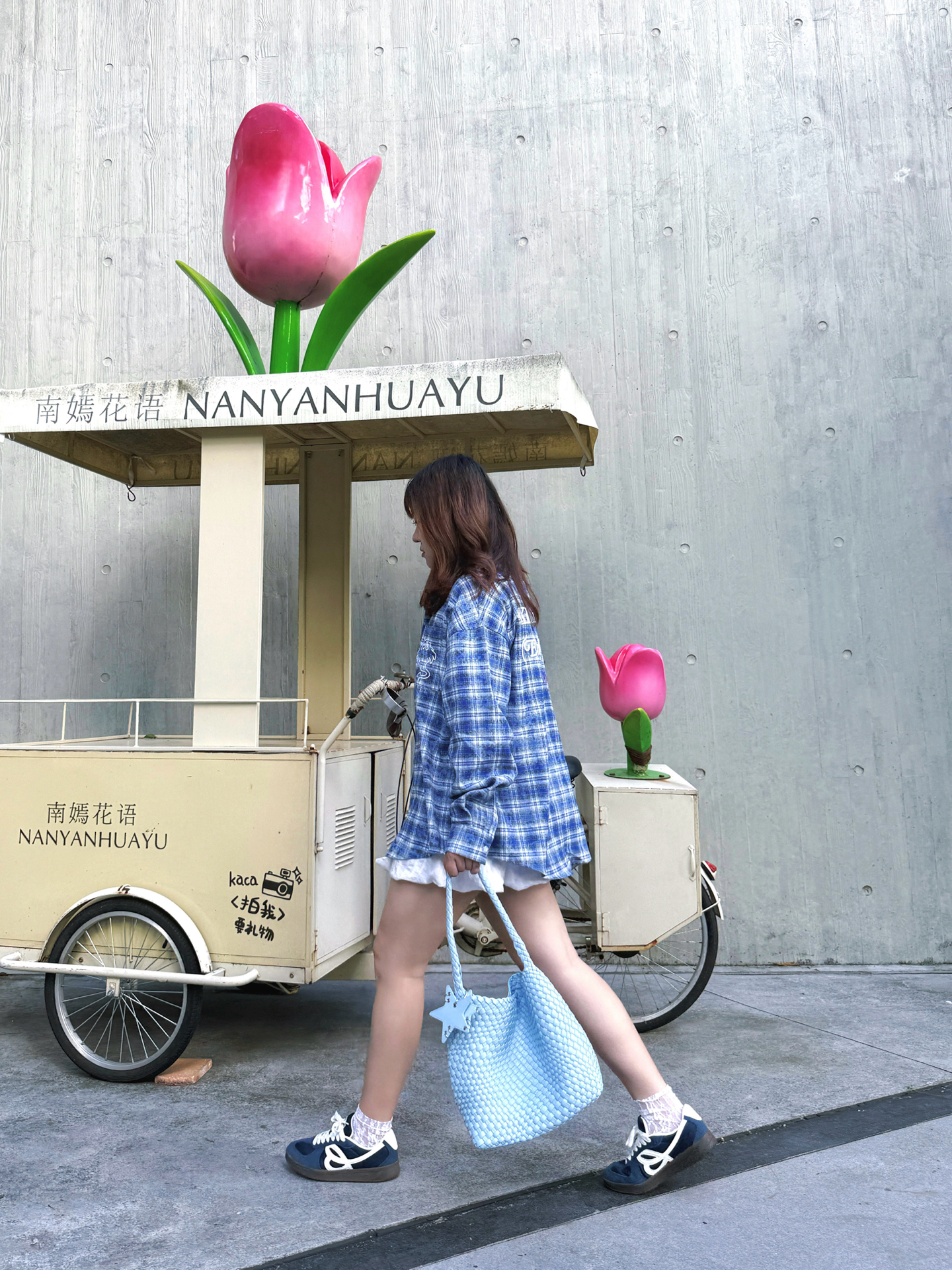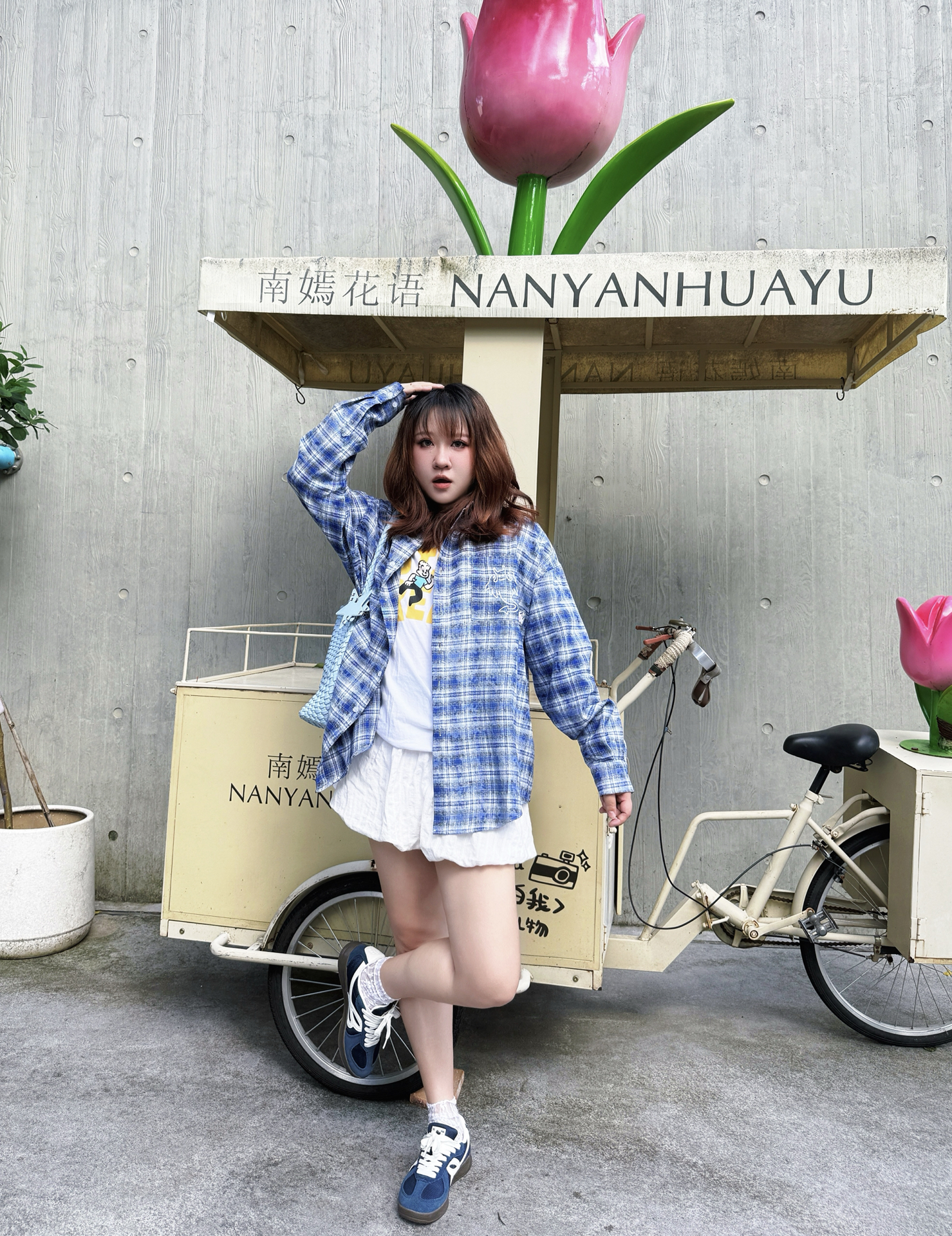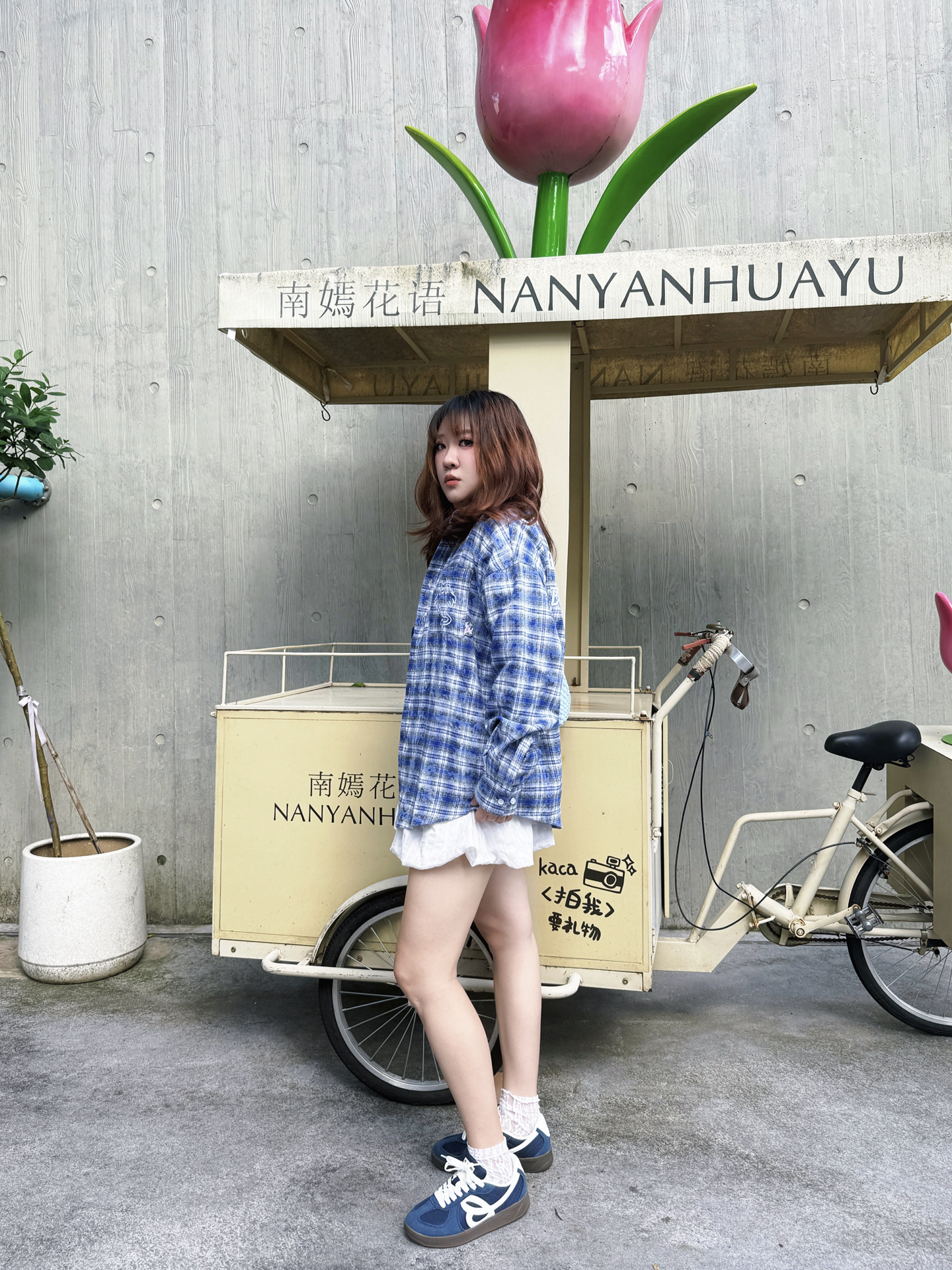 穿了件做旧晕染蓝格衬衫👕——幽灵刺绣藏在身后 内搭白短袖露小边~白高腰短裙拉腿长 配深蓝德训鞋+浅蓝编织包👜 蓝白撞在工业灰墙前超温柔! 个人觉得妙在衬衫的晕染 像把秋阳揉进布纹里~ #我的格纹时髦经 #我的出游穿搭护照 #国庆出游皮肤一键换 #秋天Cozyfit怎么穿 #时髦书呆子的穿搭手册