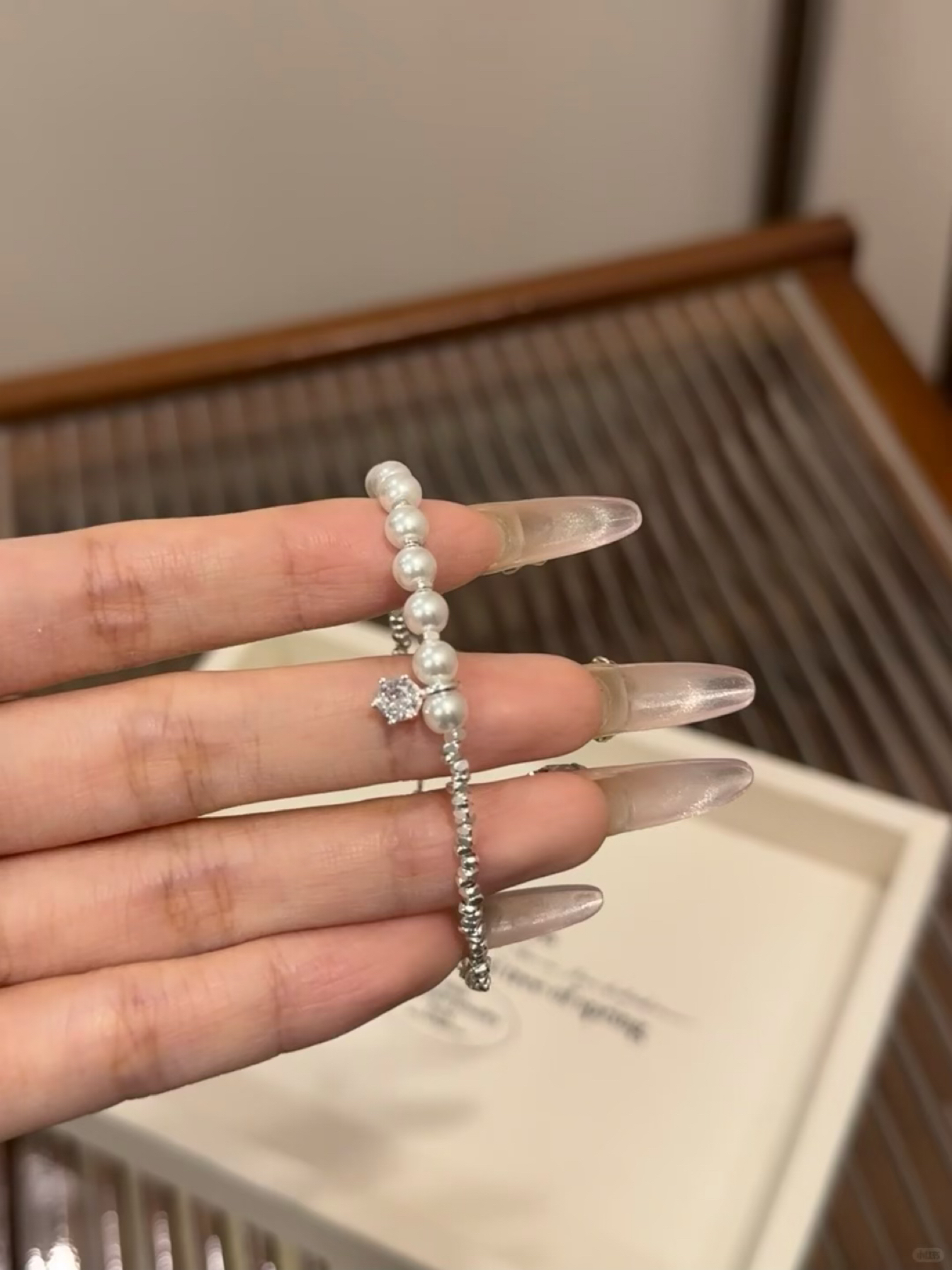 谁懂碎银子手链自带的公主感 珍珠搭配银链 清冷又温柔~ 每一条都有不同的小巧思 日常佩戴很好搭配衣服 约会配小裙子也不要太好看!!