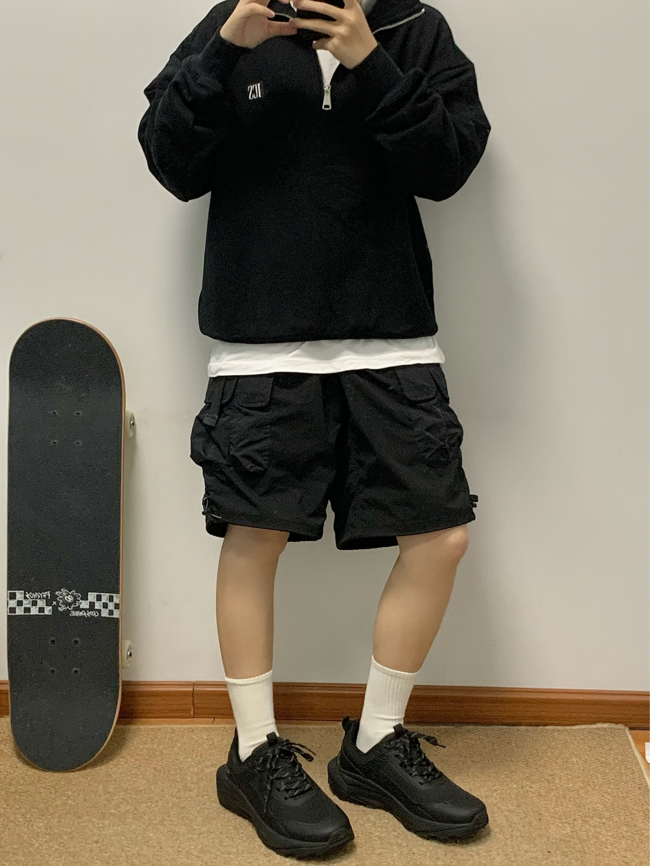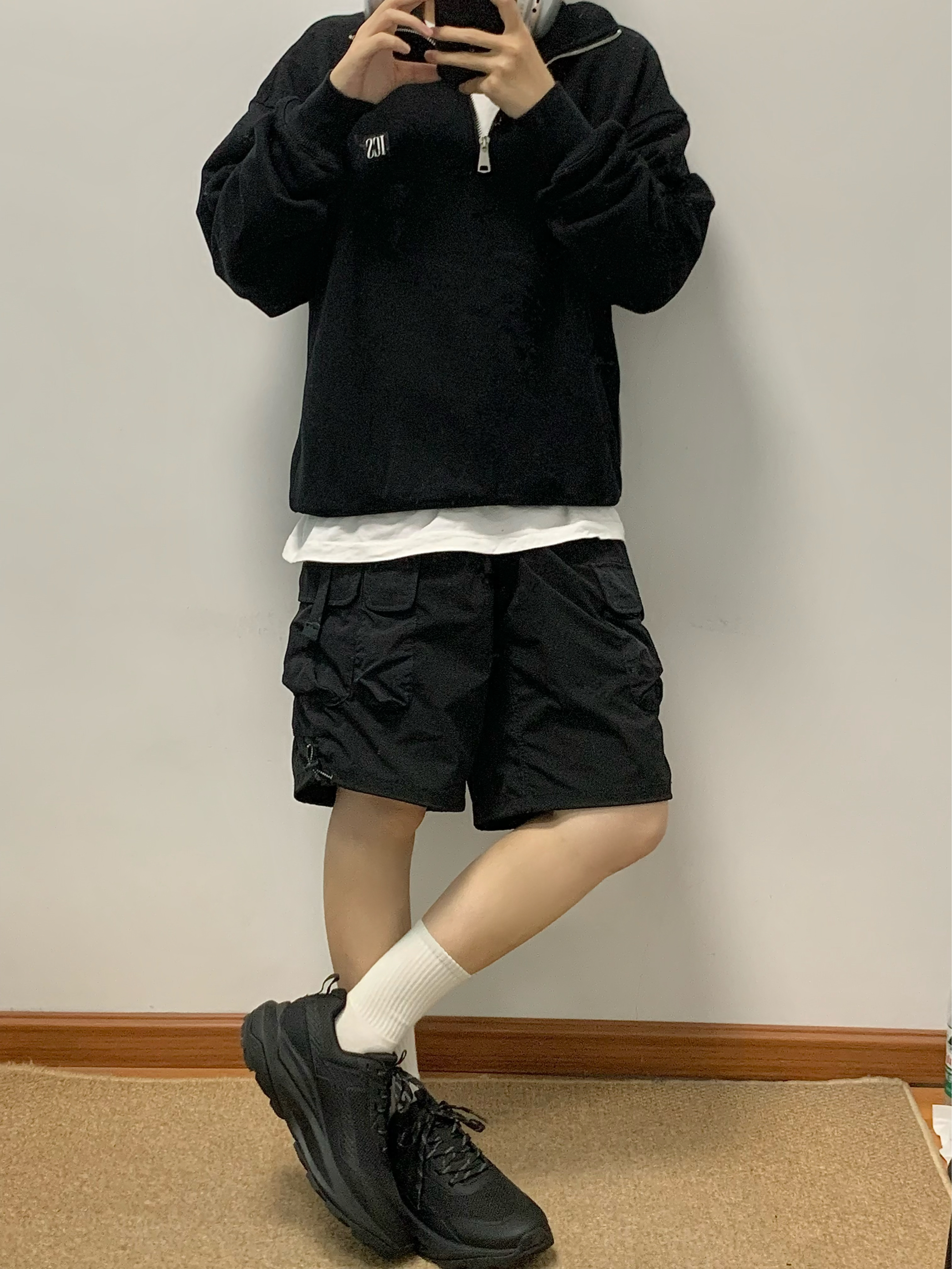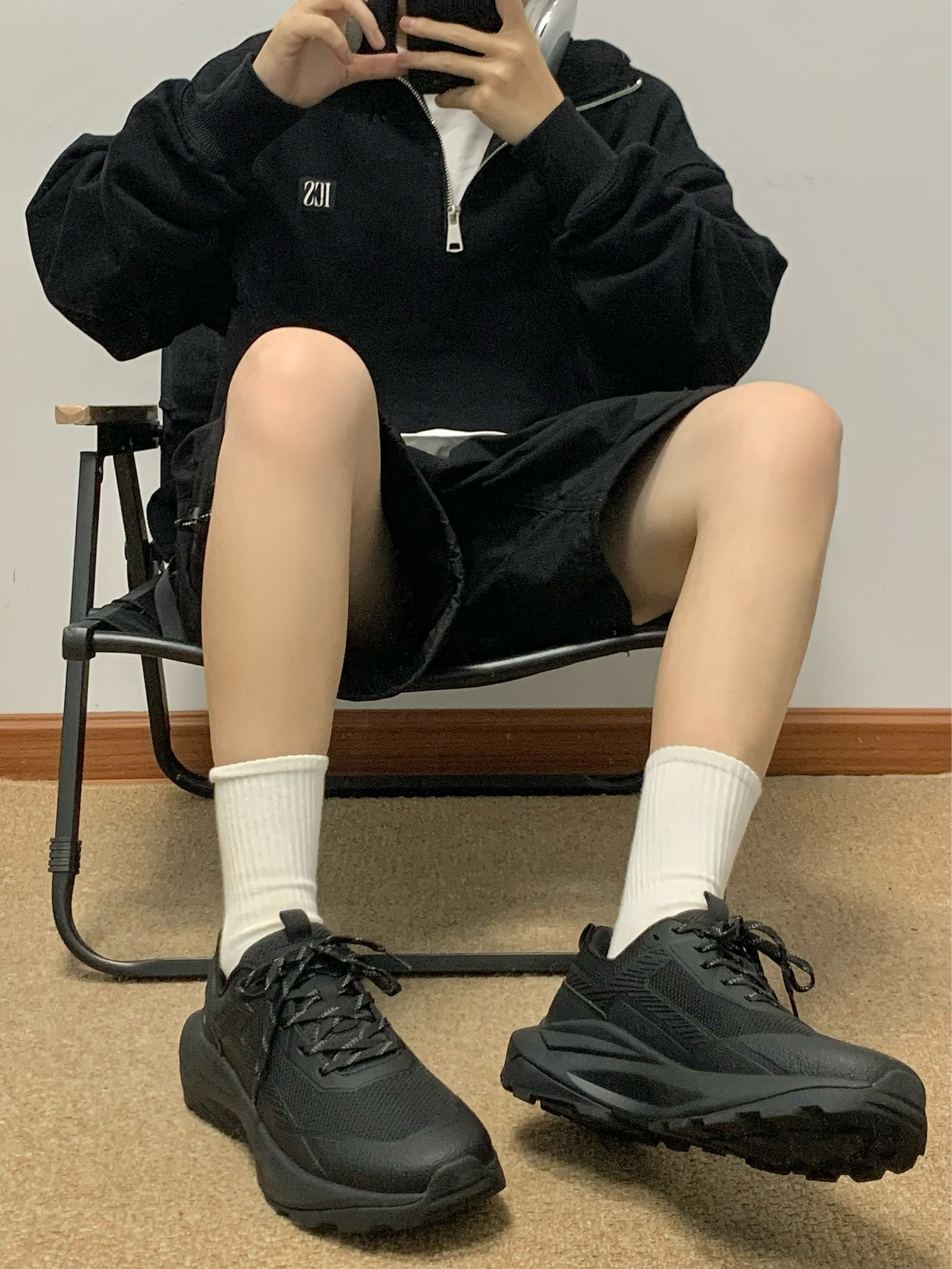 黑色卫衣➕军绿色工装裤 再搭配上一双黑色老爹鞋上下呼应 鞋面网面材质 透气不闷热 踩屎感十足 爆米花底 回弹性很好 纯黑色日常也很百搭 入秋就穿这一身 包帅的! 👟:Jeep