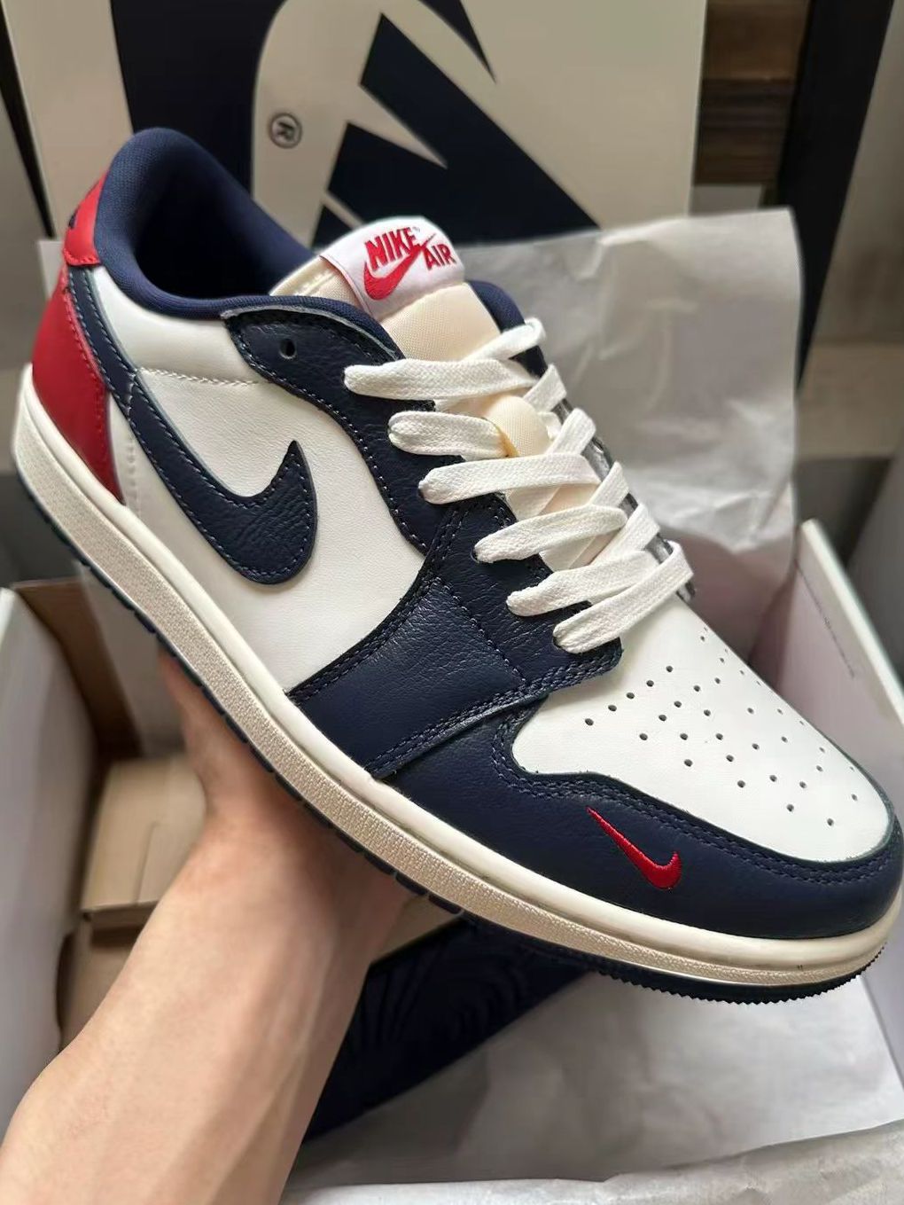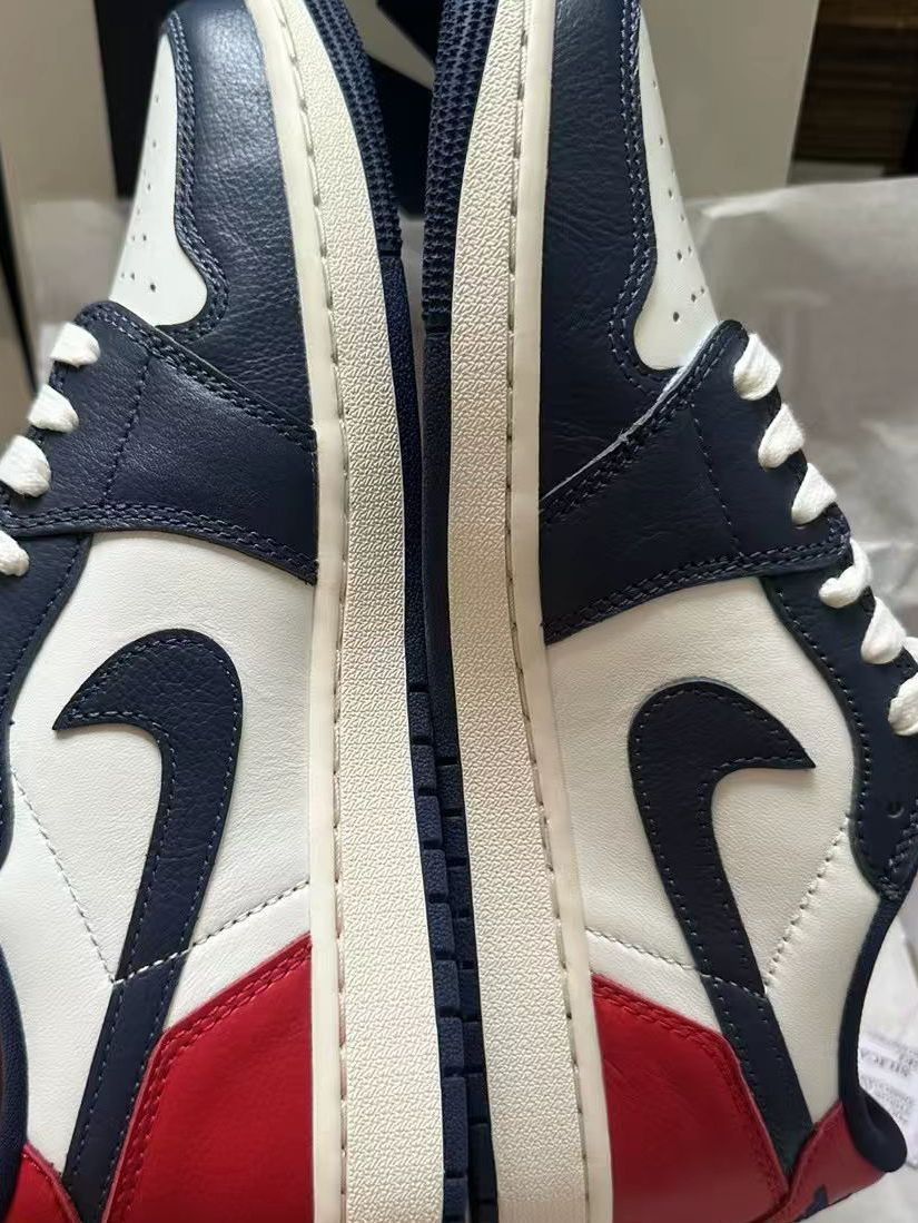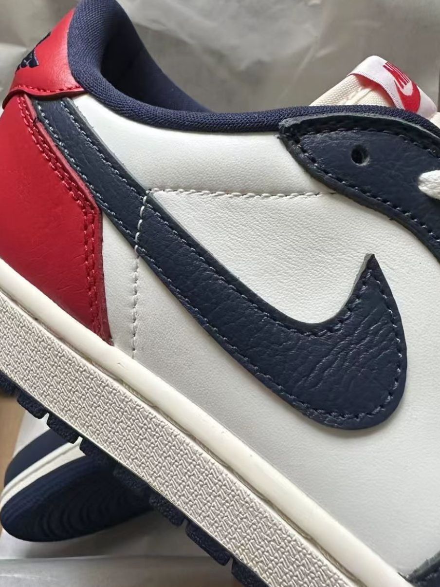 Air Jordan 1 Low 红白蓝低帮板鞋以复古白、藏青蓝与活力红撞色拼接,演绎经典美式街头风格。优质皮革鞋面质感高级,低帮设计适配多场景穿搭,无论是搭配工装裤打造潮流感,还是配牛仔裤走休闲风都很出彩。鞋舌经典飞翼标与鞋侧迷你Swoosh细节满满,复古做旧中底更添韵味,是潮人出街、球鞋爱好者收藏的吸睛之选,轻松拿捏复古与潮流的双重气质。