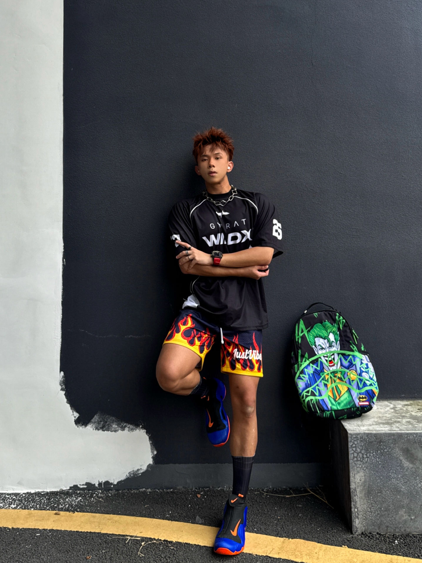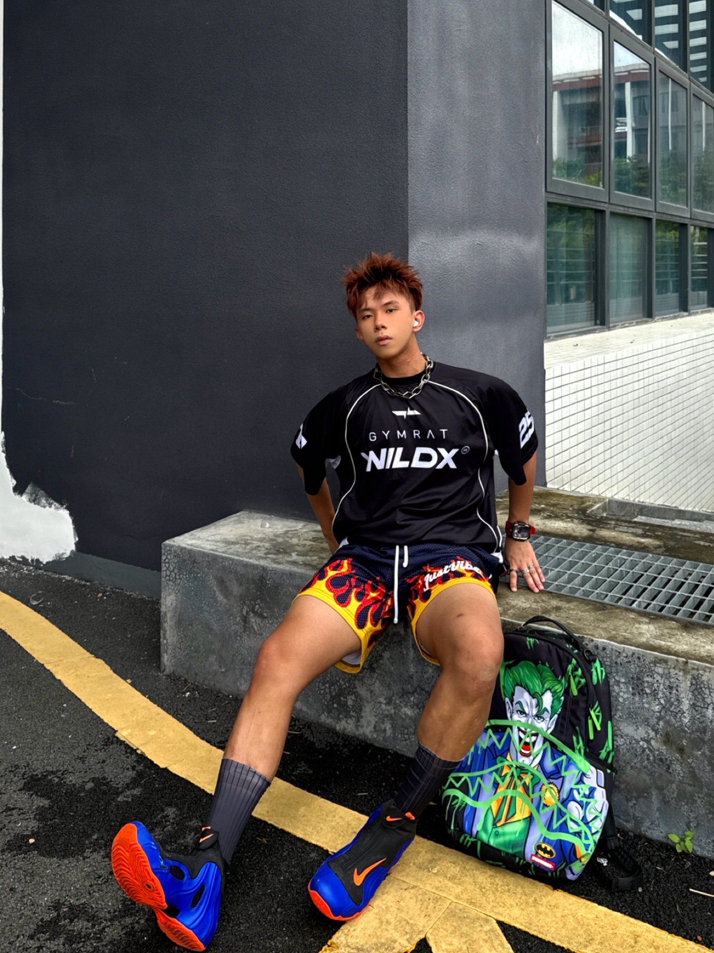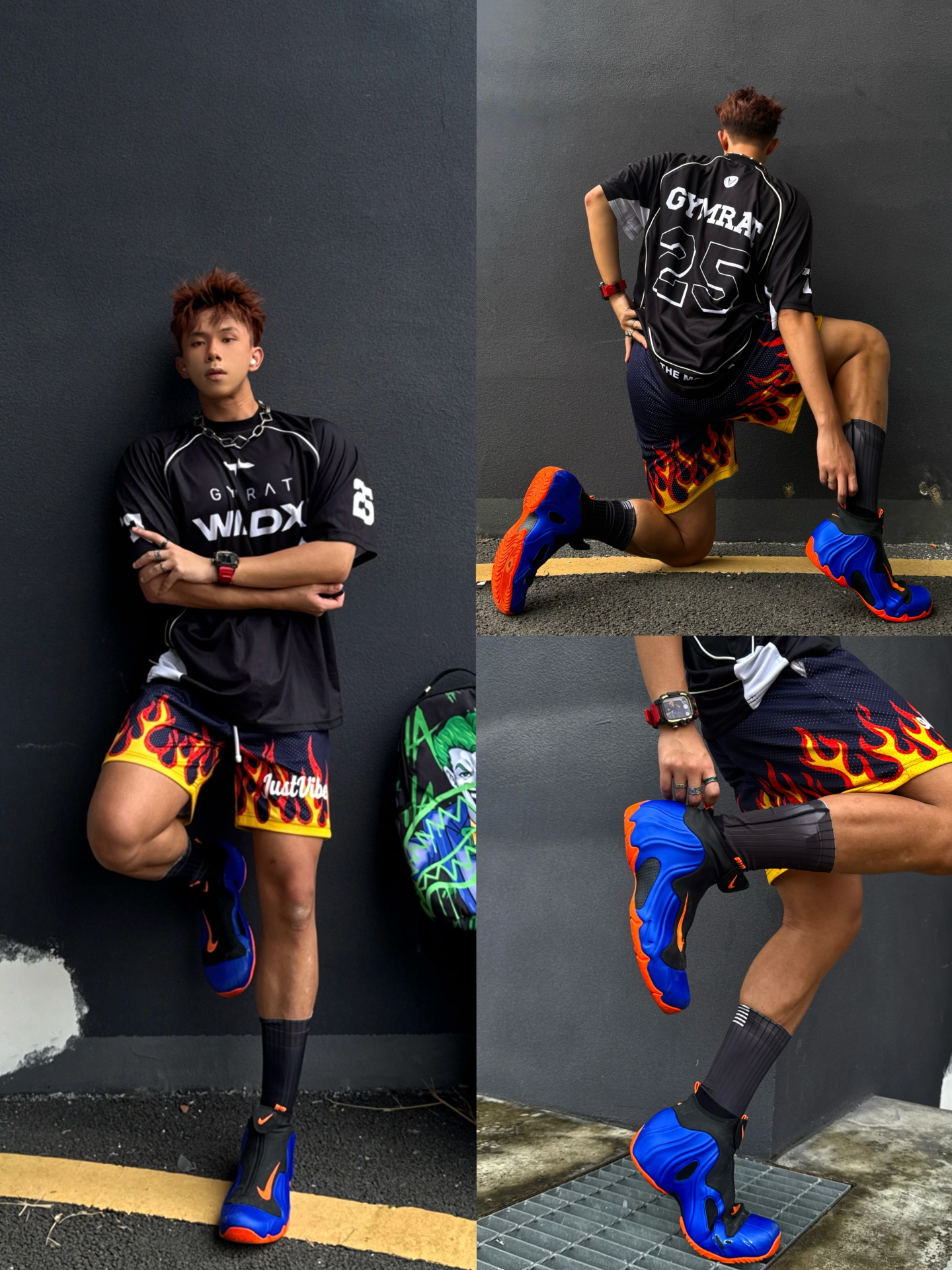 Hey bro‼️这里是小熊的穿搭日记 👟上脚 尼克斯风一 蓝橘双色 醒目且极具动感🍊 搭配鞋面Swoosh飞钩logo 我尤其偏爱这种速度感❗️❗️ 液体包裹脚部的概念设计 外观未来感拉满 1999年就诞生的经典鞋款 历史地位和文化价值无需多言 搭配just vibe烈焰四分短裤 和wildx恶鼠速干投篮服 顿时感觉多巴胺感快要溢出屏幕了 作为黑皮男大 将多彩焊在身上是穿搭最优解💯 #...