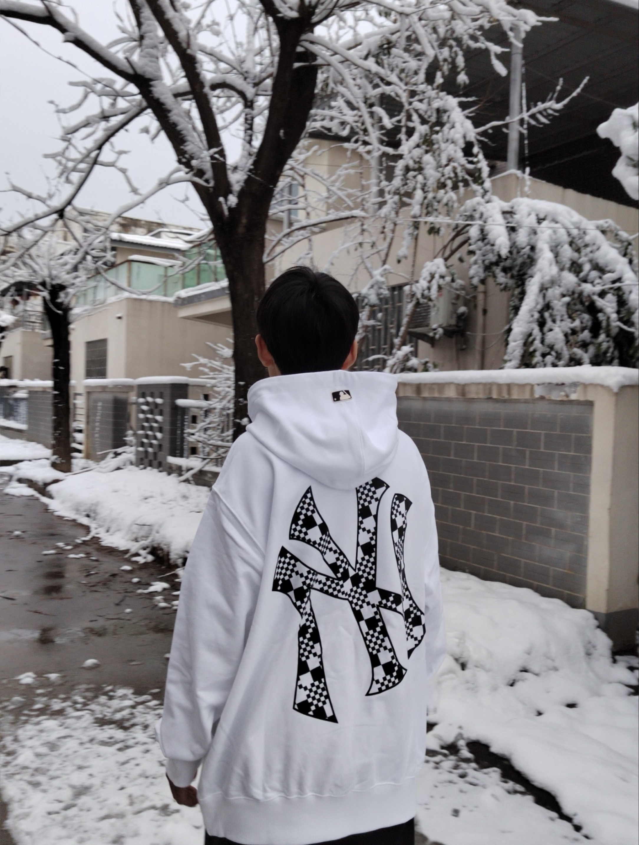 我们这边的第一场雪,天气不算太冷,你们那边下雪了吗? MLB这件格子logo的白色卫衣在雪中超有氛围感。 #百搭卫衣#中秋#宝藏卫衣